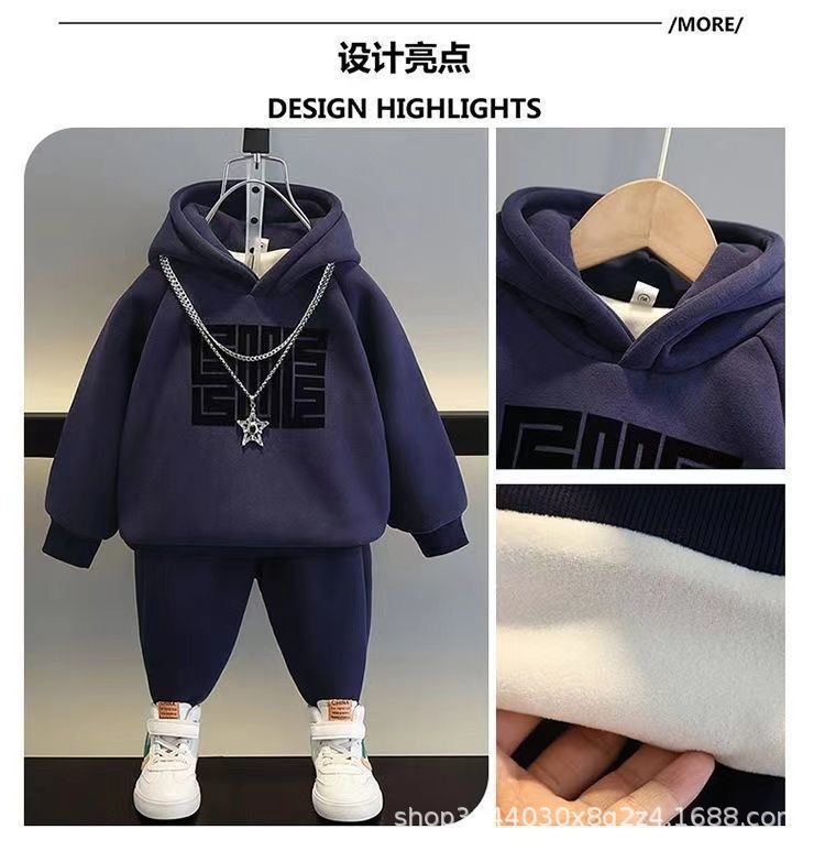 아동 의류 소년 겨울 양털 운동복 정장 아동 유행 아기 운동복 가을, 겨울 두꺼운 투피스 세트