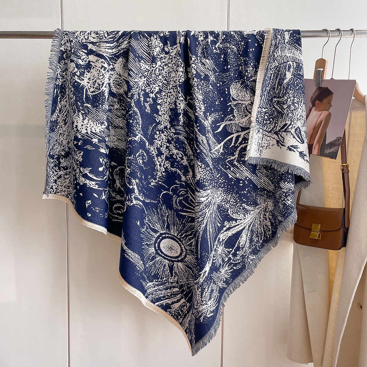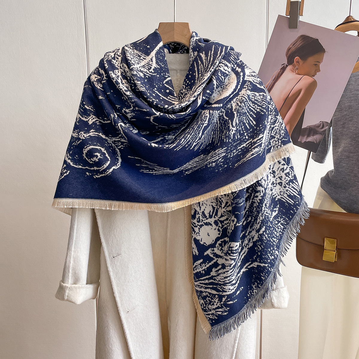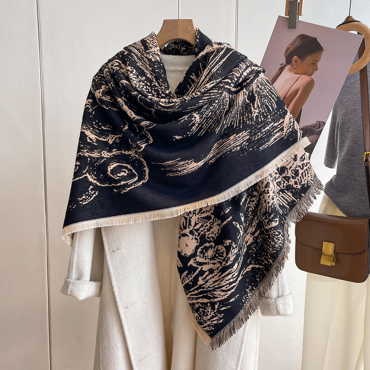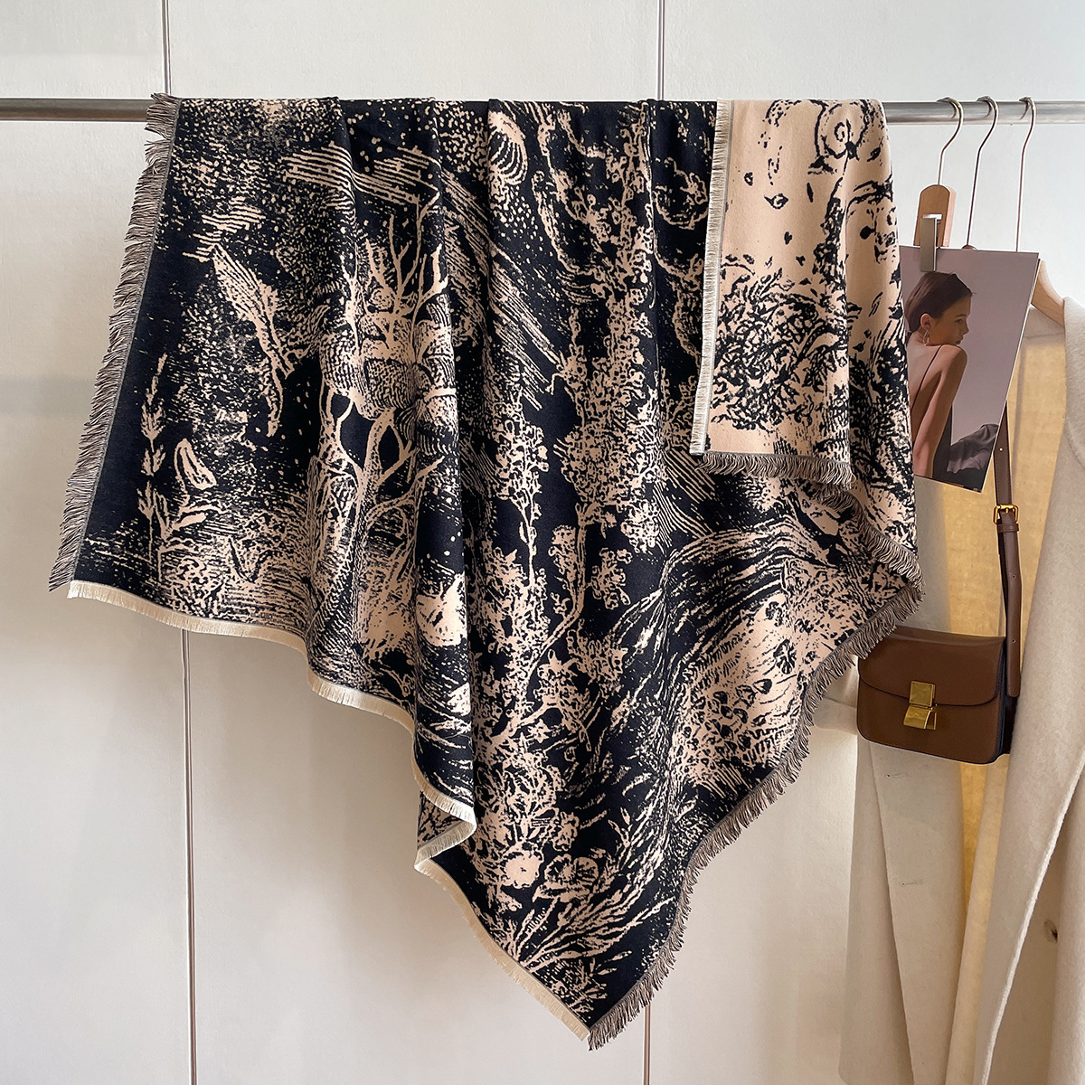 가을과 겨울 새로운 유럽과 미국 패션 두꺼운 따뜻한 스카프 간단한 다목적 식물 꽃 캐시미어 목도리 대외 무역