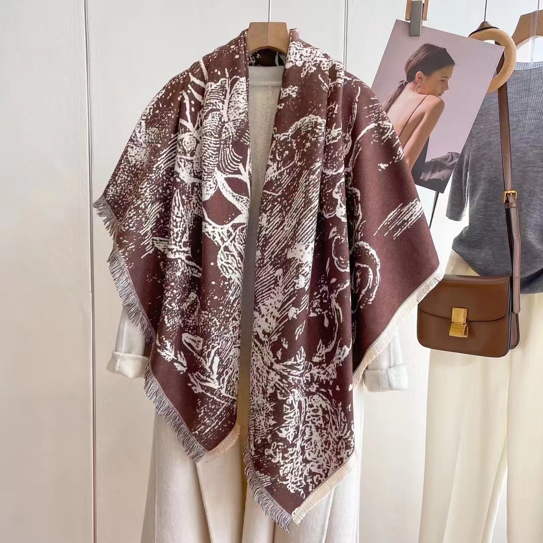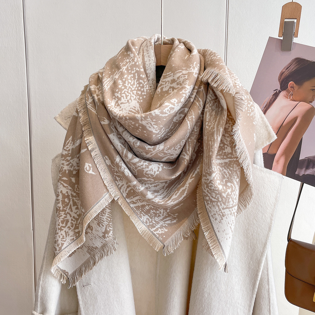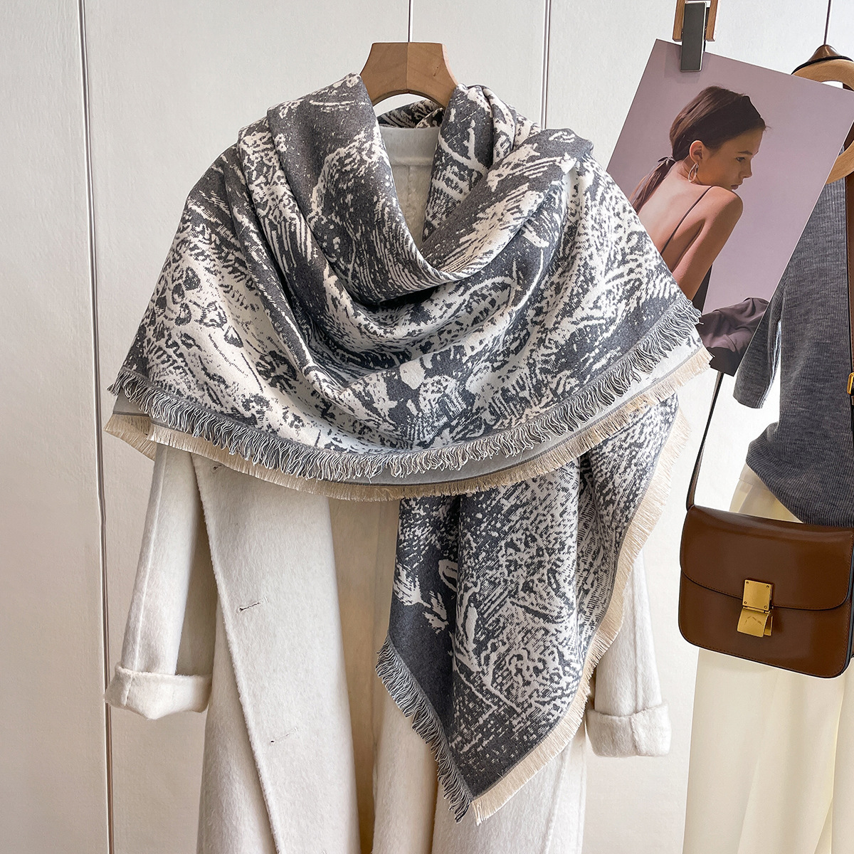 가을과 겨울 새로운 유럽과 미국 패션 두꺼운 따뜻한 스카프 간단한 다목적 식물 꽃 캐시미어 목도리 대외 무역