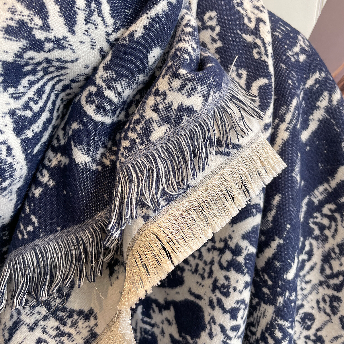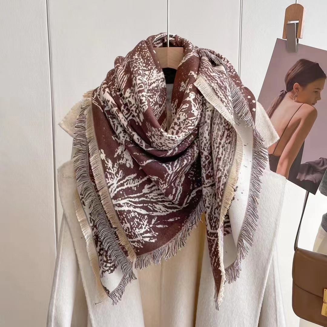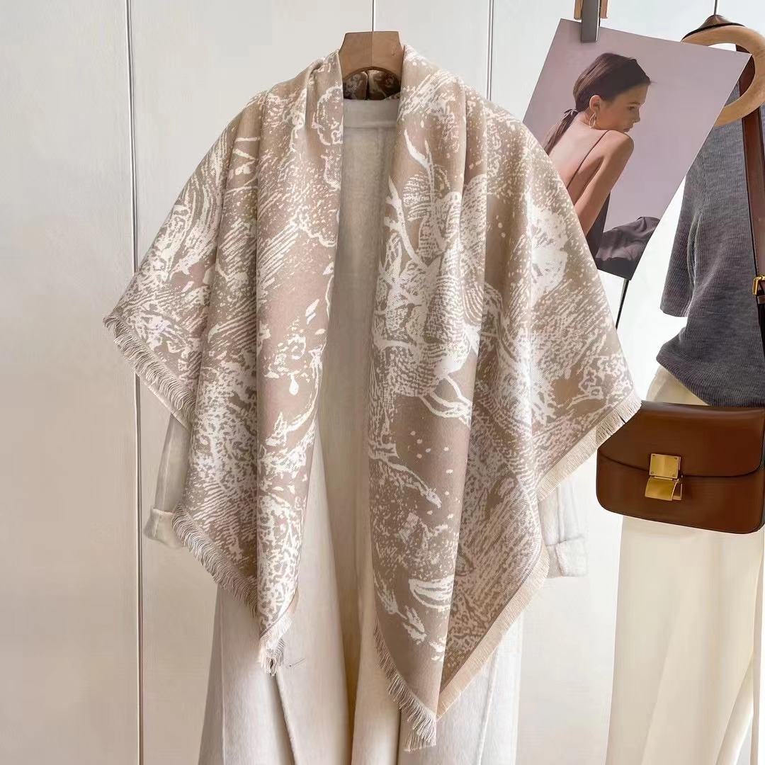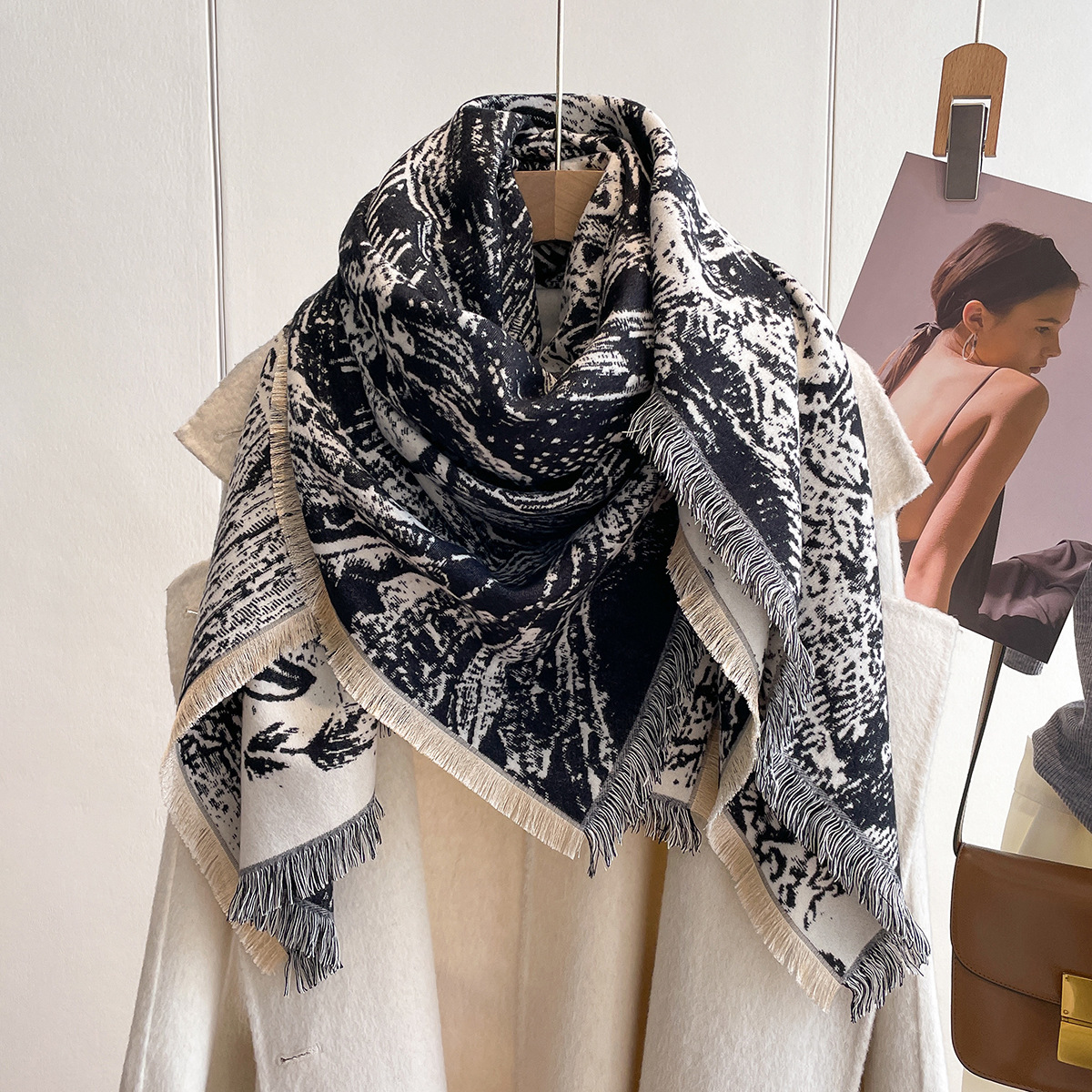 가을과 겨울 새로운 유럽과 미국 패션 두꺼운 따뜻한 스카프 간단한 다목적 식물 꽃 캐시미어 목도리 대외 무역