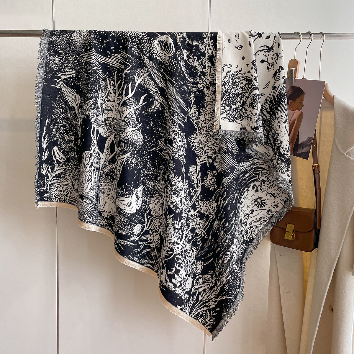 가을과 겨울 새로운 유럽과 미국 패션 두꺼운 따뜻한 스카프 간단한 다목적 식물 꽃 캐시미어 목도리 대외 무역스토어 가기