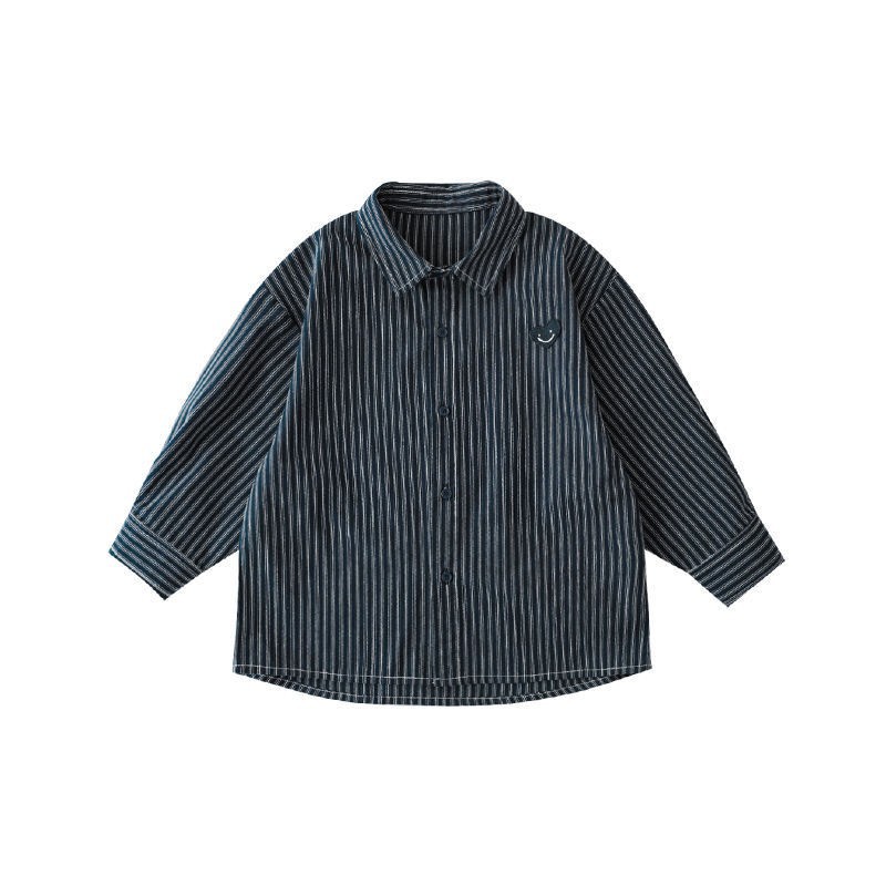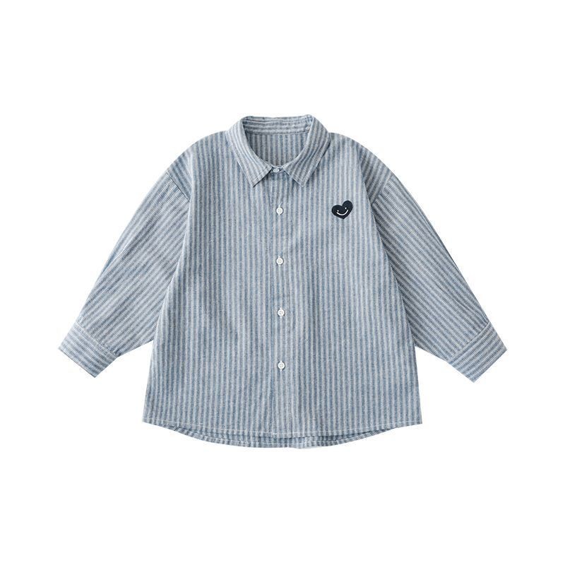 Wuli Buyi 소년 사랑 수 놓은 로고 옷깃 신사 신선한 줄무늬 셔츠 2025 봄, 가을 새로운 어린이 셔츠