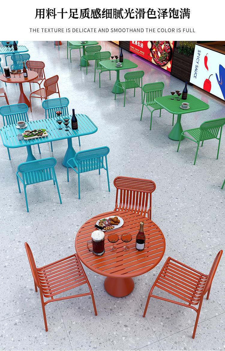 밀크 티 샵 테이블과 의자 조합 심플 모던 카페 디저트 숍 청바 야외 바 가정용 철 조명 럭셔리 야외스토어 가기