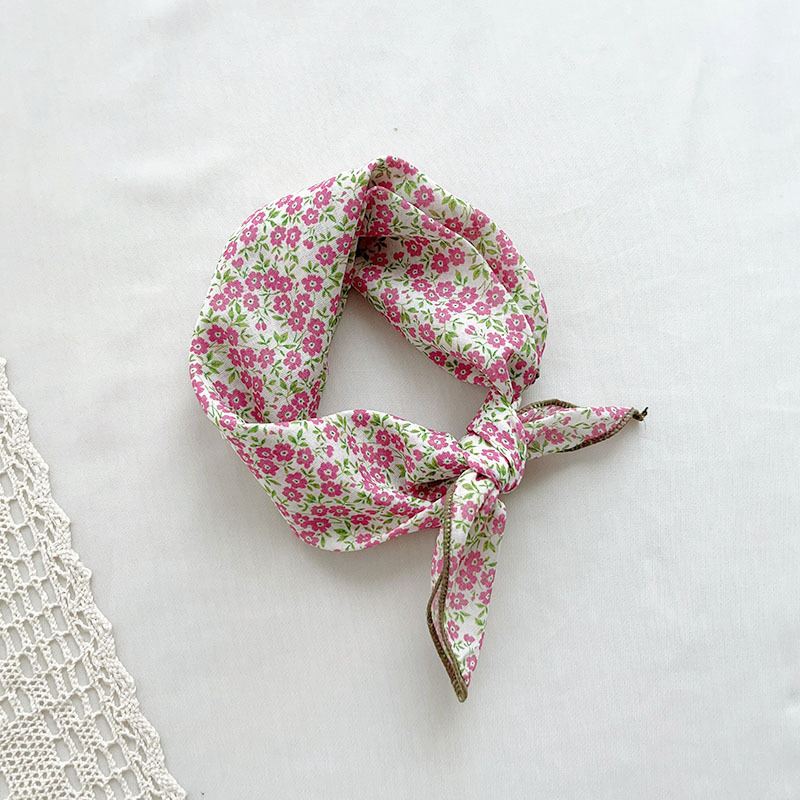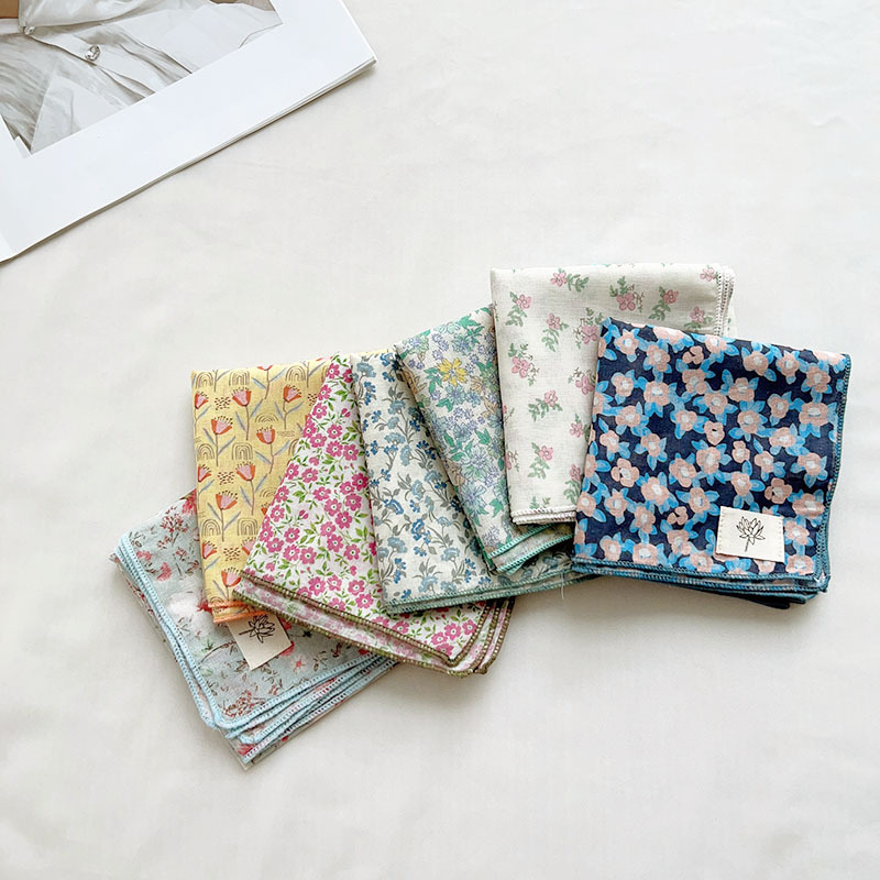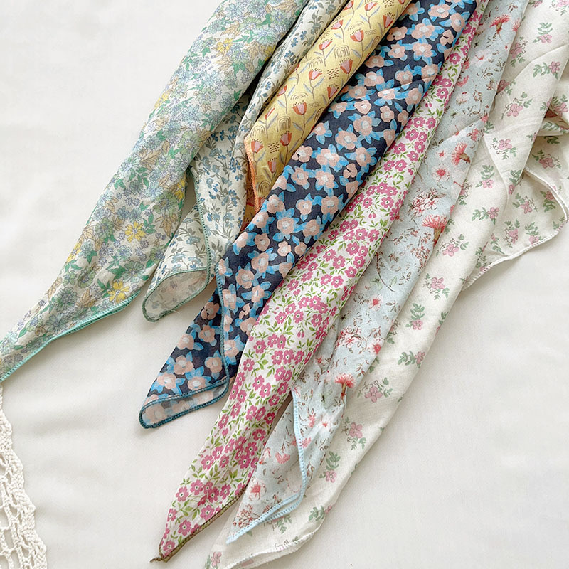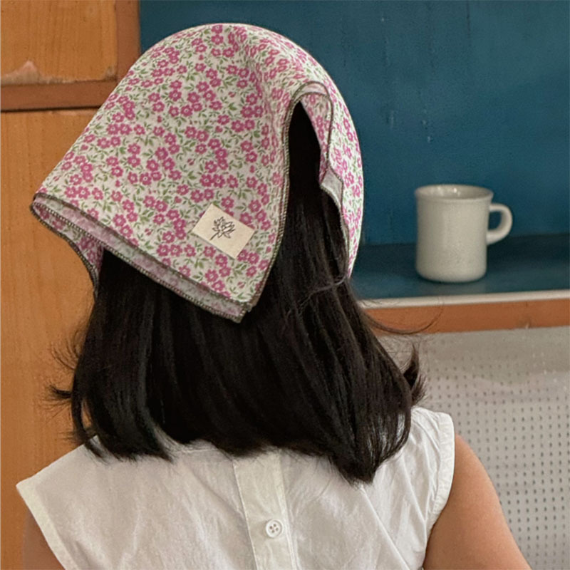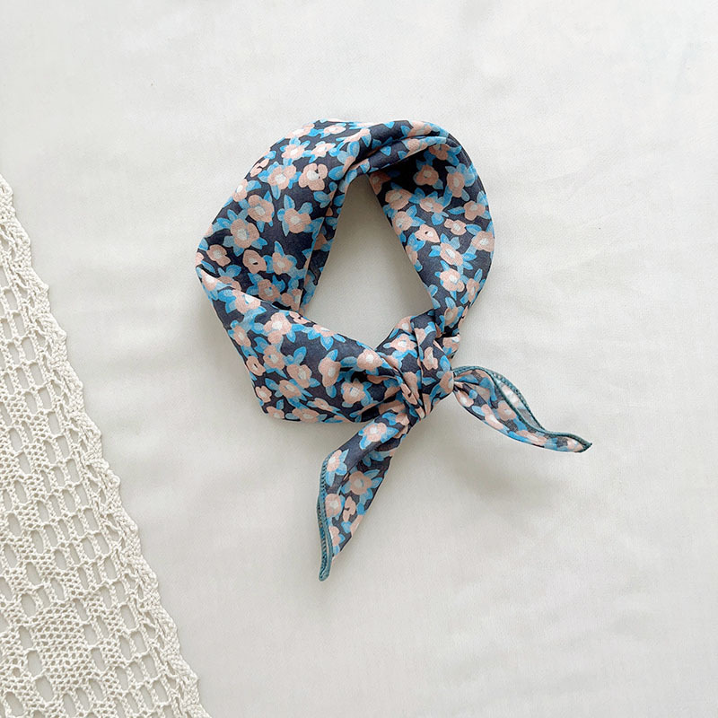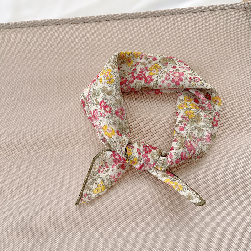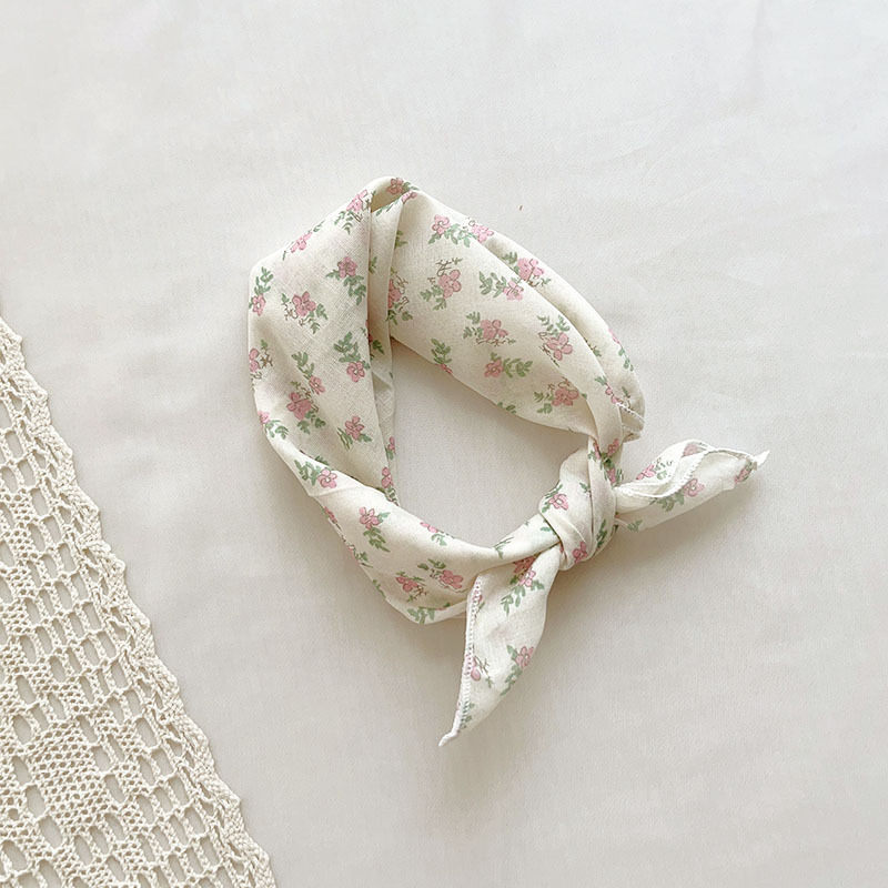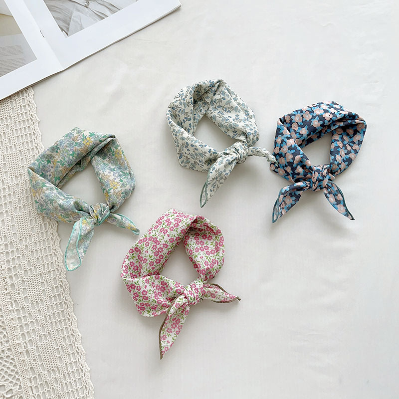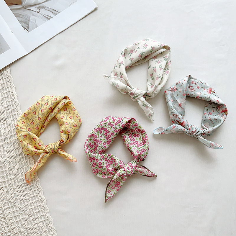 일본식 면과 린넨 모든 매치 예술적 Baotou 작은 사각형 스카프 새로운 스타일 작은 꽃 스카프 어린이 순면 신선한 스타일 유행 스퀘어 스카프스토어 가기