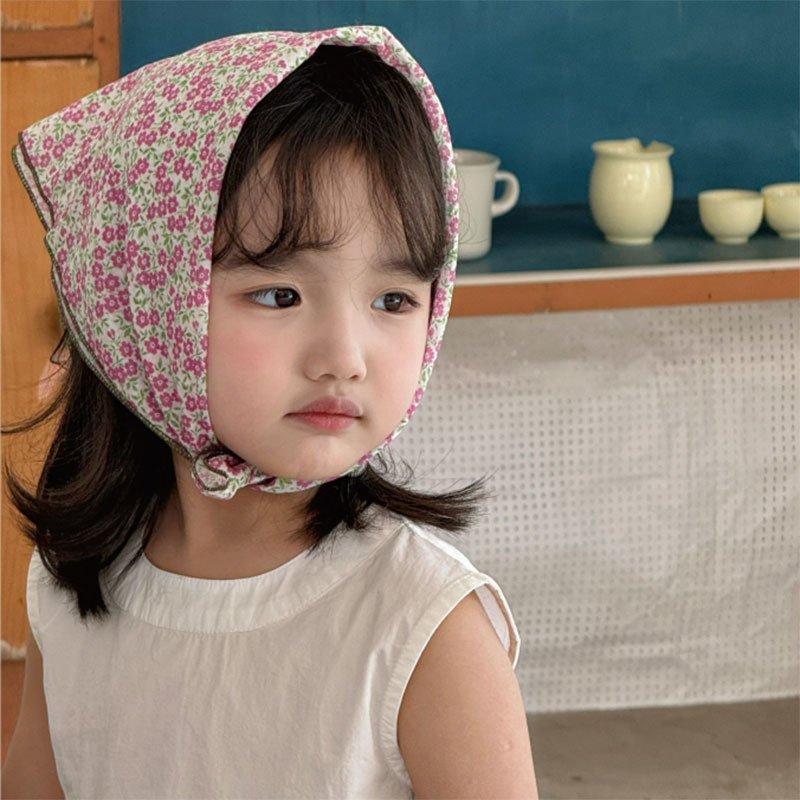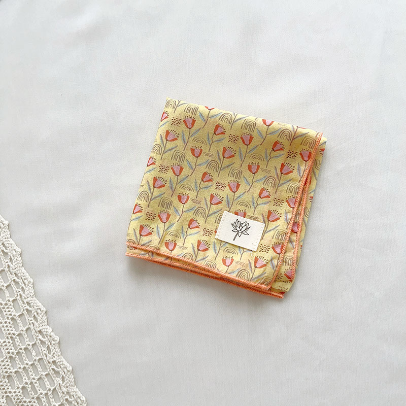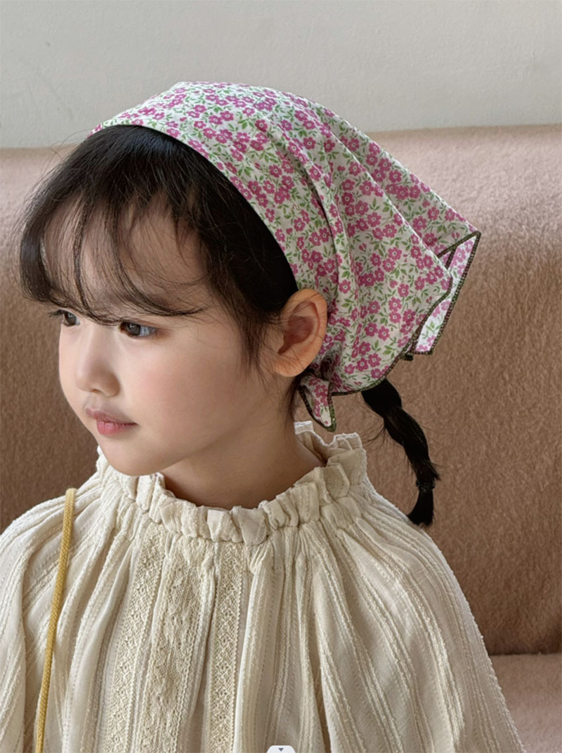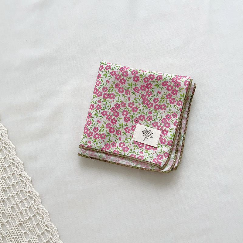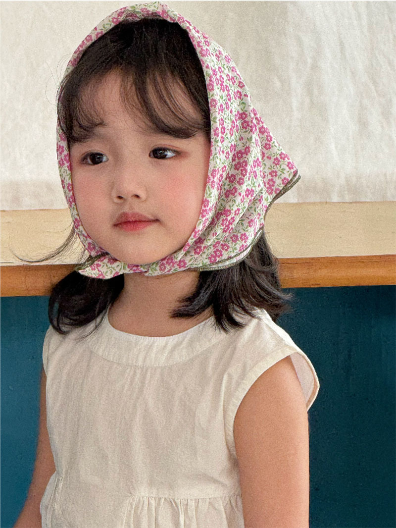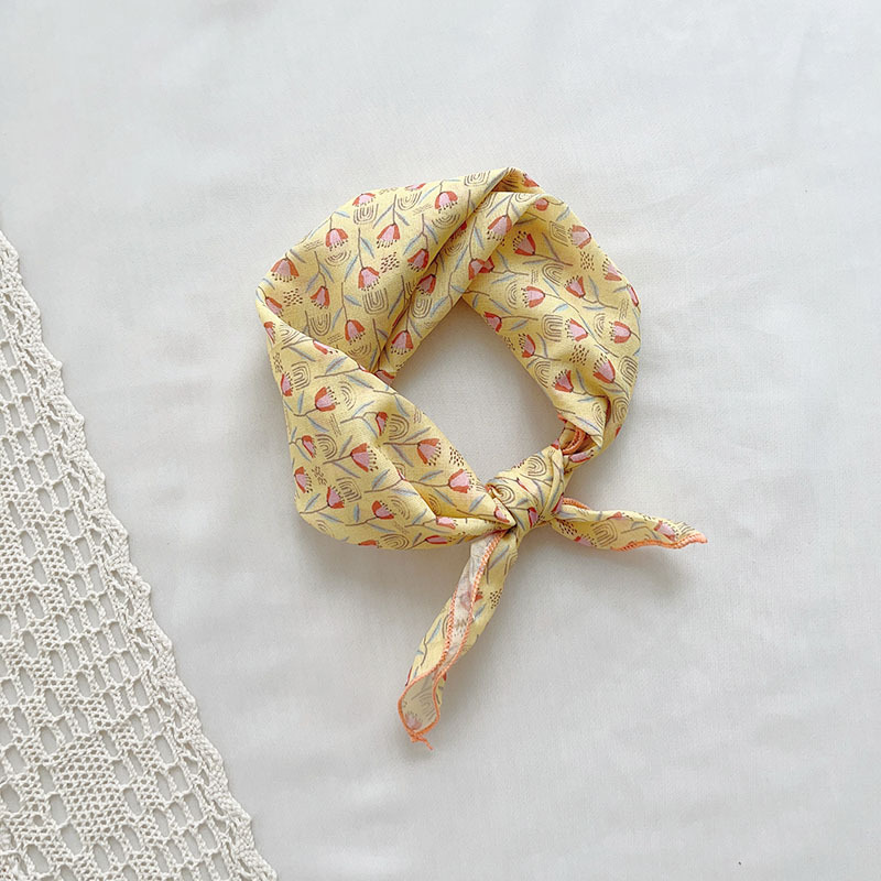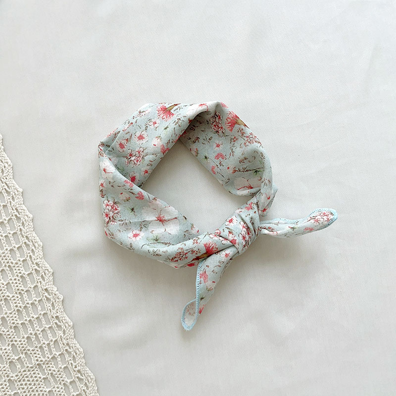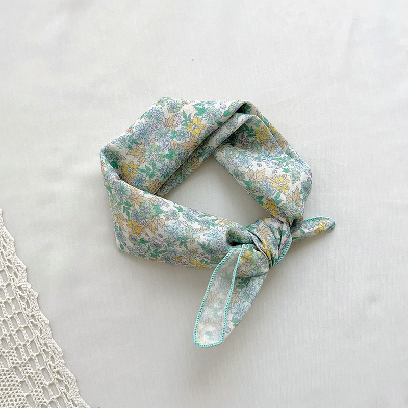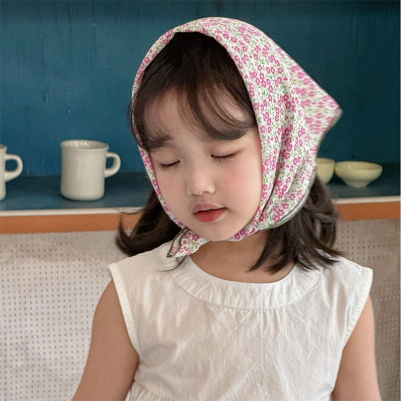 일본식 면과 린넨 모든 매치 예술적 Baotou 작은 사각형 스카프 새로운 스타일 작은 꽃 스카프 어린이 순면 신선한 스타일 유행 스퀘어 스카프스토어 가기