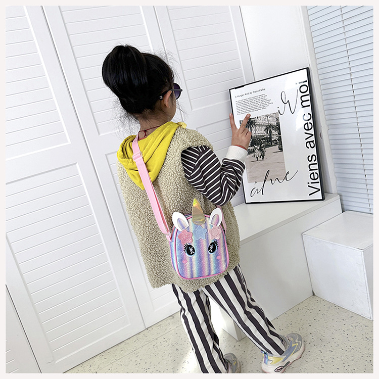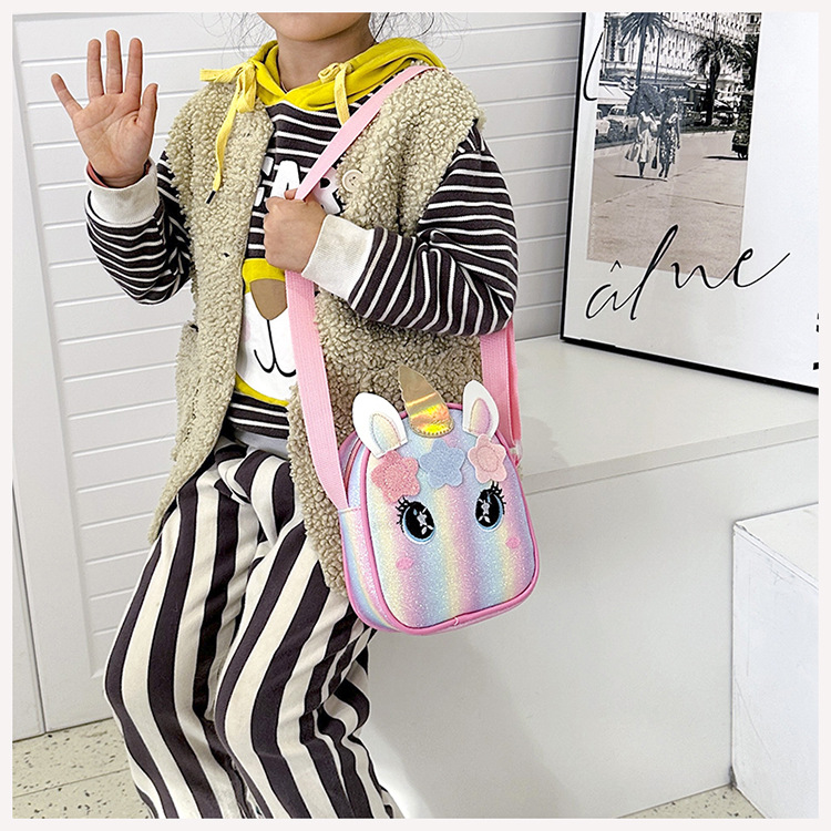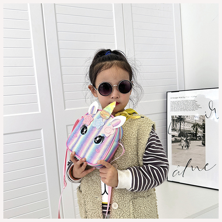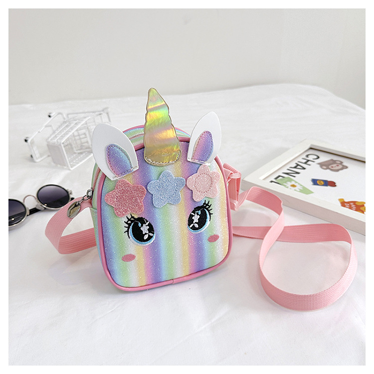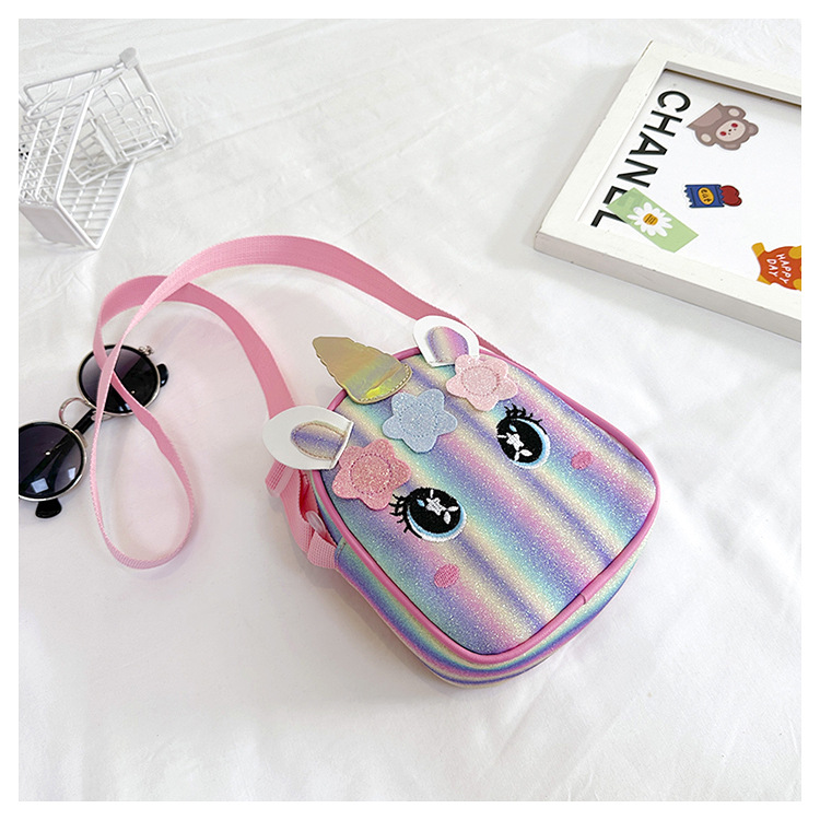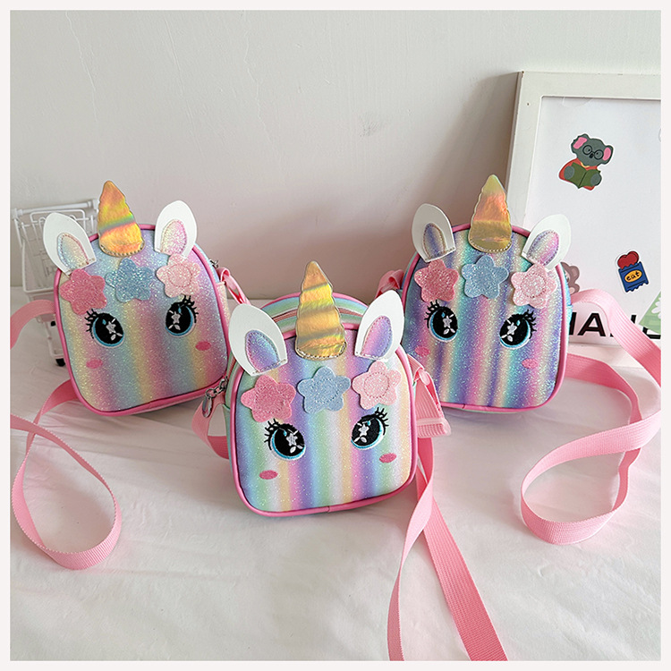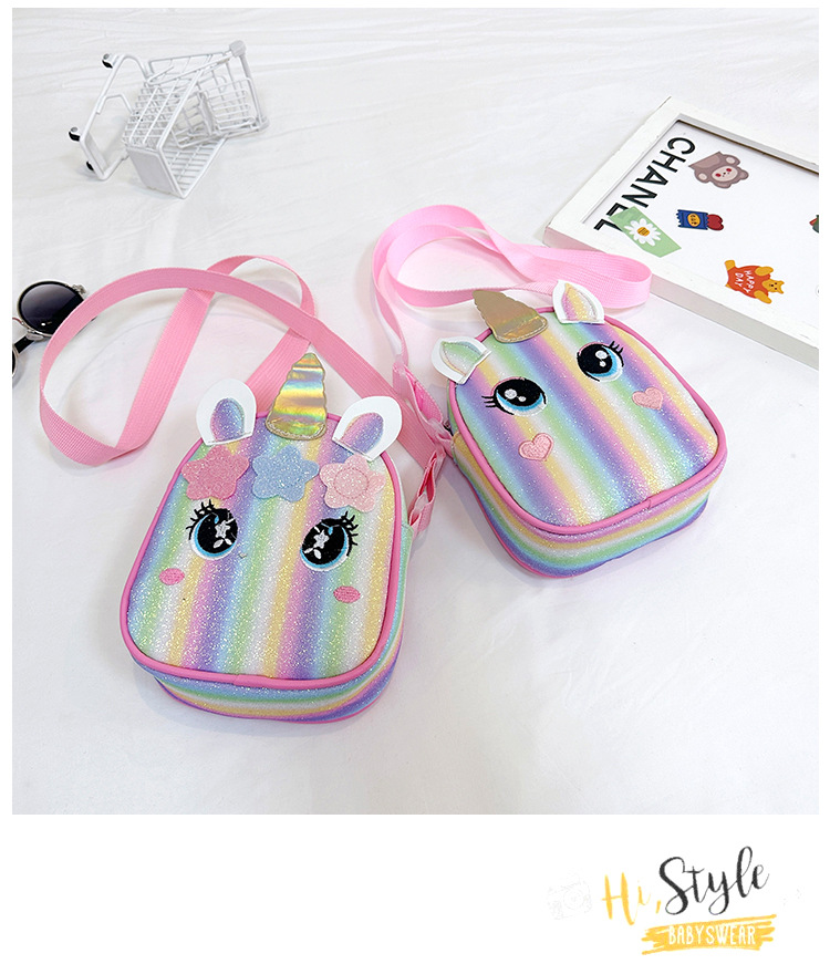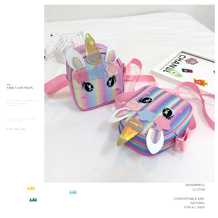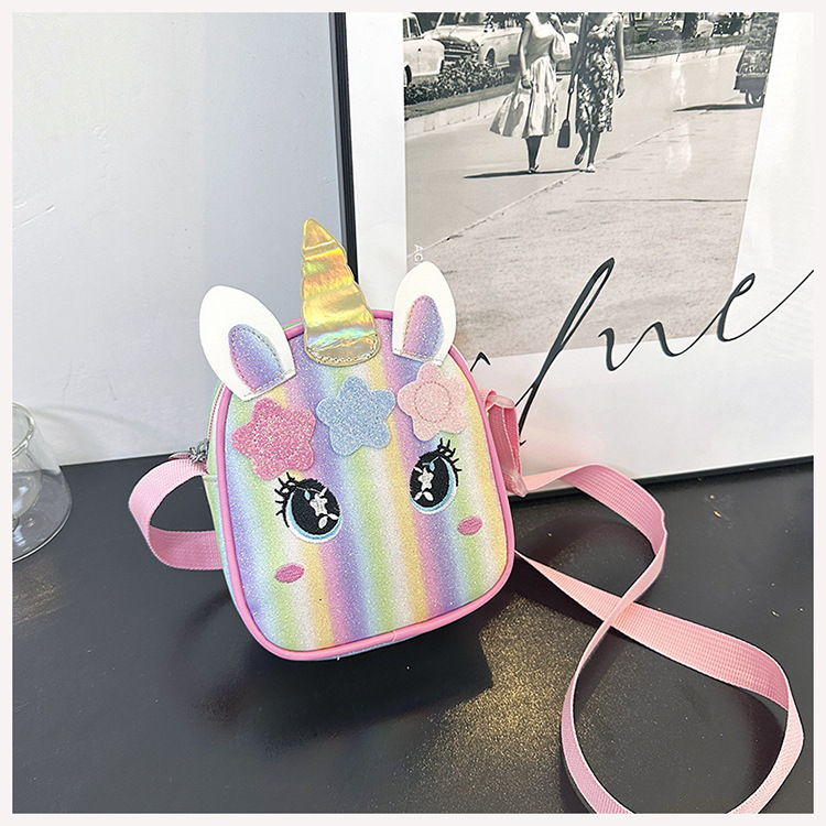 유니콘 자수 무지개 어린이 가방 크로스 바디 백 아기 소녀의 귀여운 패션 공주 가방 작은 책가방 숄더 백