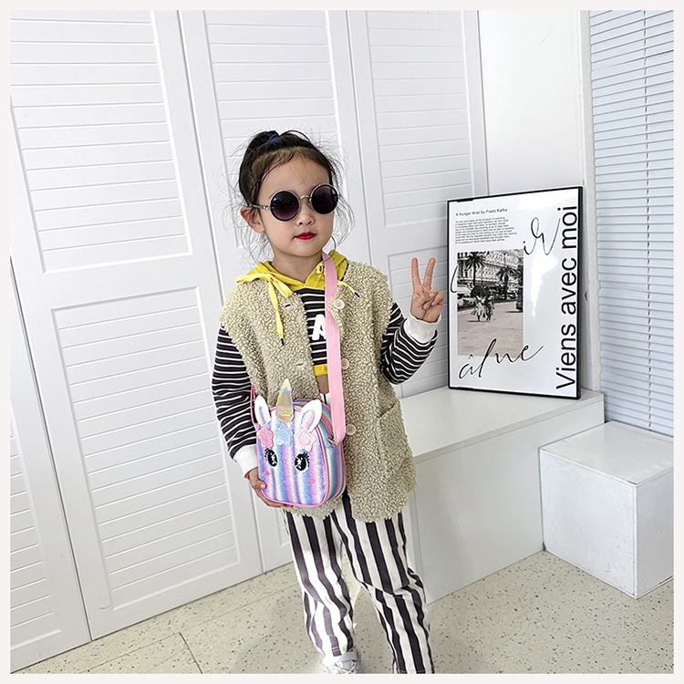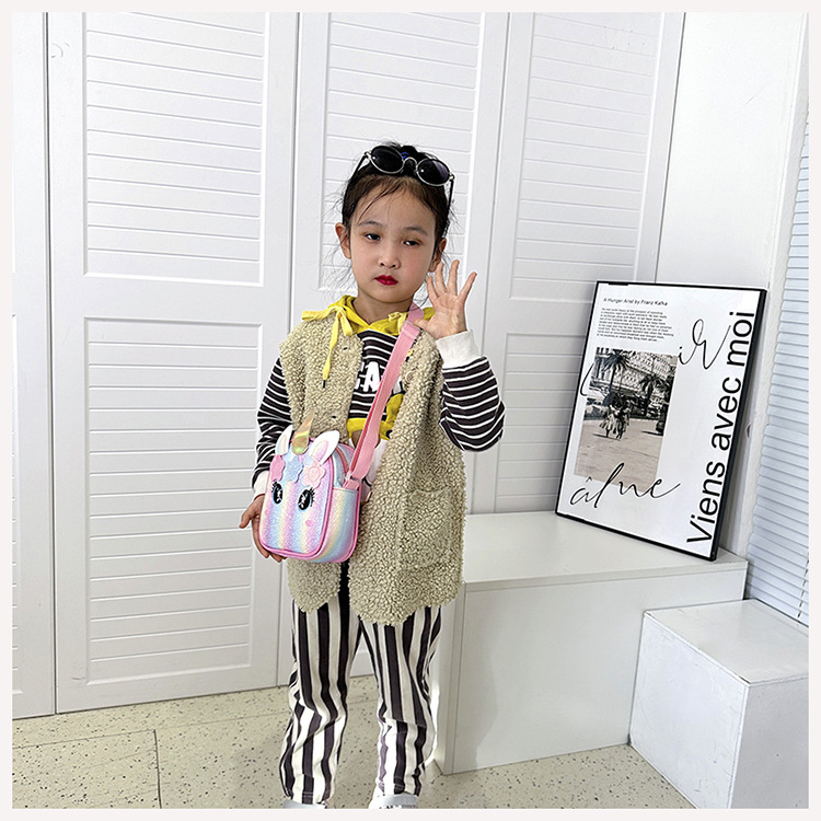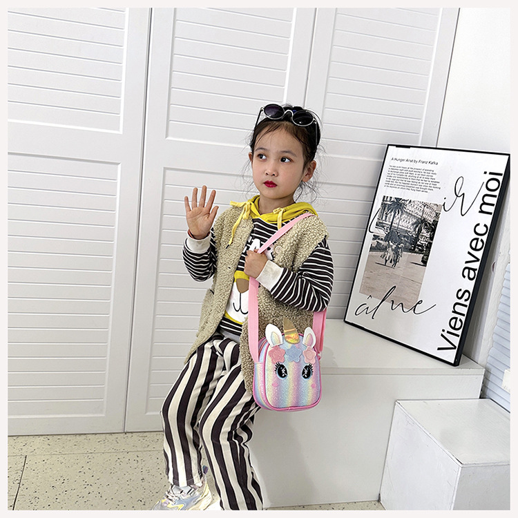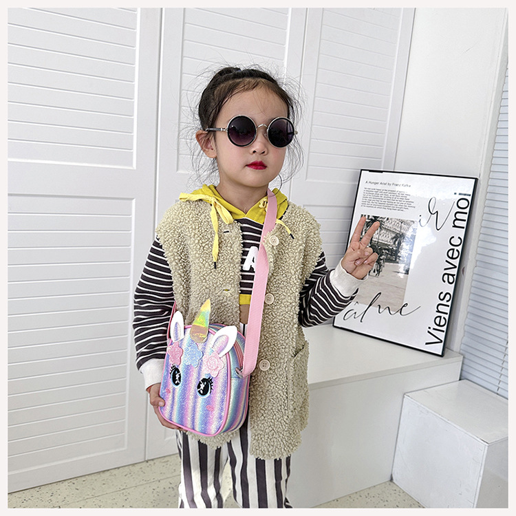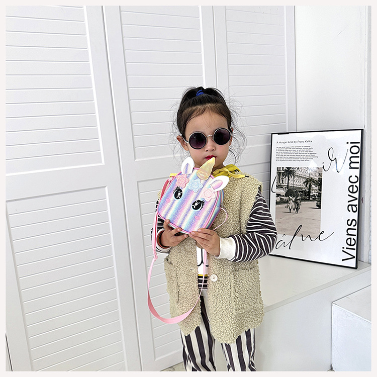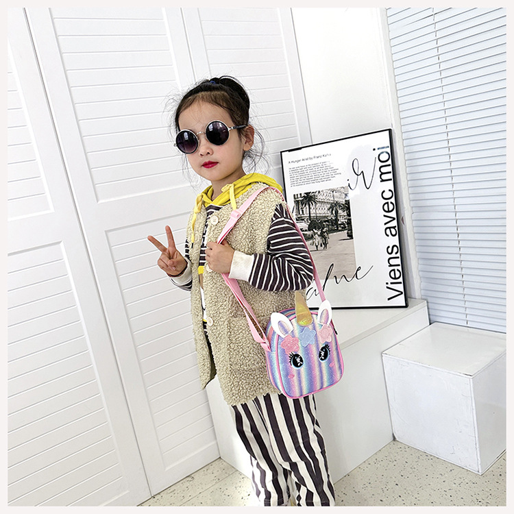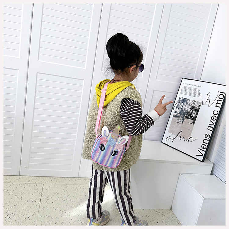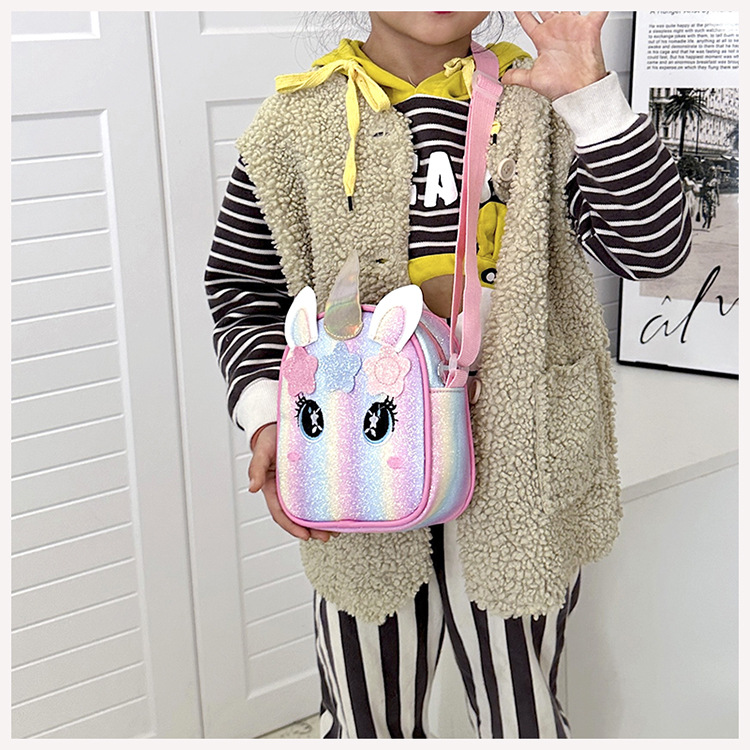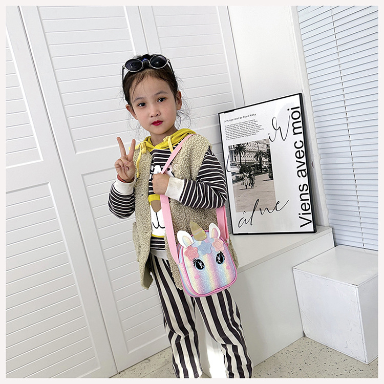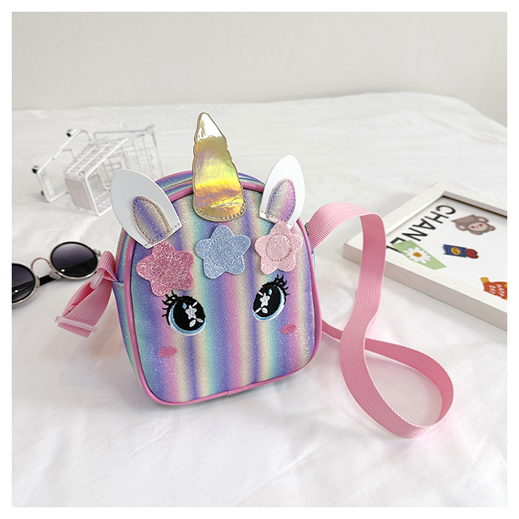유니콘 자수 무지개 어린이 가방 크로스 바디 백 아기 소녀의 귀여운 패션 공주 가방 작은 책가방 숄더 백