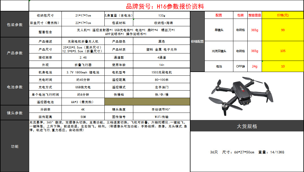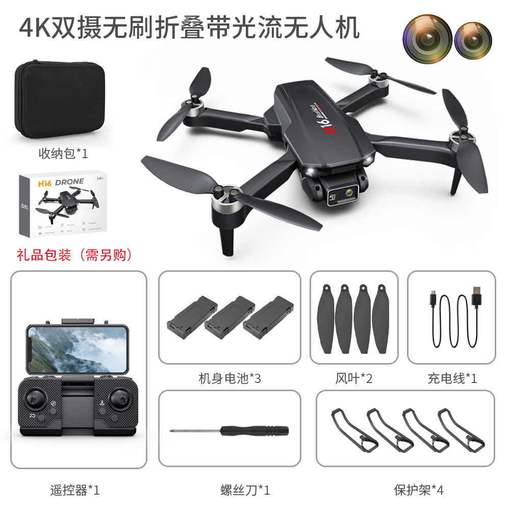 H16 일반 드론 고화질 카메라 광류 위치추적 4축 비행기 원격 조종 장난감 브러시리스 모터