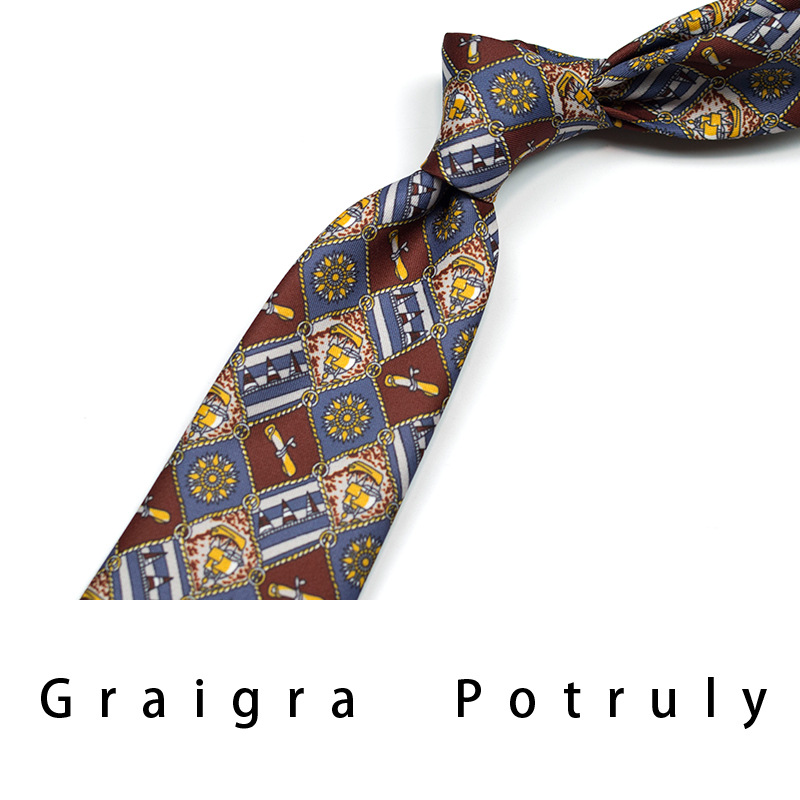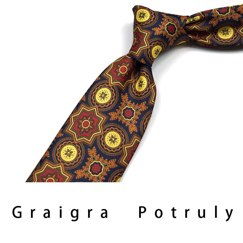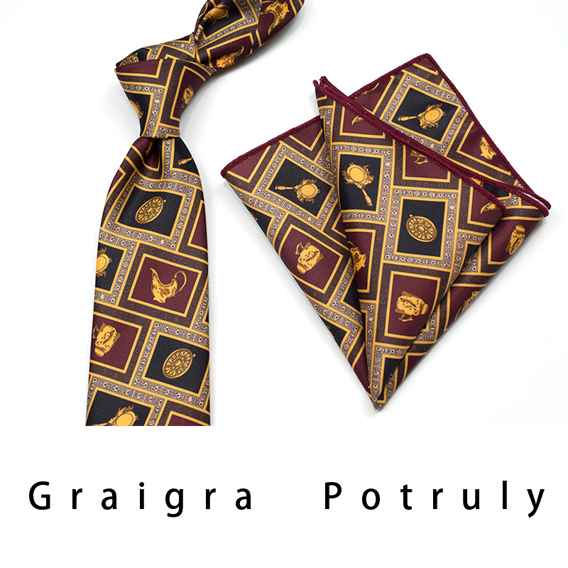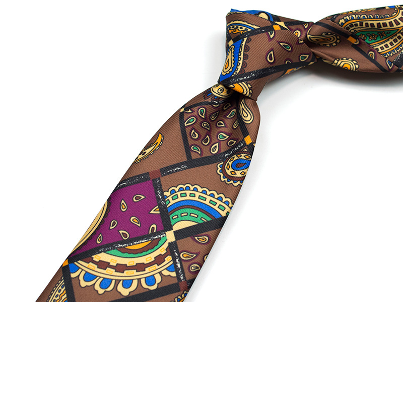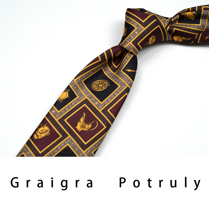 7 일 교체 버건디 노란색 다크 브라운 작은 동물 프린트 실크 남성용 넥타이 너비 9cm