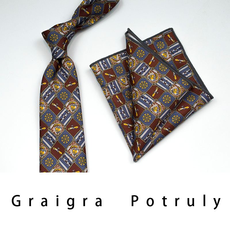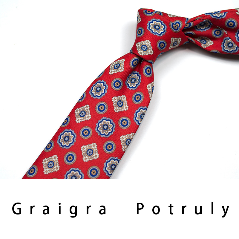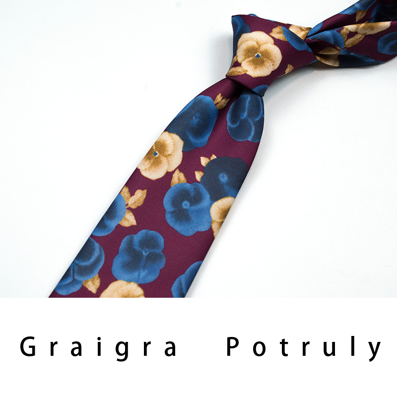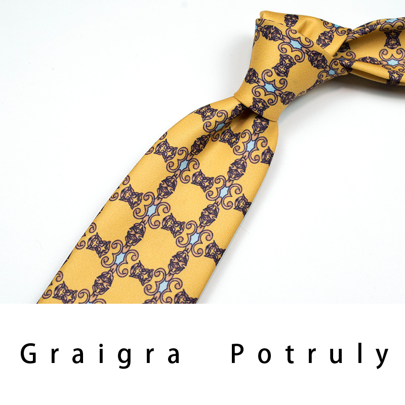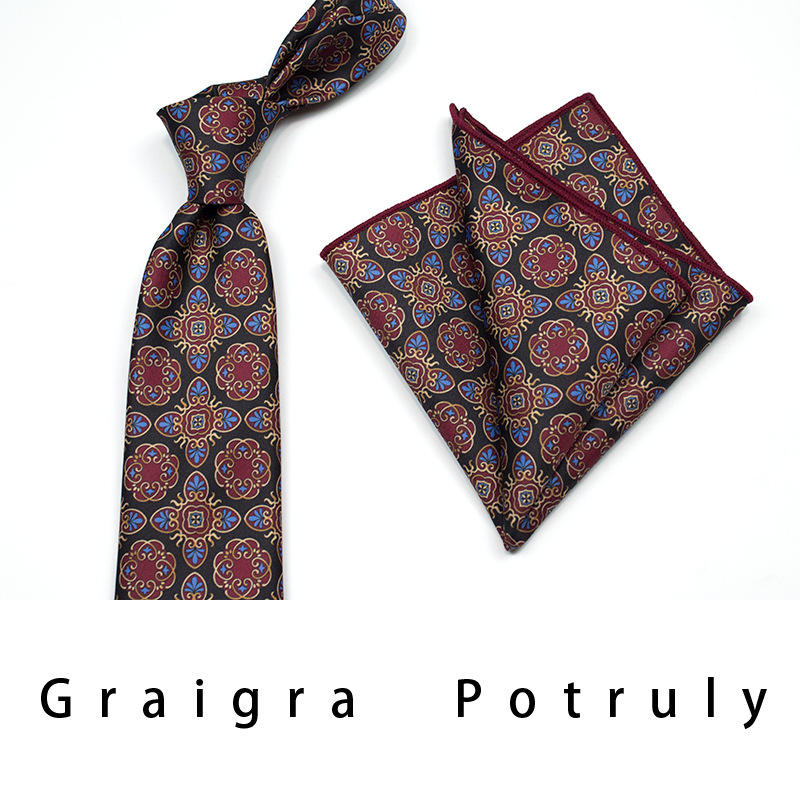 7 일 교체 버건디 노란색 다크 브라운 작은 동물 프린트 실크 남성용 넥타이 너비 9cm