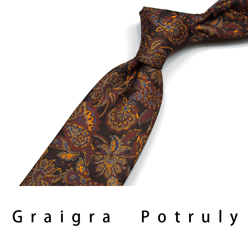 7 일 교체 버건디 노란색 다크 브라운 작은 동물 프린트 실크 남성용 넥타이 너비 9cm스토어 가기