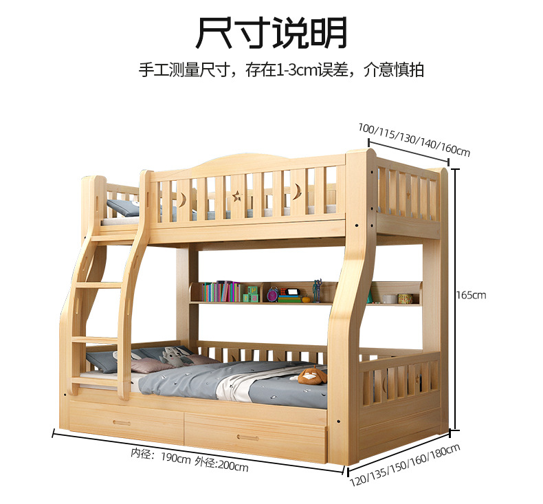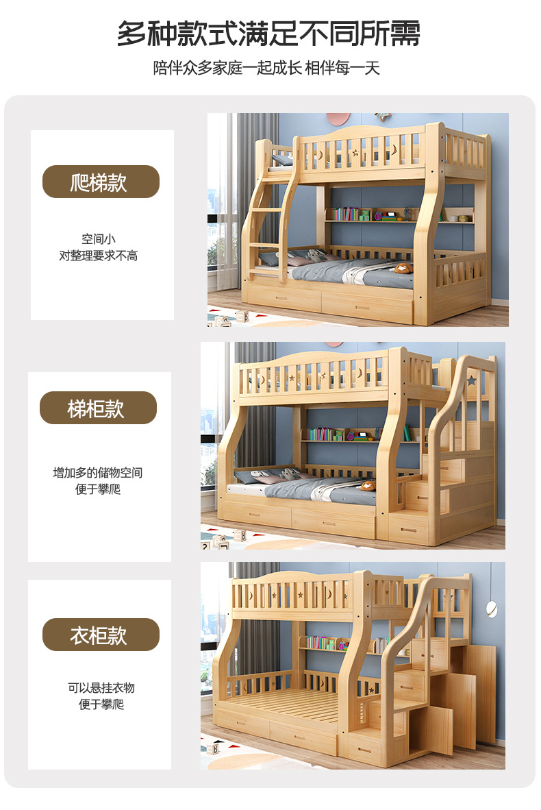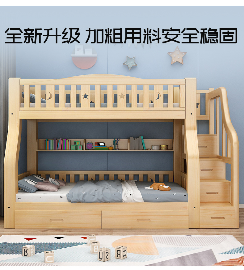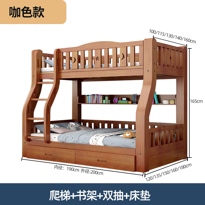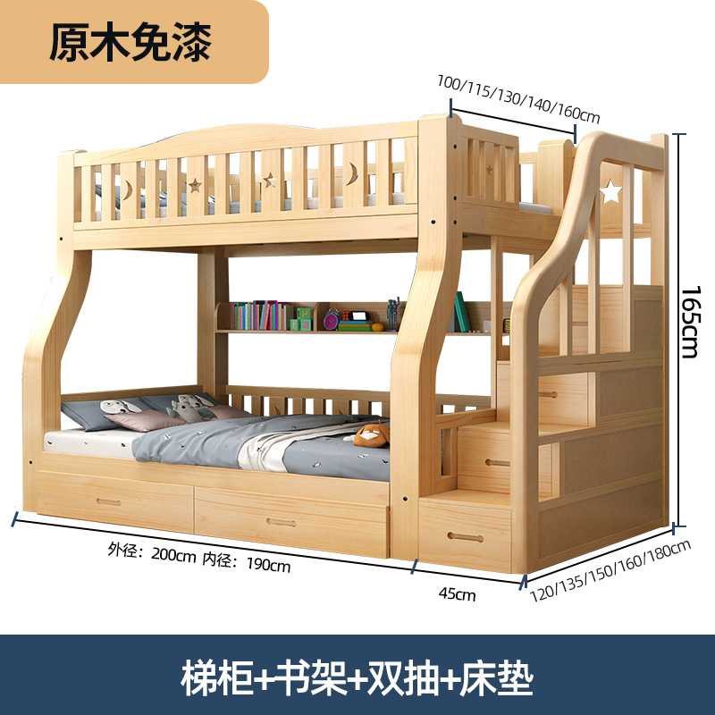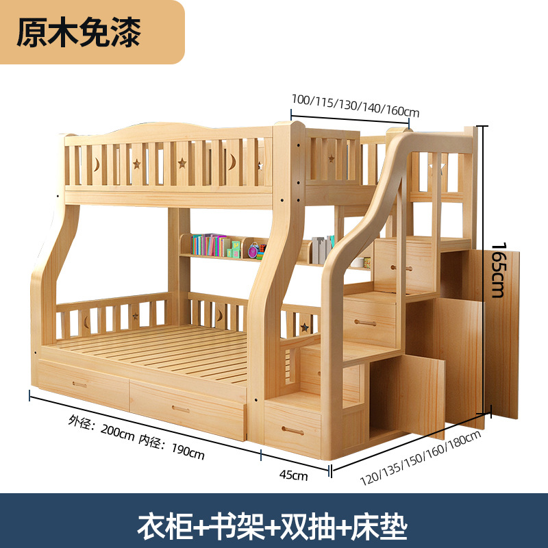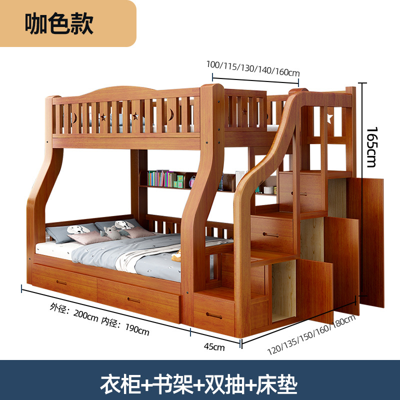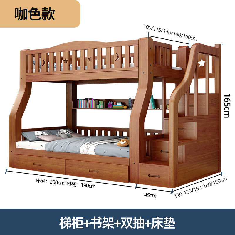 이층 침대 이층 침대 다기능 단단한 나무 높고 낮은 침대 어린이 침대 이층 침대 성인용 2 층 나무 침대