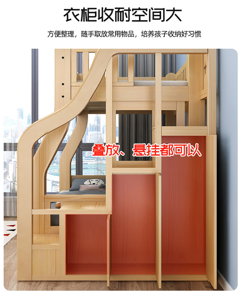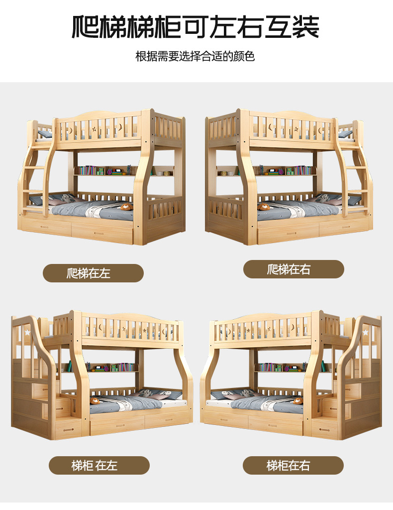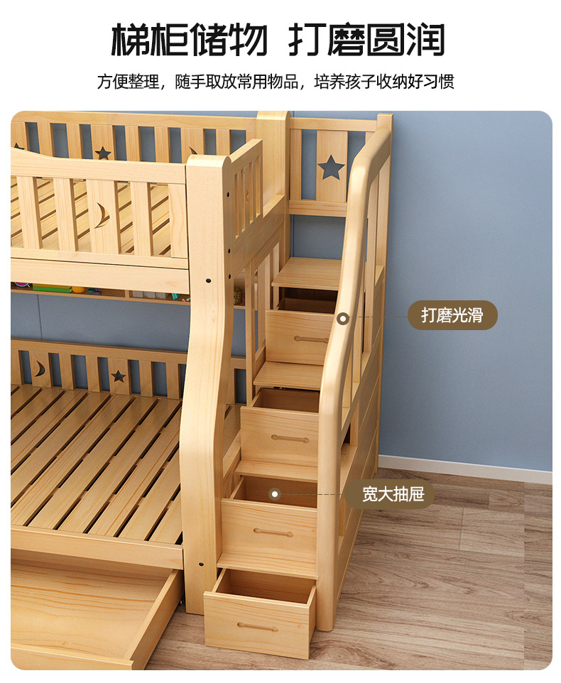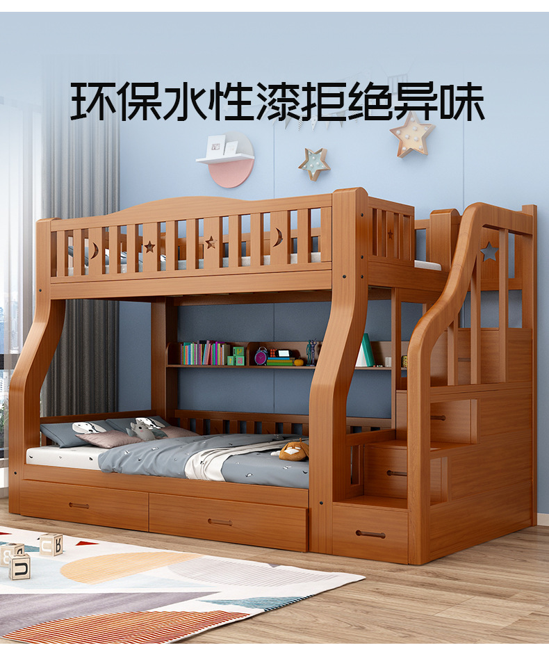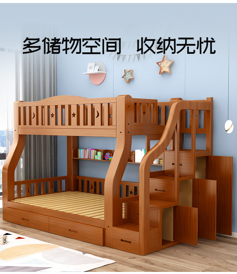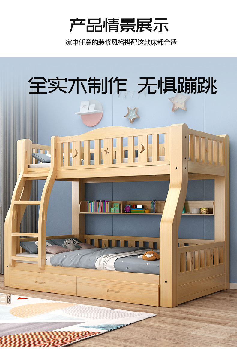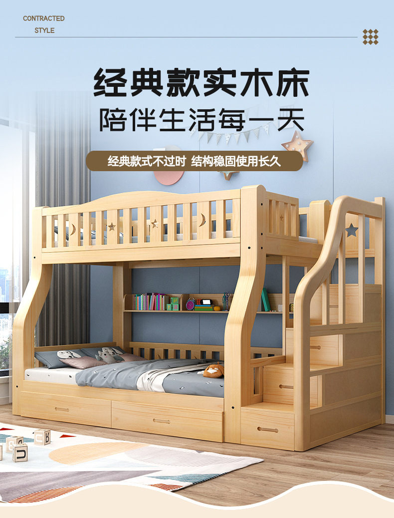 이층 침대 이층 침대 다기능 단단한 나무 높고 낮은 침대 어린이 침대 이층 침대 성인용 2 층 나무 침대스토어 가기