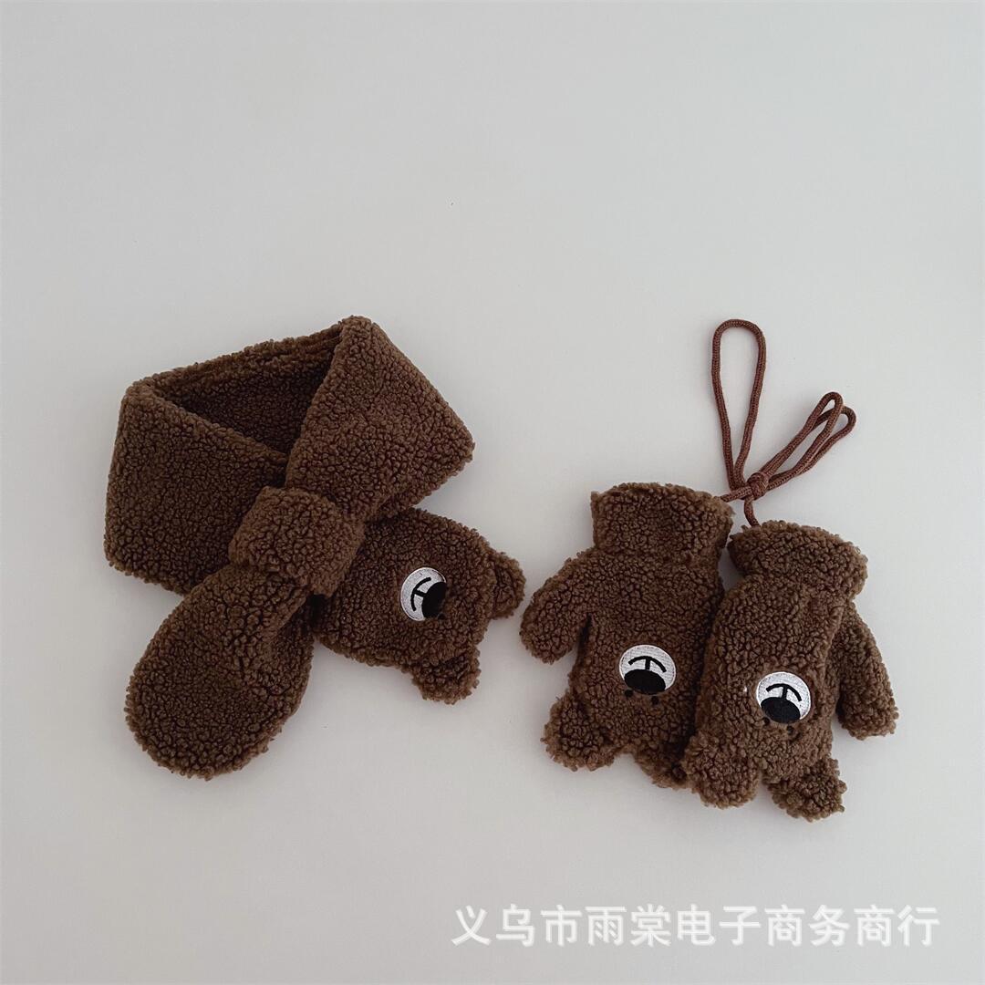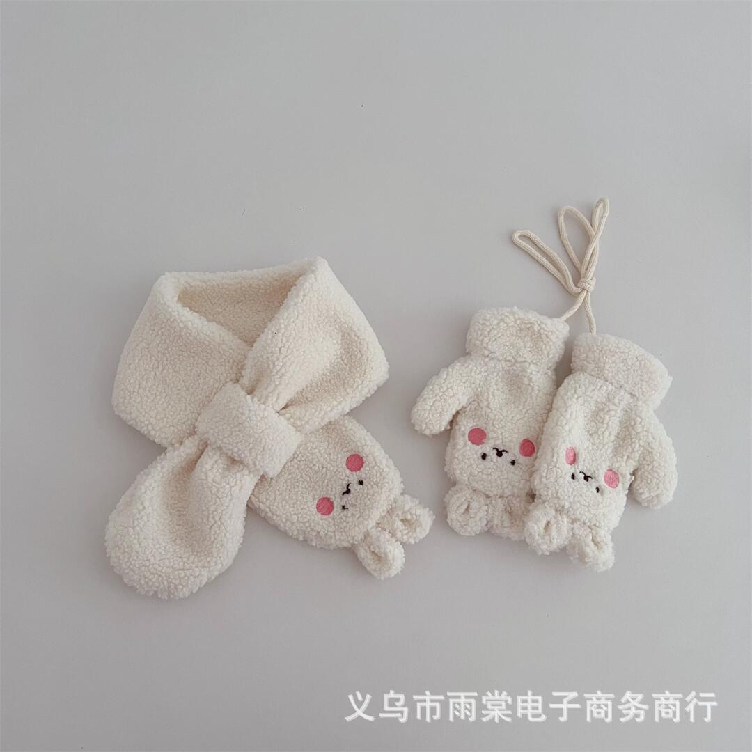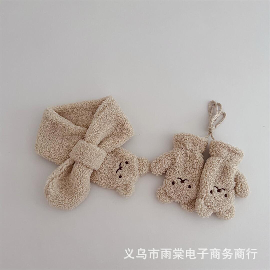 가을과 겨울 어린이의 귀여운 만화 양고기 벨벳 목 장갑 세트 따뜻한 목 교수형 장갑 소년 소녀스토어 가기