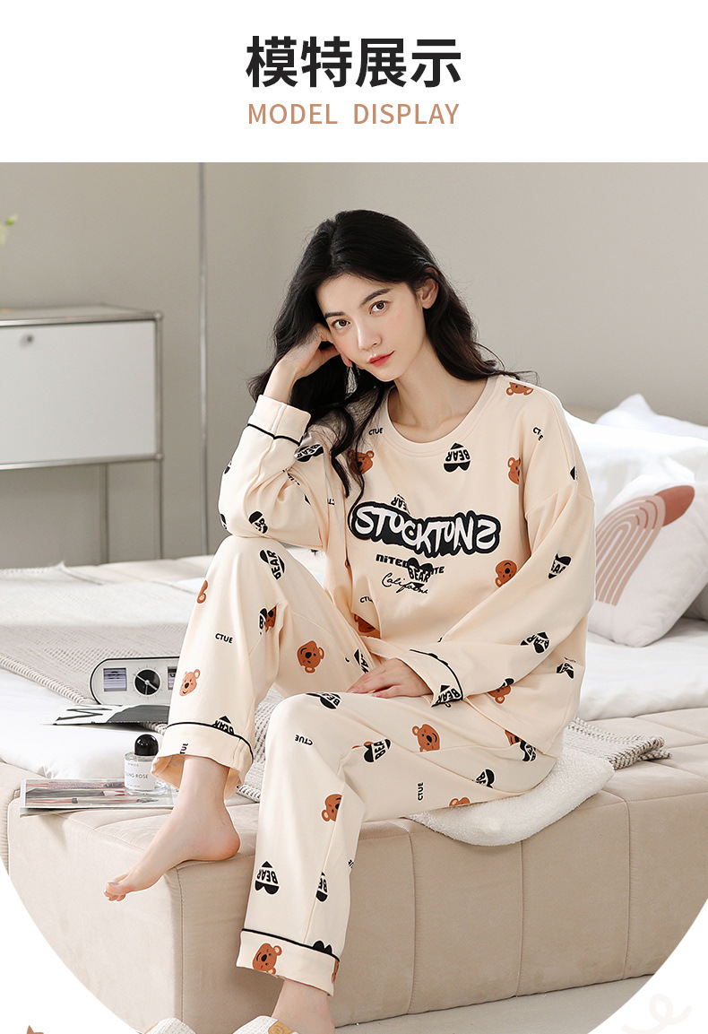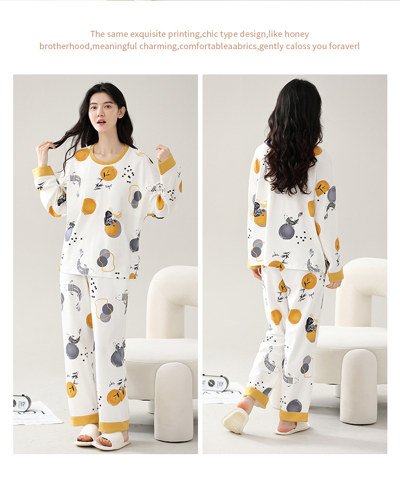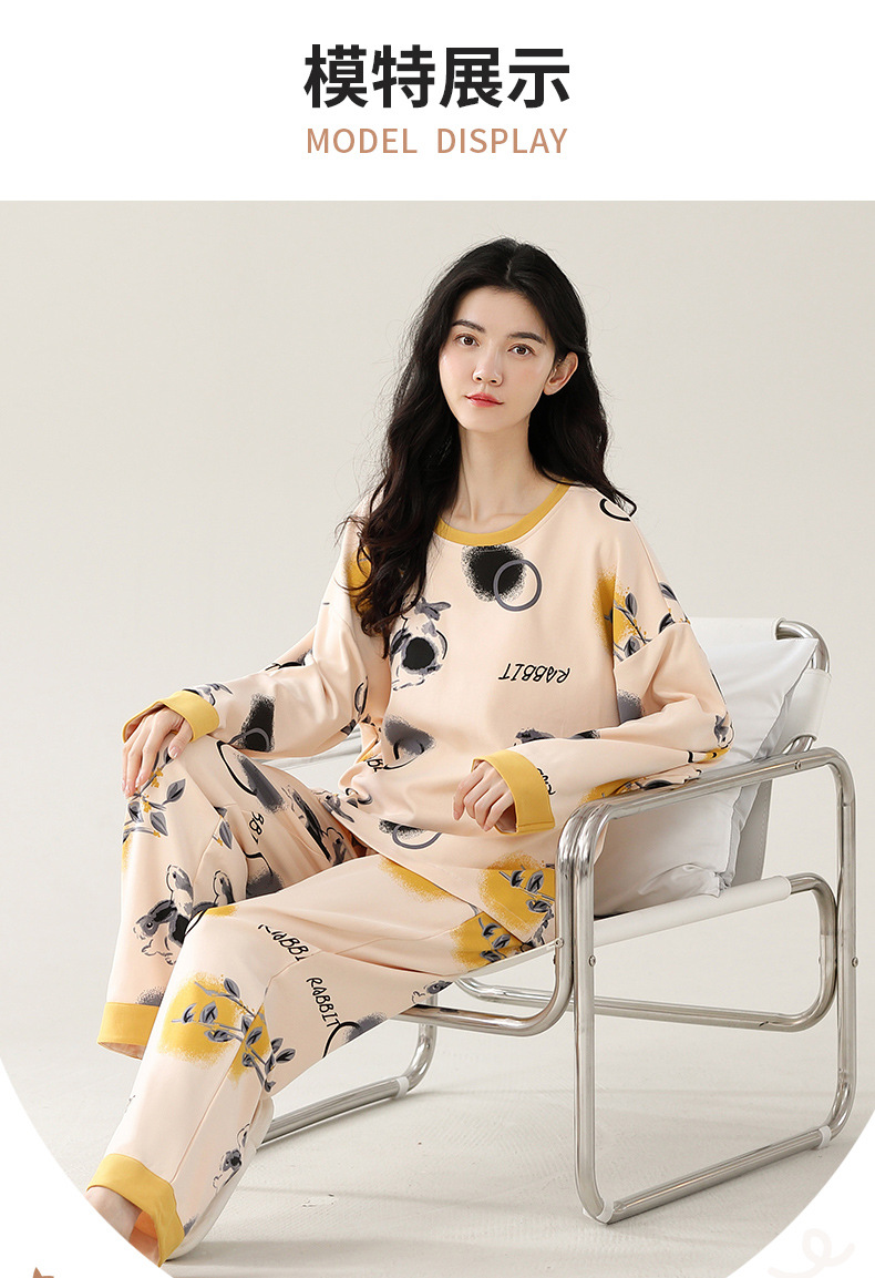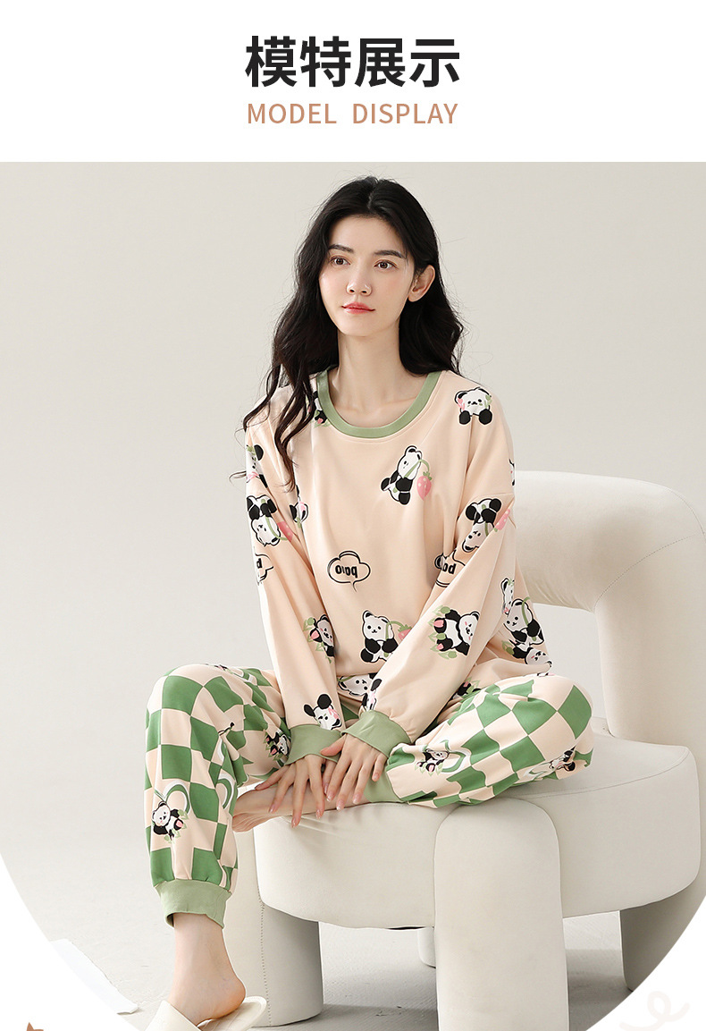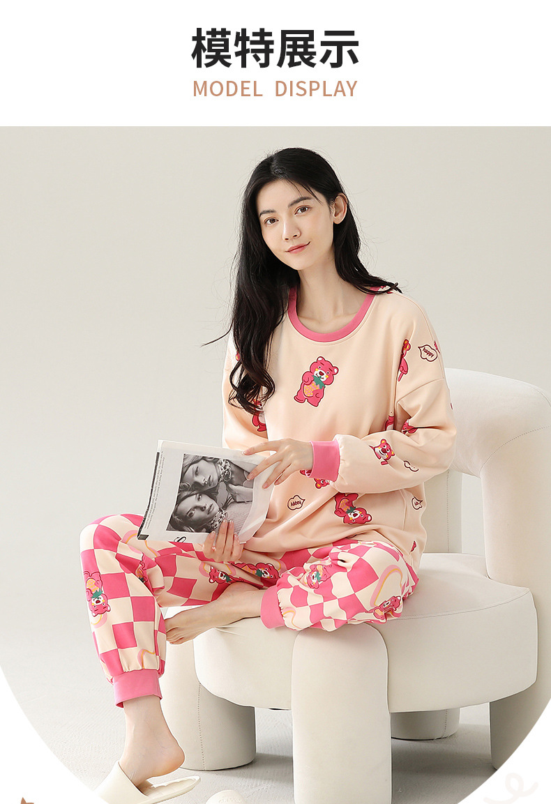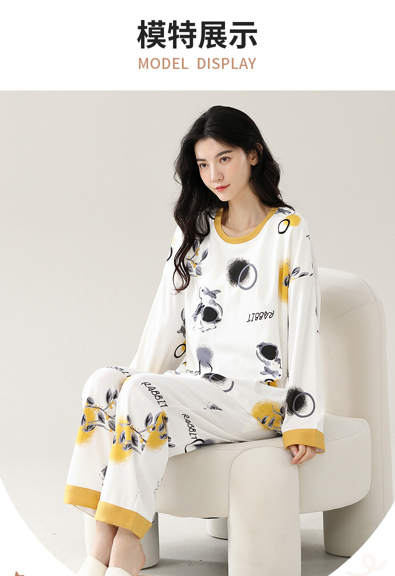 봄과 가을 2023 새로운 스타일 잠옷 여자의 순면 긴 소매 통통녀 플러스 사이즈 가정 옷 가슴 패드와 투피스 팩