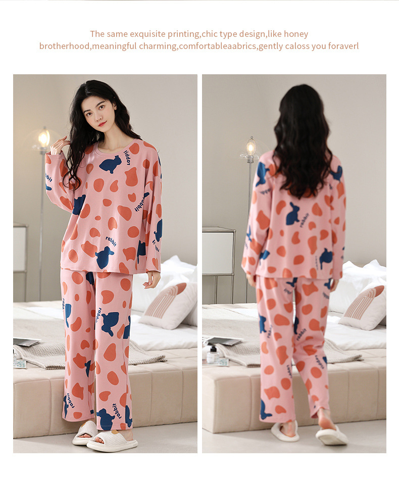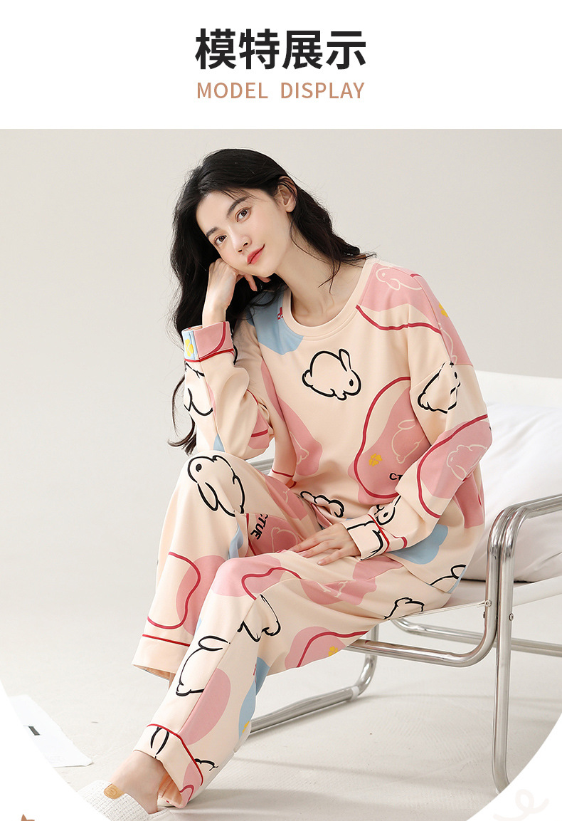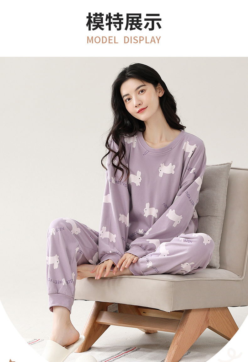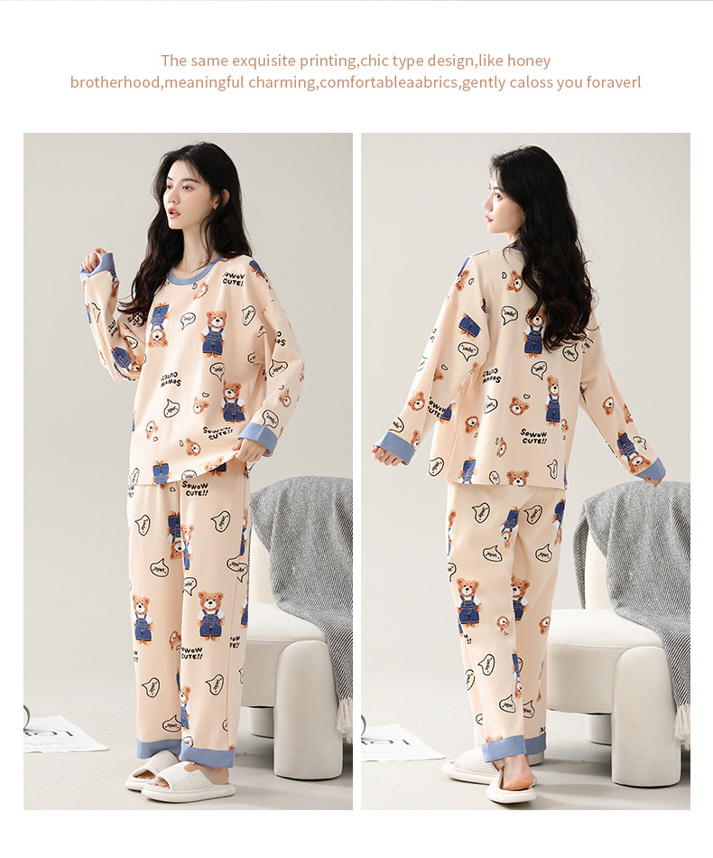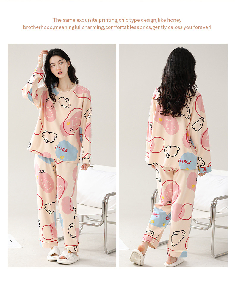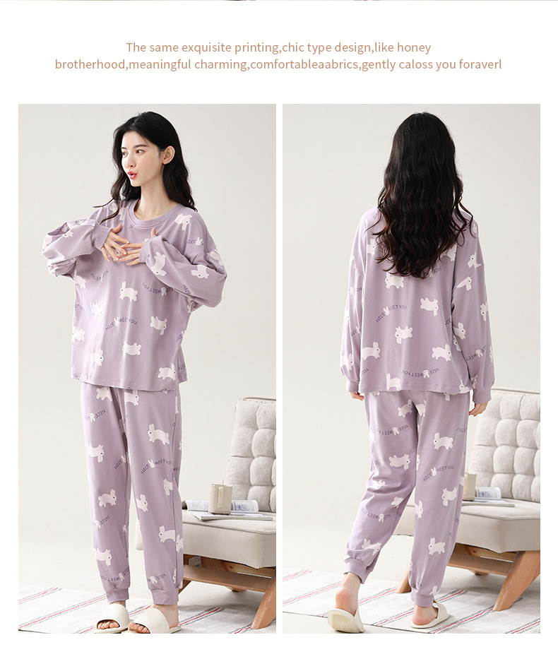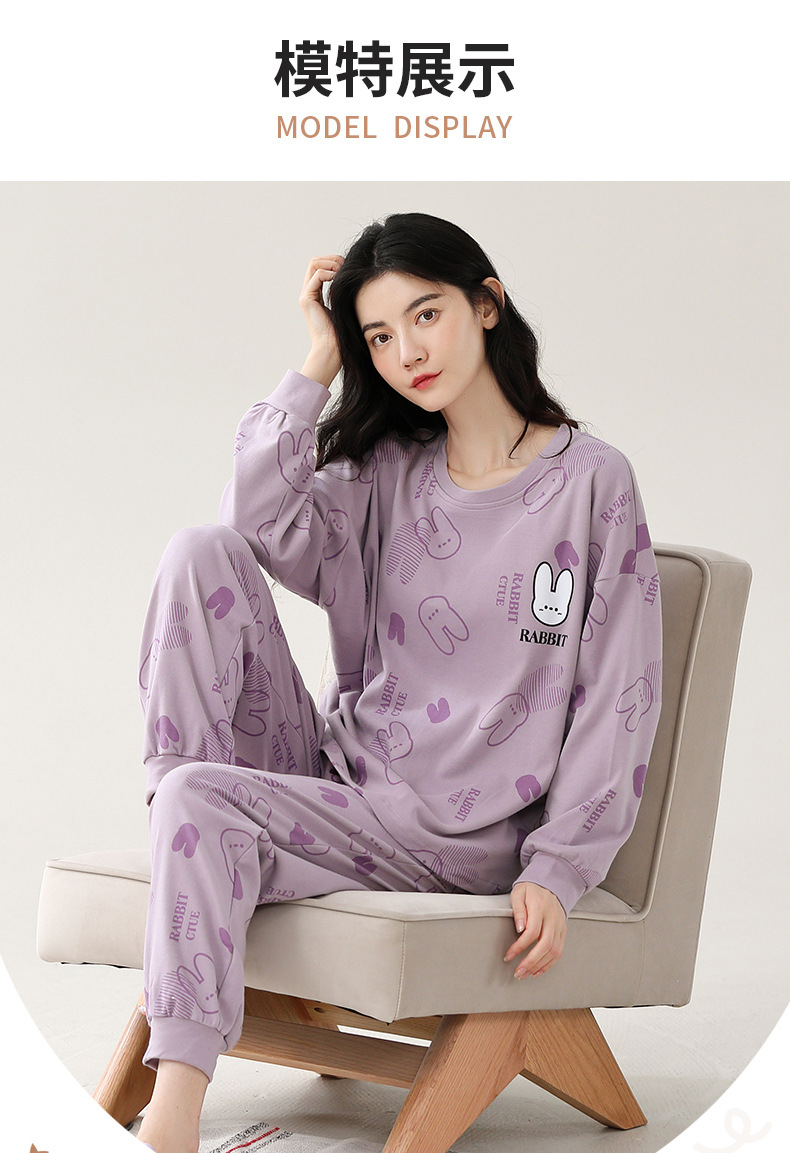 봄과 가을 2023 새로운 스타일 잠옷 여자의 순면 긴 소매 통통녀 플러스 사이즈 가정 옷 가슴 패드와 투피스 팩