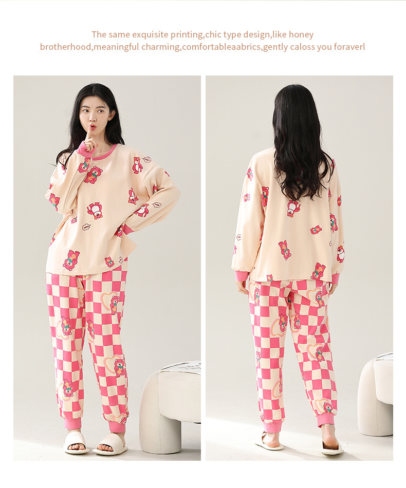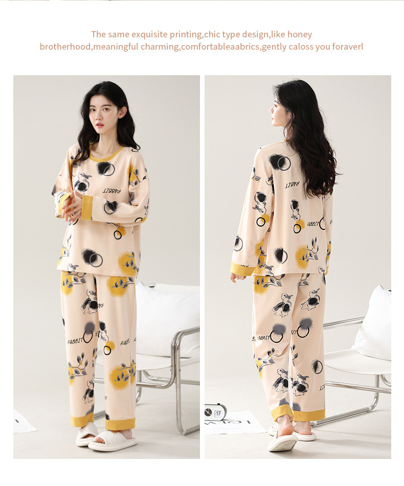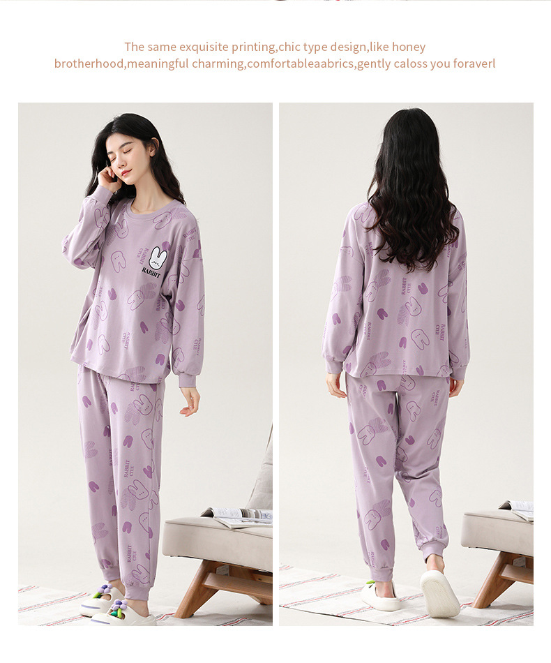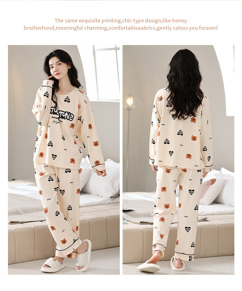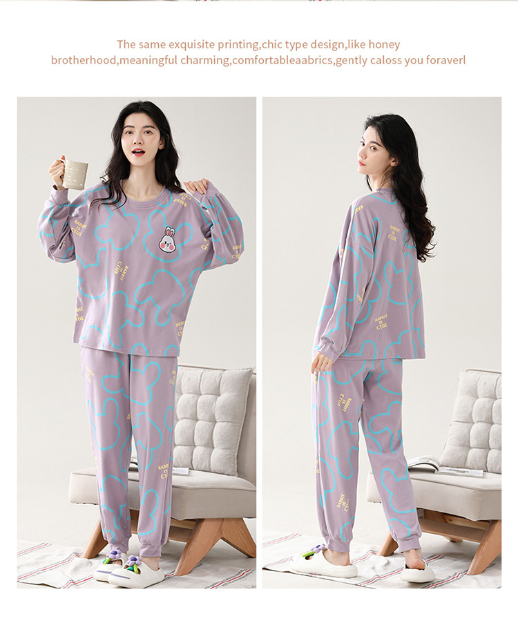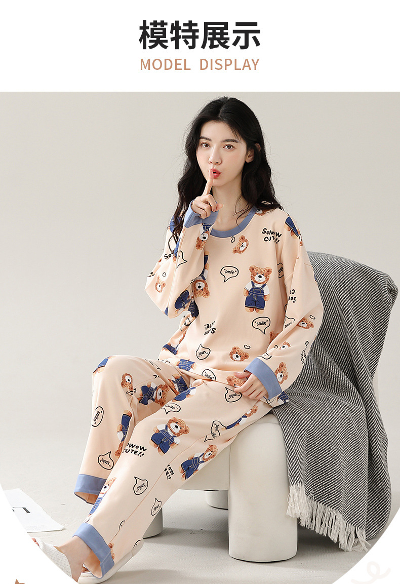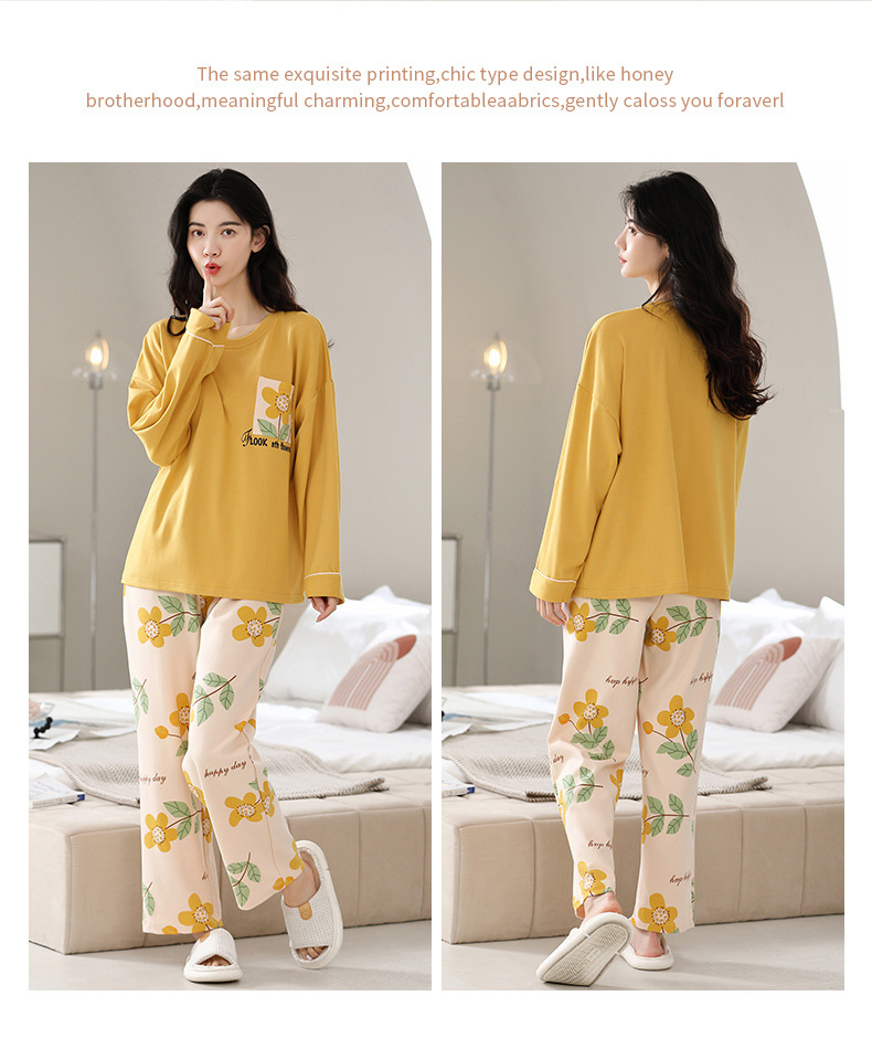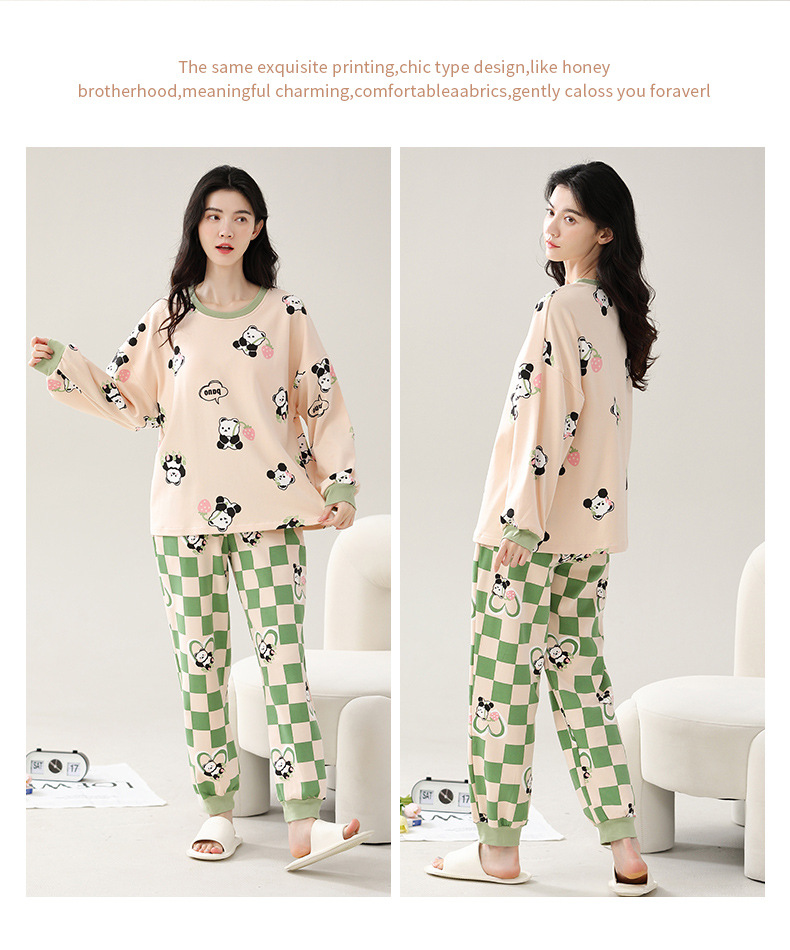 봄과 가을 2023 새로운 스타일 잠옷 여자의 순면 긴 소매 통통녀 플러스 사이즈 가정 옷 가슴 패드와 투피스 팩