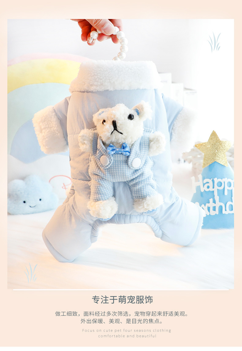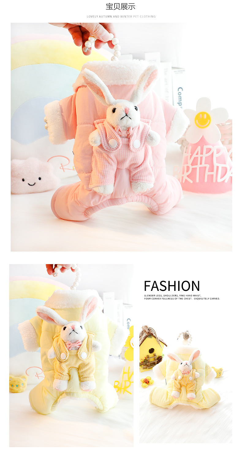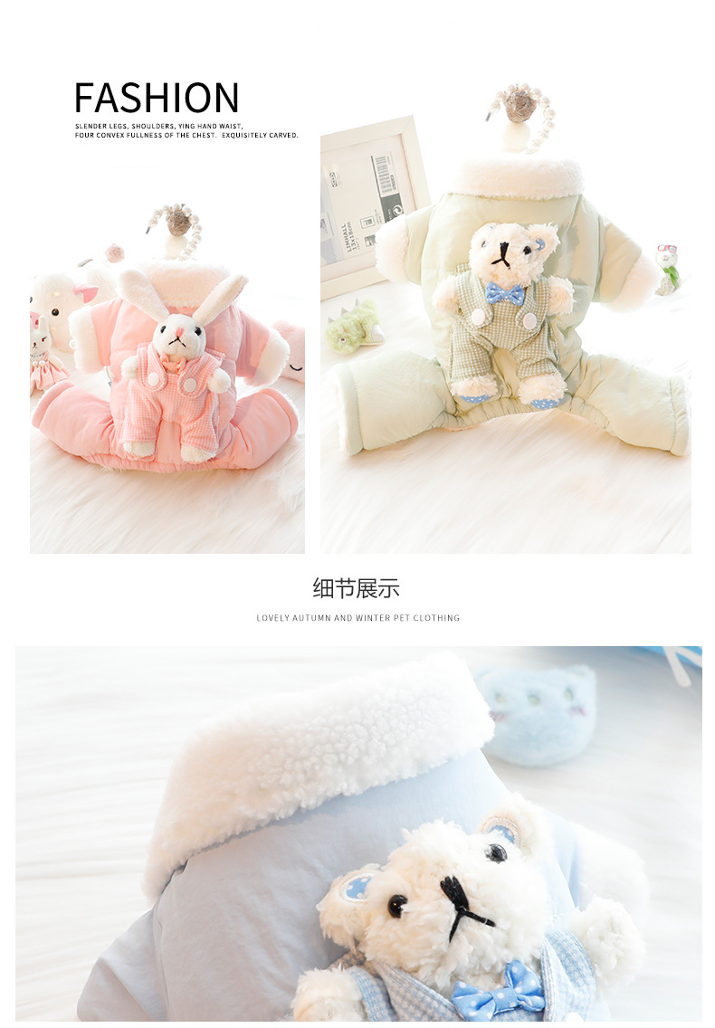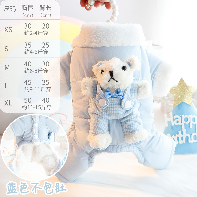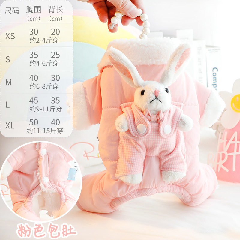 개 옷 가을과 겨울 옷 두꺼운 스트랩 스테레오 토끼 가방 배 보호 4 발 작은 개 테디 애완 동물 4826