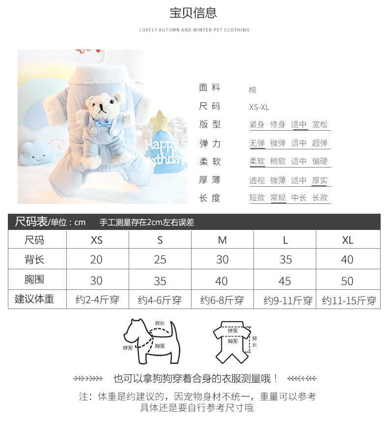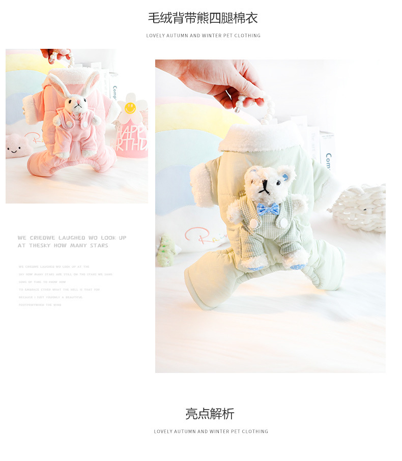 개 옷 가을과 겨울 옷 두꺼운 스트랩 스테레오 토끼 가방 배 보호 4 발 작은 개 테디 애완 동물 4826스토어 가기