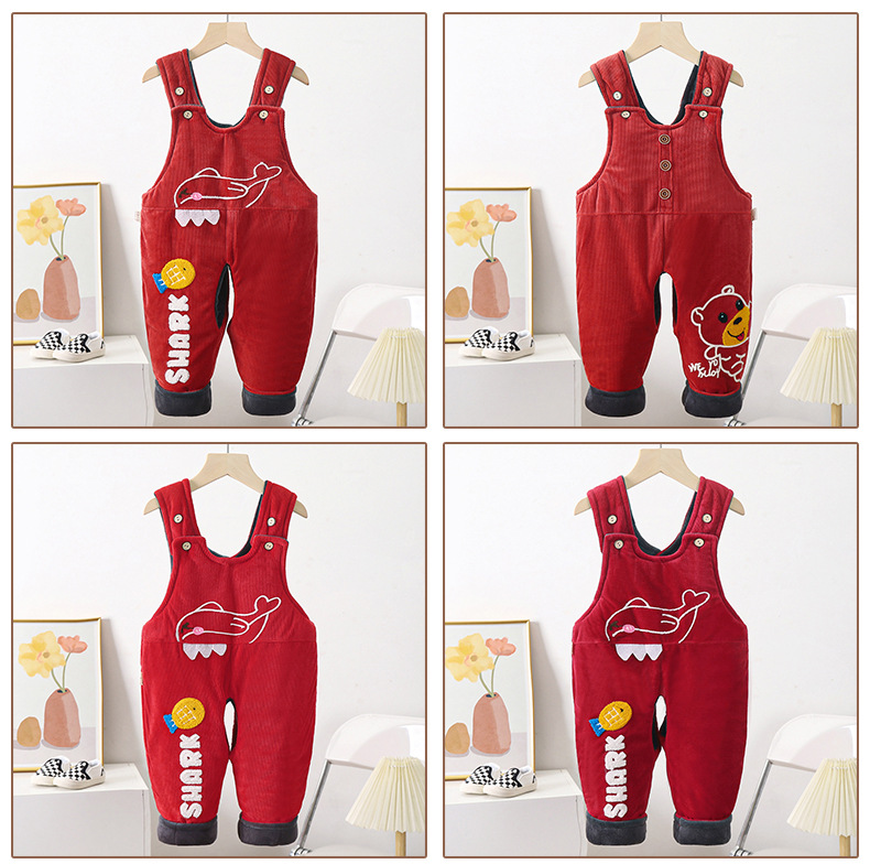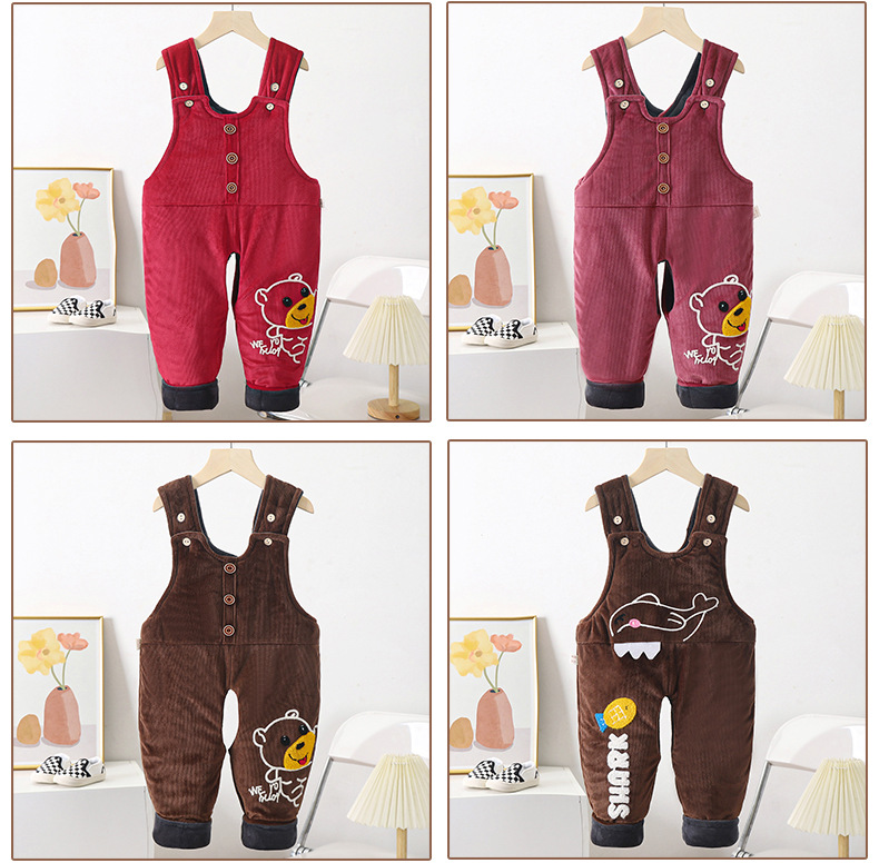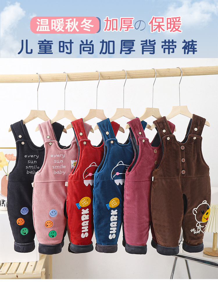 베이비 스트랩 코튼 팬츠 베이비 기모 두껍게 열린 코튼 팬츠 소년과 소녀 원피스 따뜻한면 바지