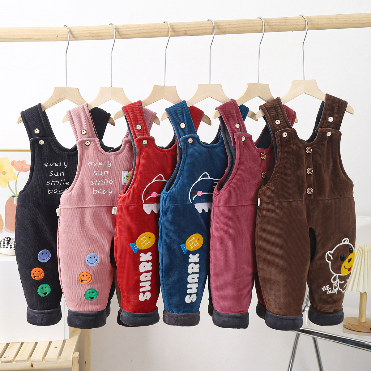베이비 스트랩 코튼 팬츠 베이비 기모 두껍게 열린 코튼 팬츠 소년과 소녀 원피스 따뜻한면 바지스토어 가기