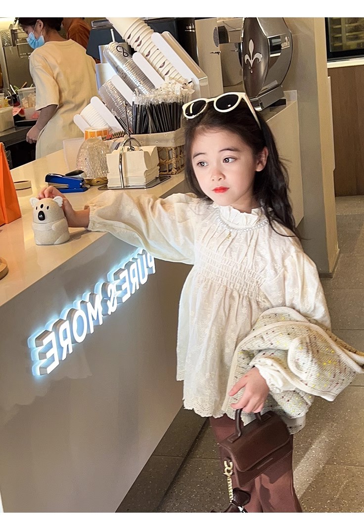 여자 셔츠 스탠드 칼라 수 놓은 어두운 꽃 주름 탑 겉옷 25 가을 의류 새로운 대외 무역 아동복 3-8 세스토어 가기
