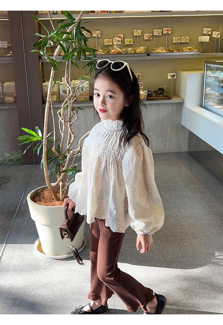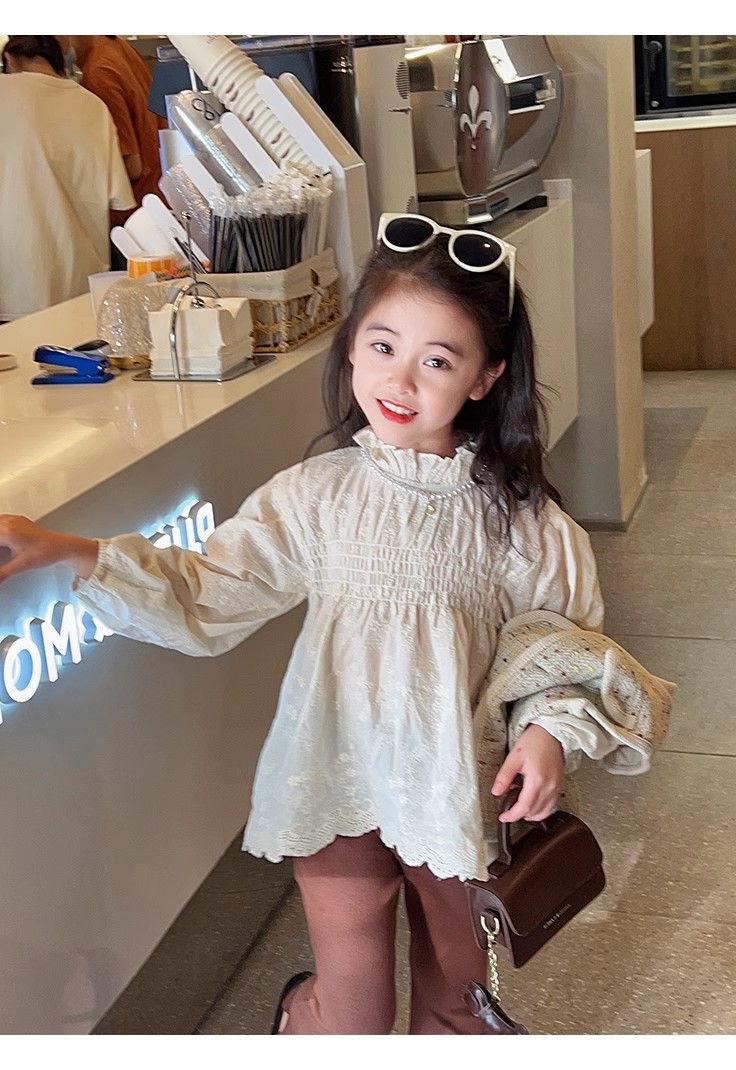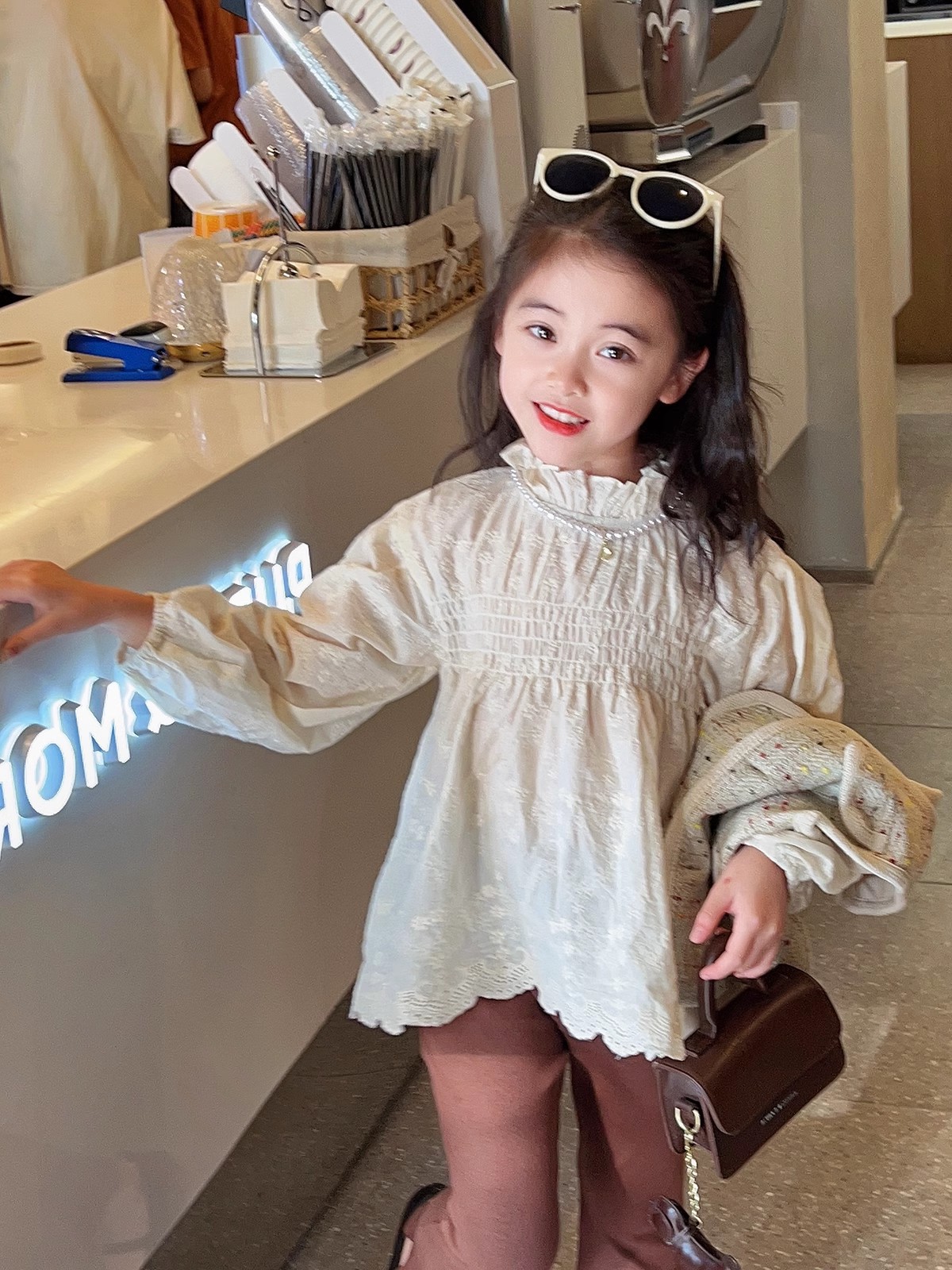 여자 셔츠 스탠드 칼라 수 놓은 어두운 꽃 주름 탑 겉옷 25 가을 의류 새로운 대외 무역 아동복 3-8 세