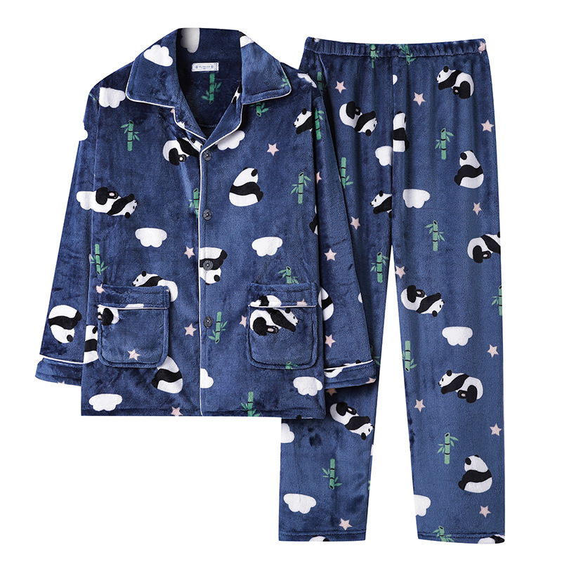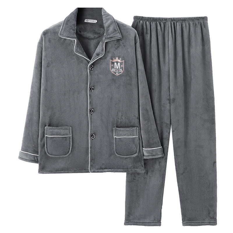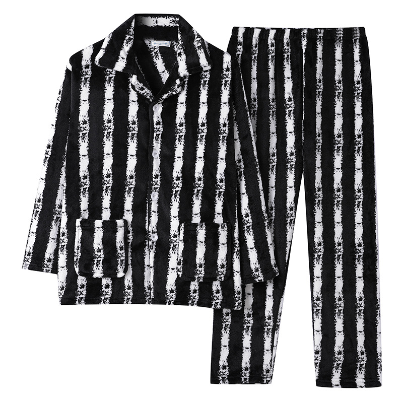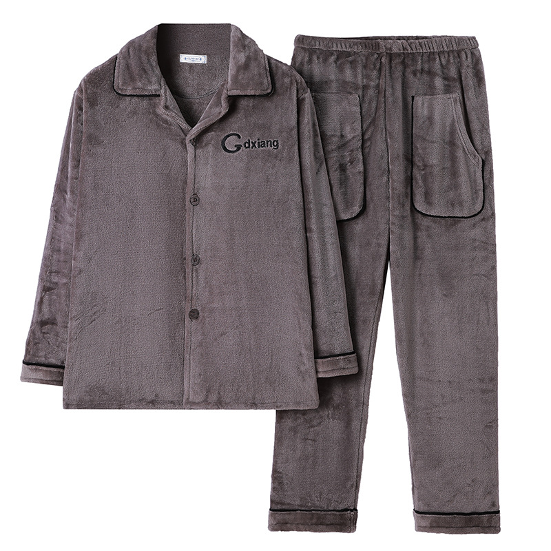 산호 양털 남자의 잠옷 겨울 긴 소매 두꺼운 청소년 캐주얼 따뜻한 플란넬 플러스 사이즈 홈웨어 세트