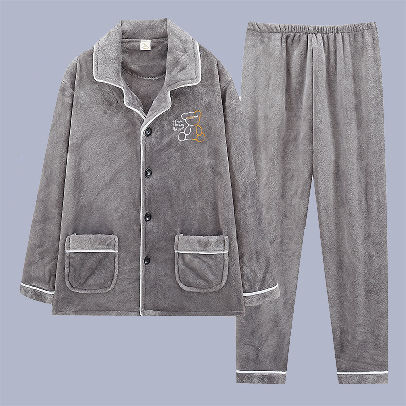 산호 양털 남자의 잠옷 겨울 긴 소매 두꺼운 청소년 캐주얼 따뜻한 플란넬 플러스 사이즈 홈웨어 세트스토어 가기
