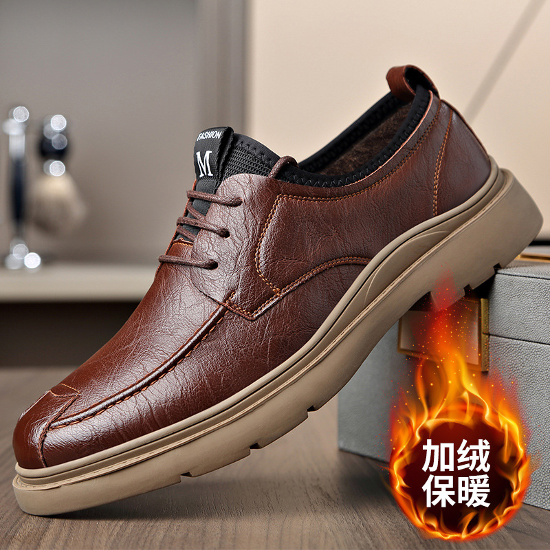 남성용 겨울 신상품, 보온성과 다용도성을 갖춘 비즈니스 캐주얼 신발, 남성용 부드러운 밑창 중년 아빠 가죽 신발스토어 가기