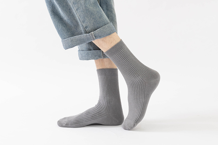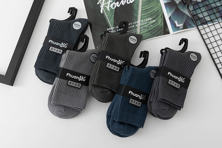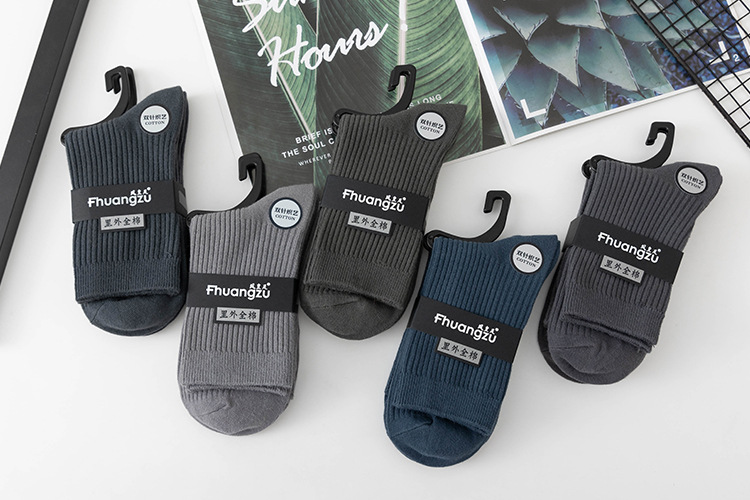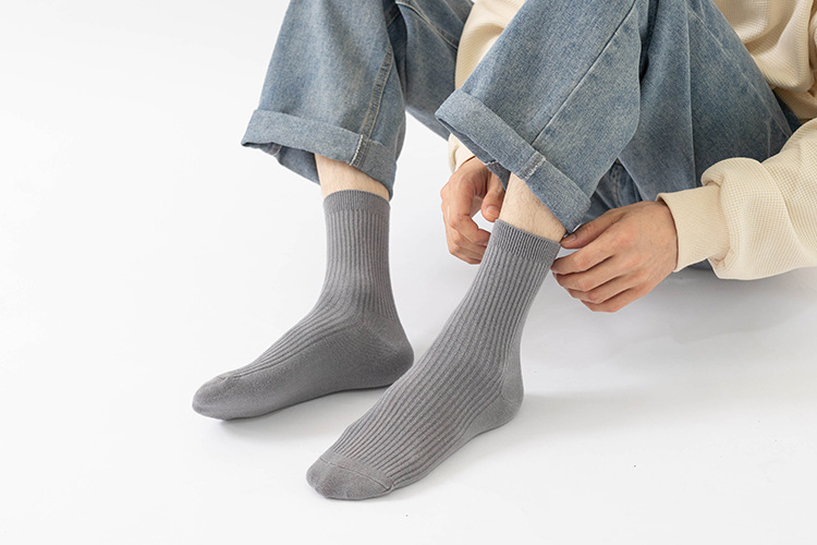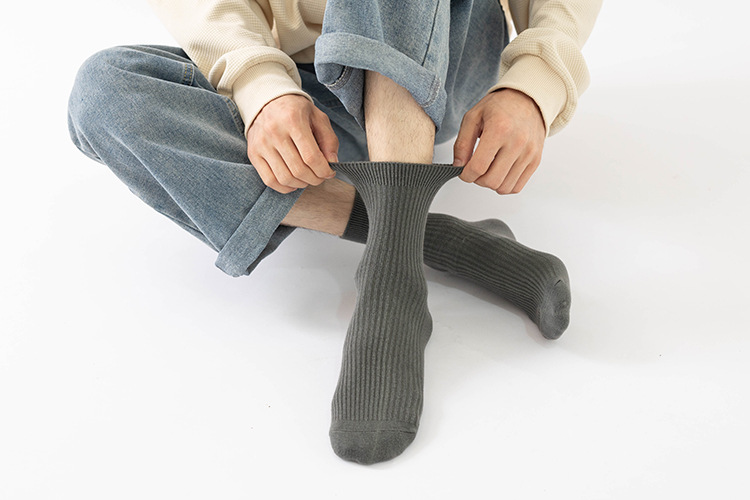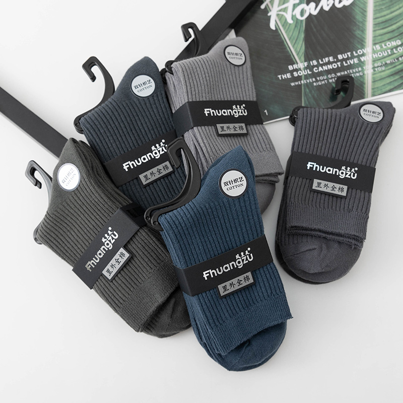 더블 바늘 가을과 겨울 남성용 비즈니스 양말 통기성 땀 흡수 어두운 색 두꺼운 캐주얼 남성 양말 수직 뼈없는 단색 면 양말스토어 가기