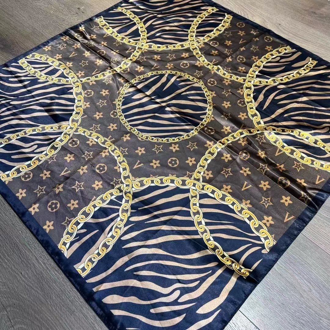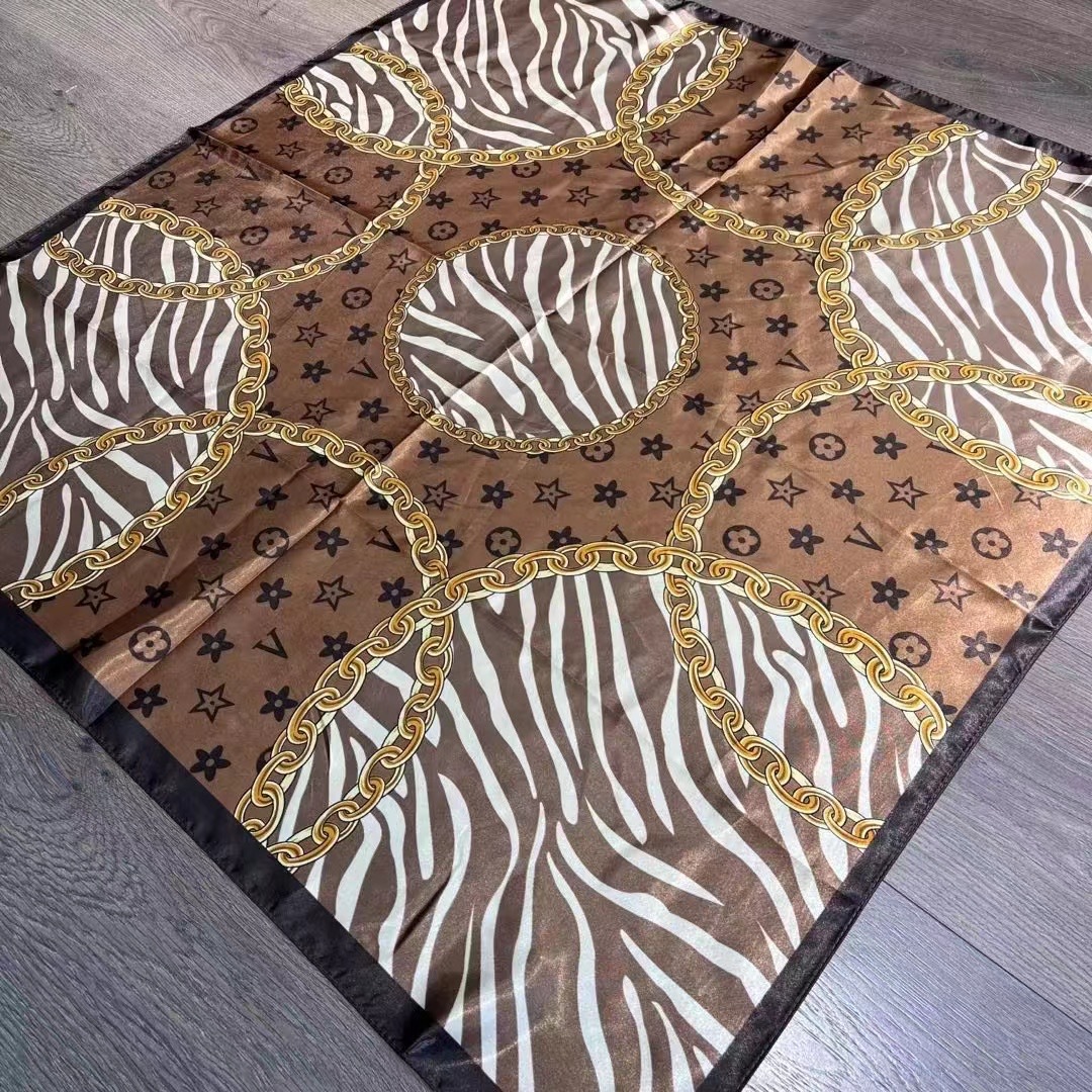 가을과 겨울 새로운 패션 얼룩말 패턴 머리 스카프 우아한 편지 인쇄 실크 스카프 90cm 모조 실크 대형 스퀘어 스카프 숄 여성