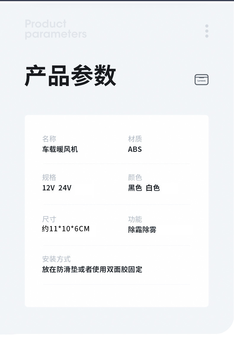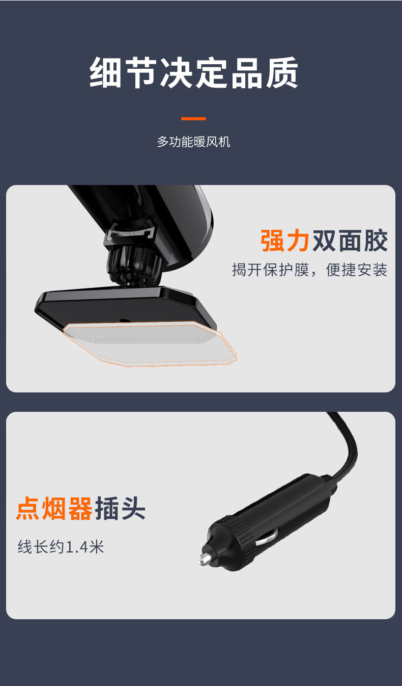 注意事项:此产品为车载暖风机因电压原因车内点烟器低于8A的会出现限流的问题,(只出自然风不出热风,机器在正常工作时就是限流了)