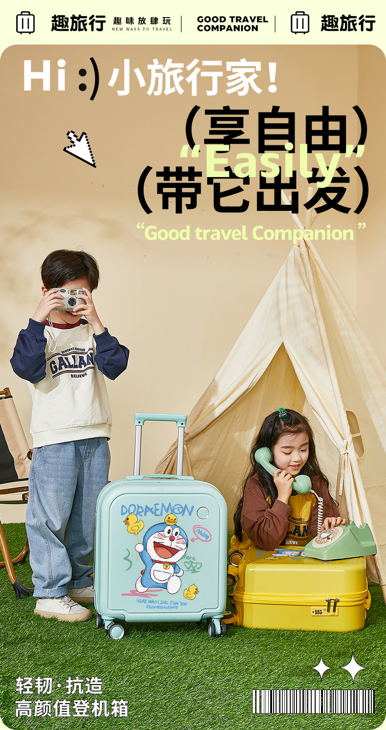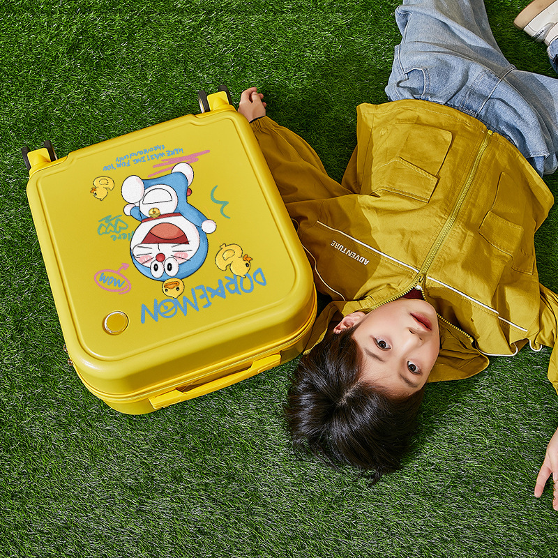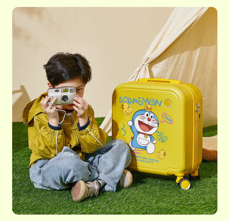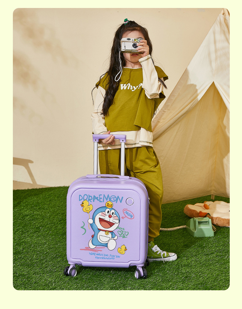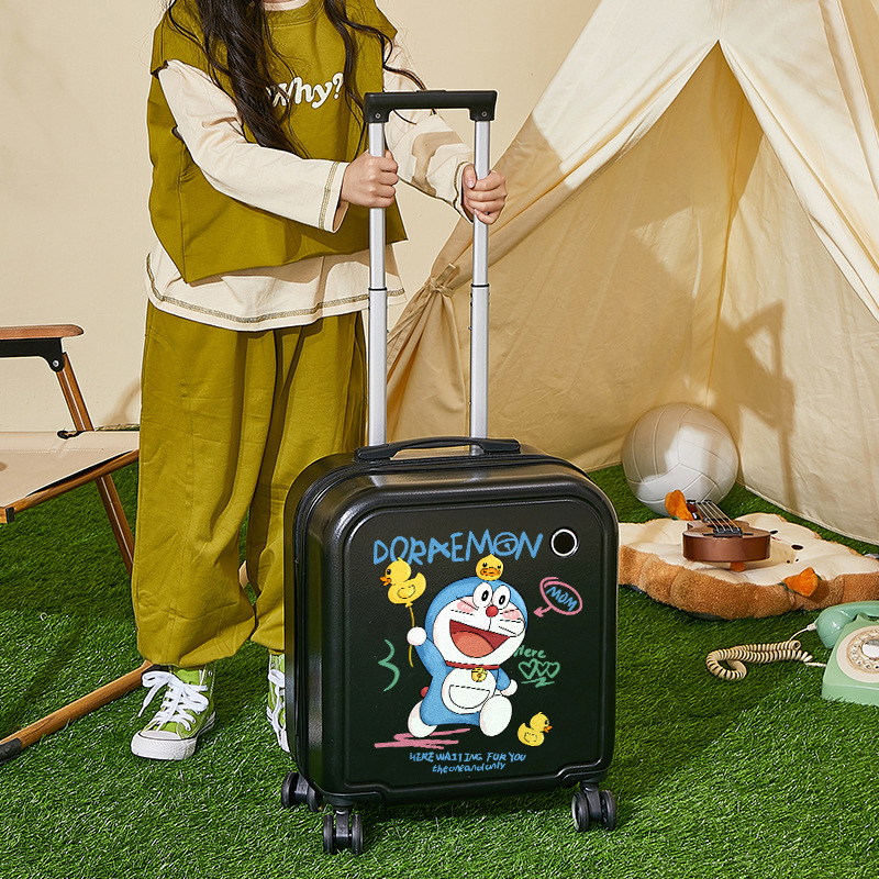 여행 가방 18/20 인치 남성 및 여성 트롤리 케이스 음소거 유니버설 휠은 암호 상자 도라에몽 수하물 상자에 탑승 할 수 있습니다