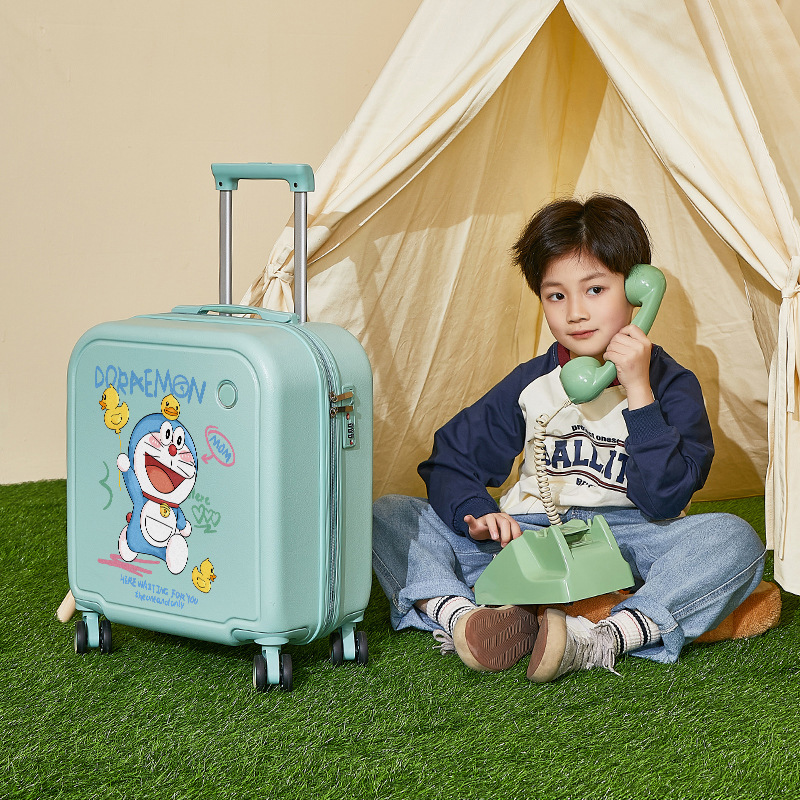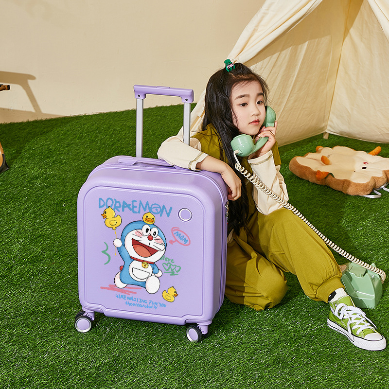 여행 가방 18/20 인치 남성 및 여성 트롤리 케이스 음소거 유니버설 휠은 암호 상자 도라에몽 수하물 상자에 탑승 할 수 있습니다스토어 가기