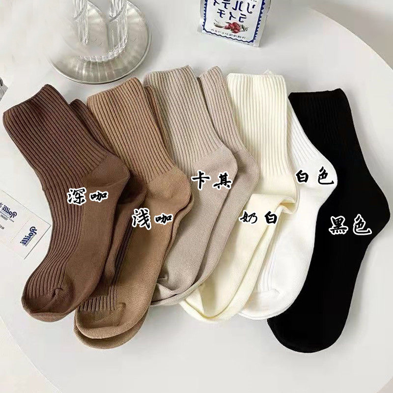 감금 양말 Douyin 같은 스타일 흰색 더미 양말 가을, 겨울 뼈없는 양말 ins 일본 대학 땀 흡수 중간 튜브 양말 도매스토어 가기