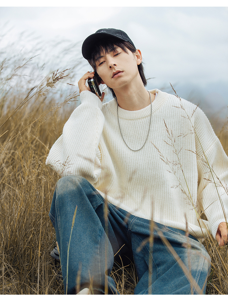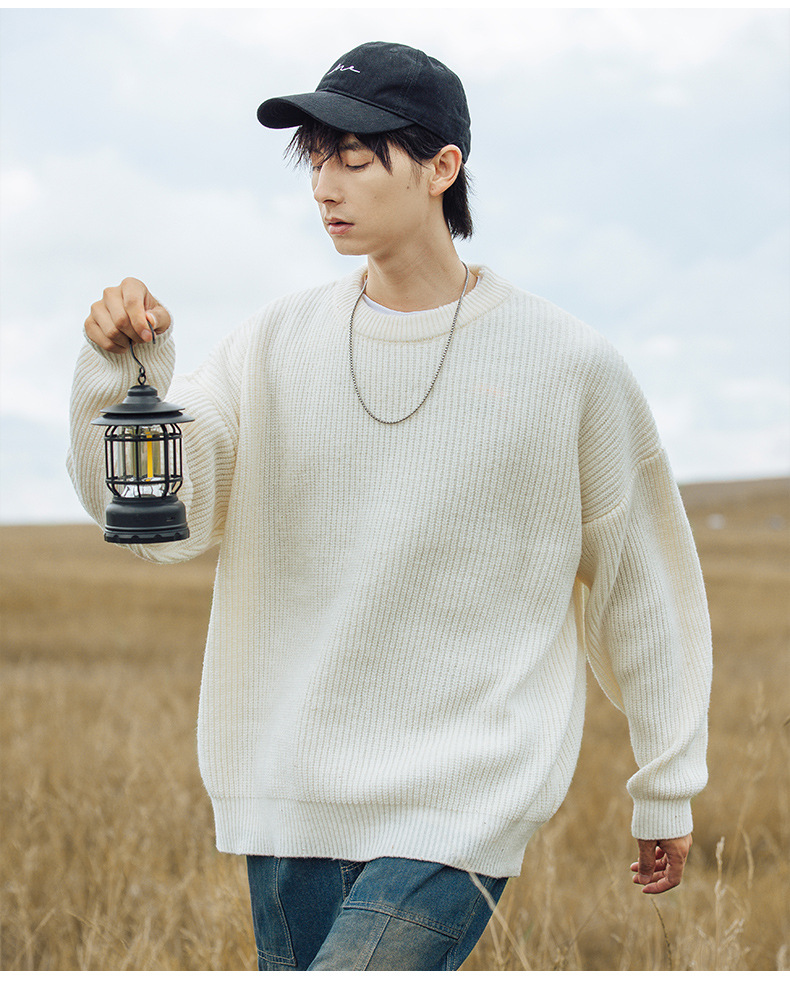 단색 두꺼운 바늘 구덩이 질감 스웨터 남자의 가을과 겨울 새로운 커플의 일본 스타일 복고풍 느슨한 라운드 넥 무거운 니트 스웨터스토어 가기
