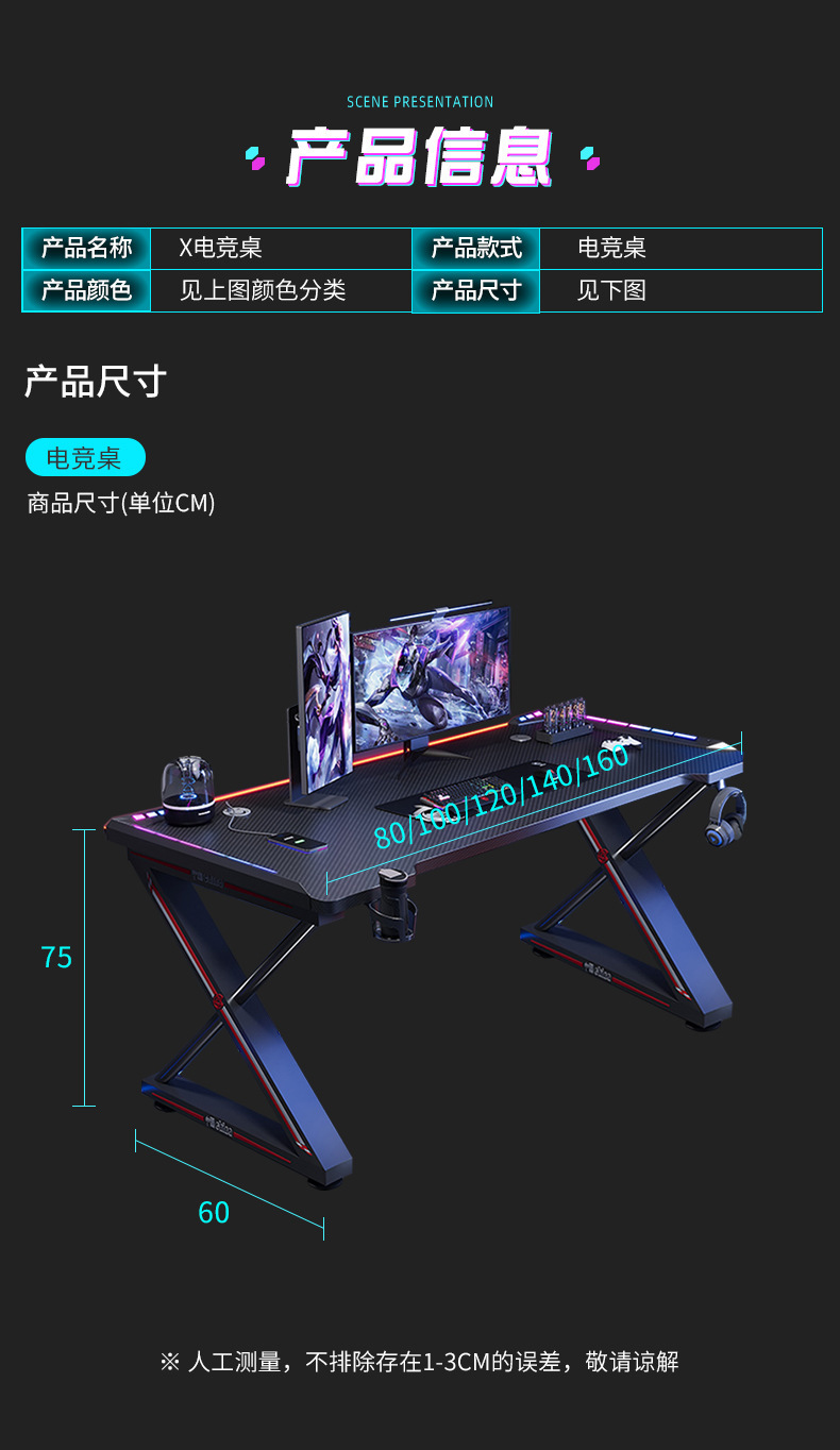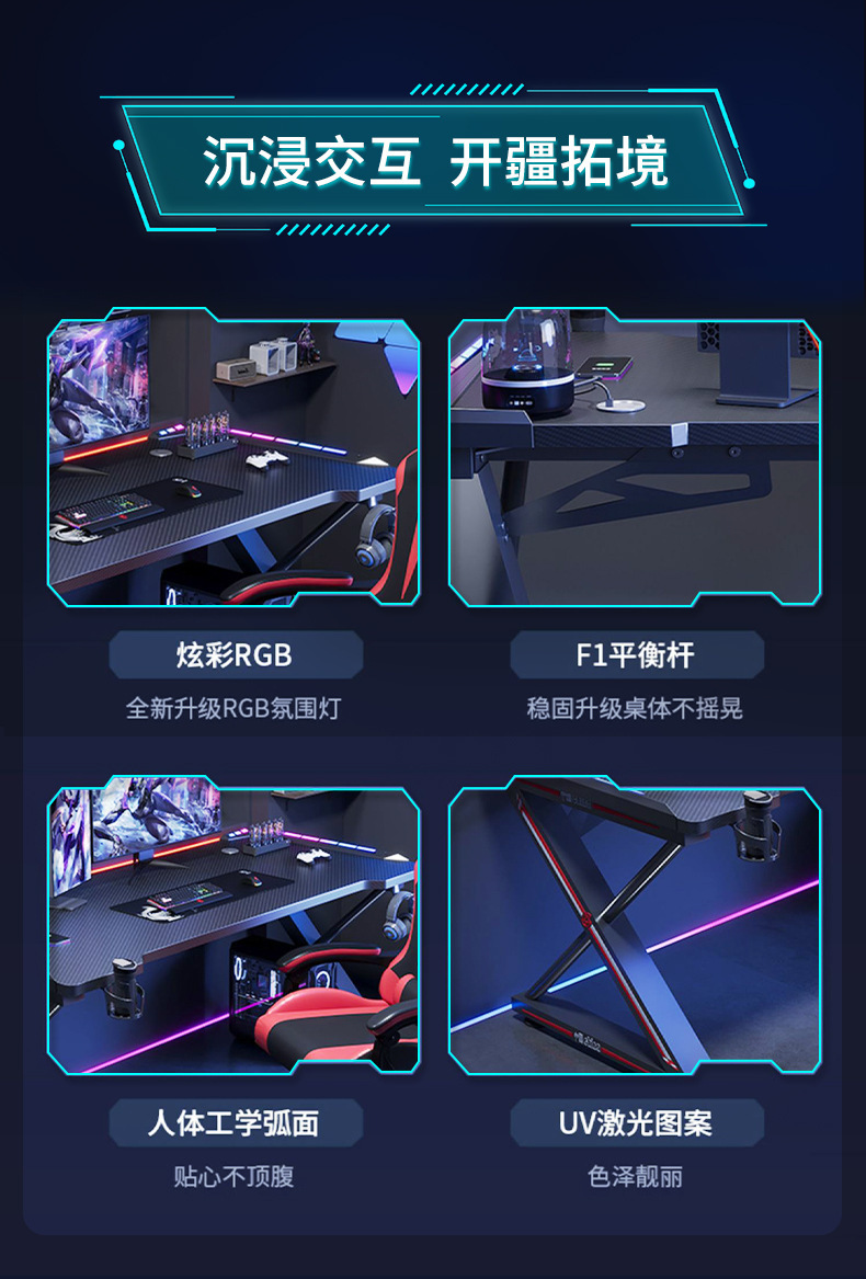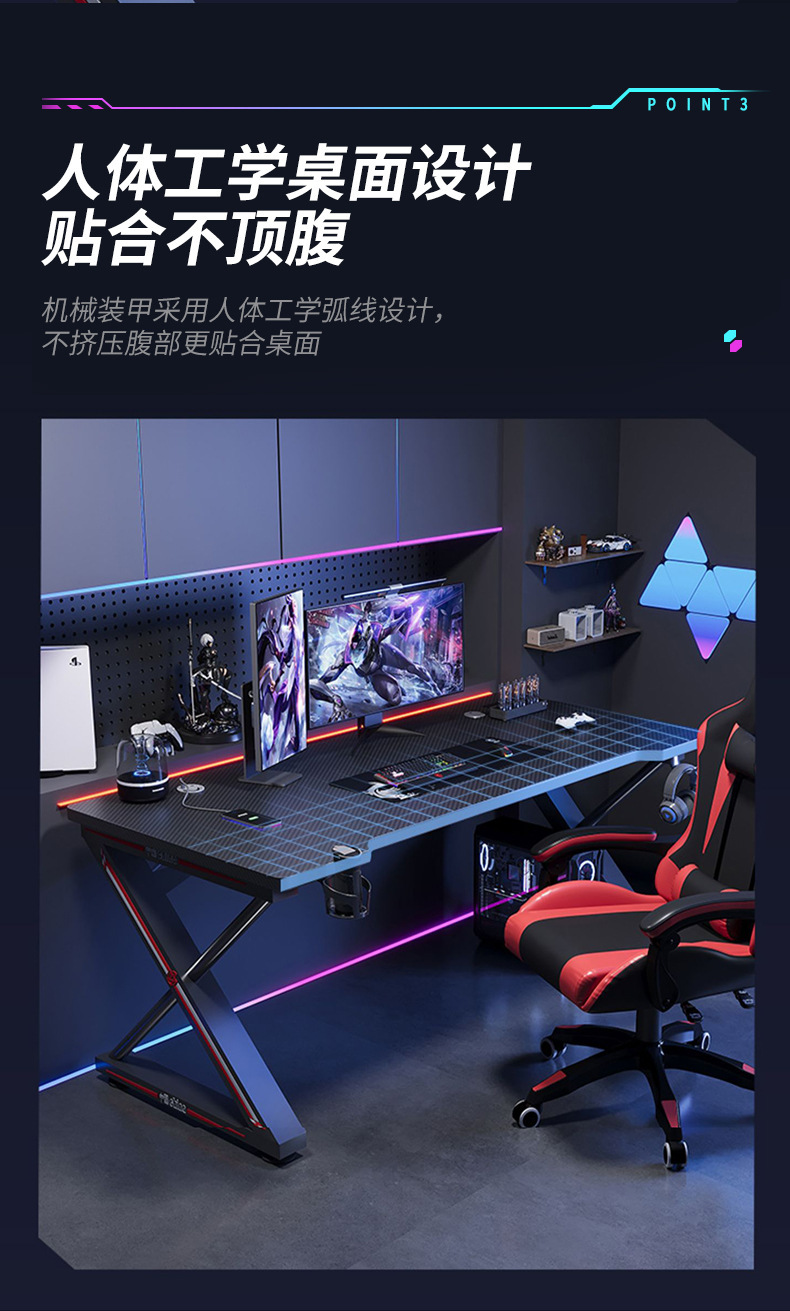 碳纤维电脑桌台式书桌家用卧室学生写字桌子网红办公桌游戏电竞桌