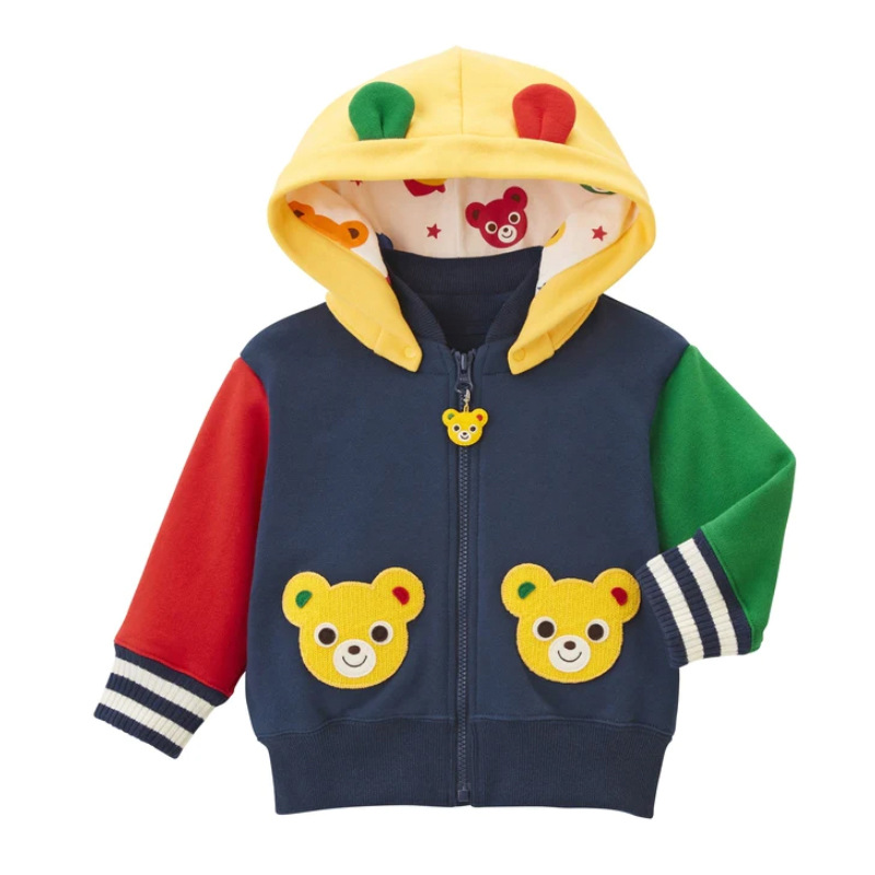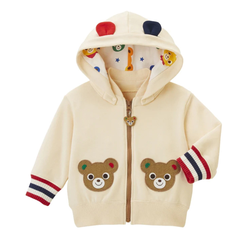 新款卡通小熊小兔字母刺绣连帽外套