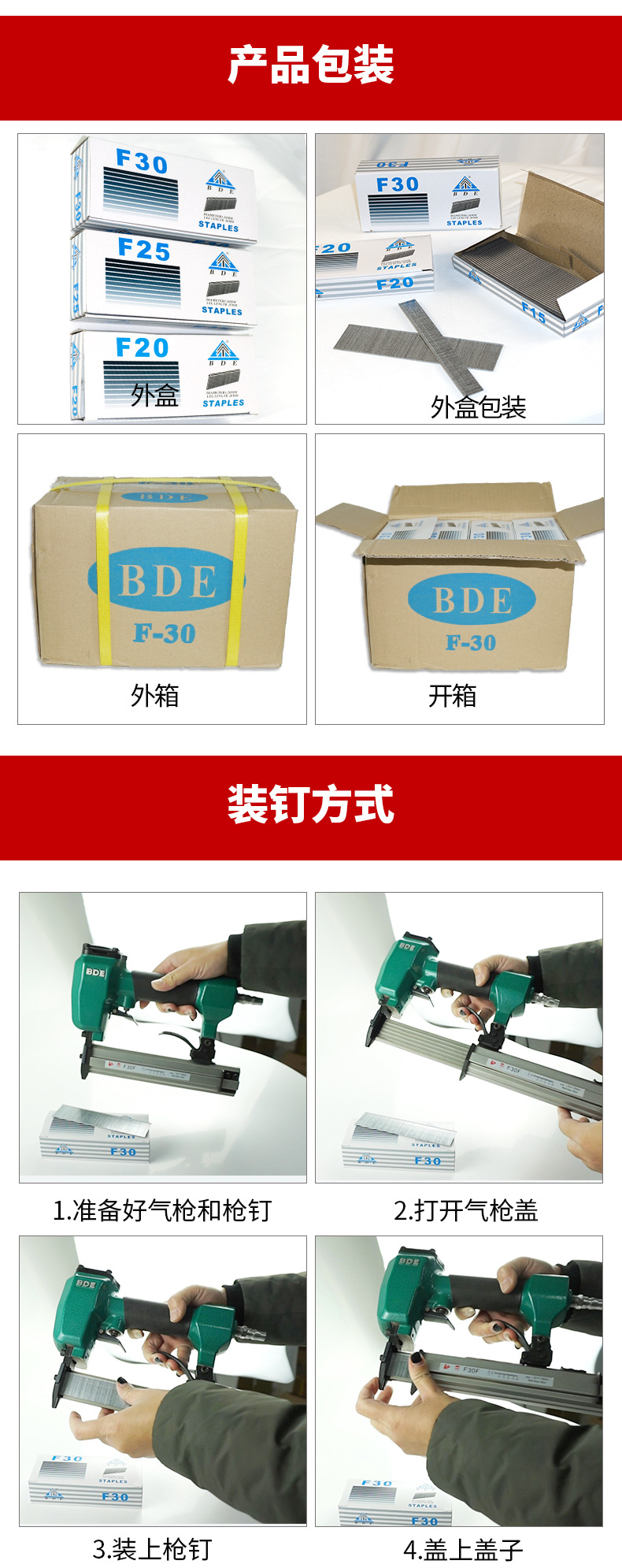 BDE 공압식 못총 목공용 f30 가구용 직선 못총 고정 못 F25 전체 박스 못총 범용 공압 못총 30