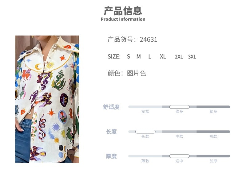 2025 유럽 및 미국 여성 셔츠 아마존 루즈핏 그래피티 프린트 라펠 랜턴 긴팔 봄 가디건 셔츠 여성용스토어 가기