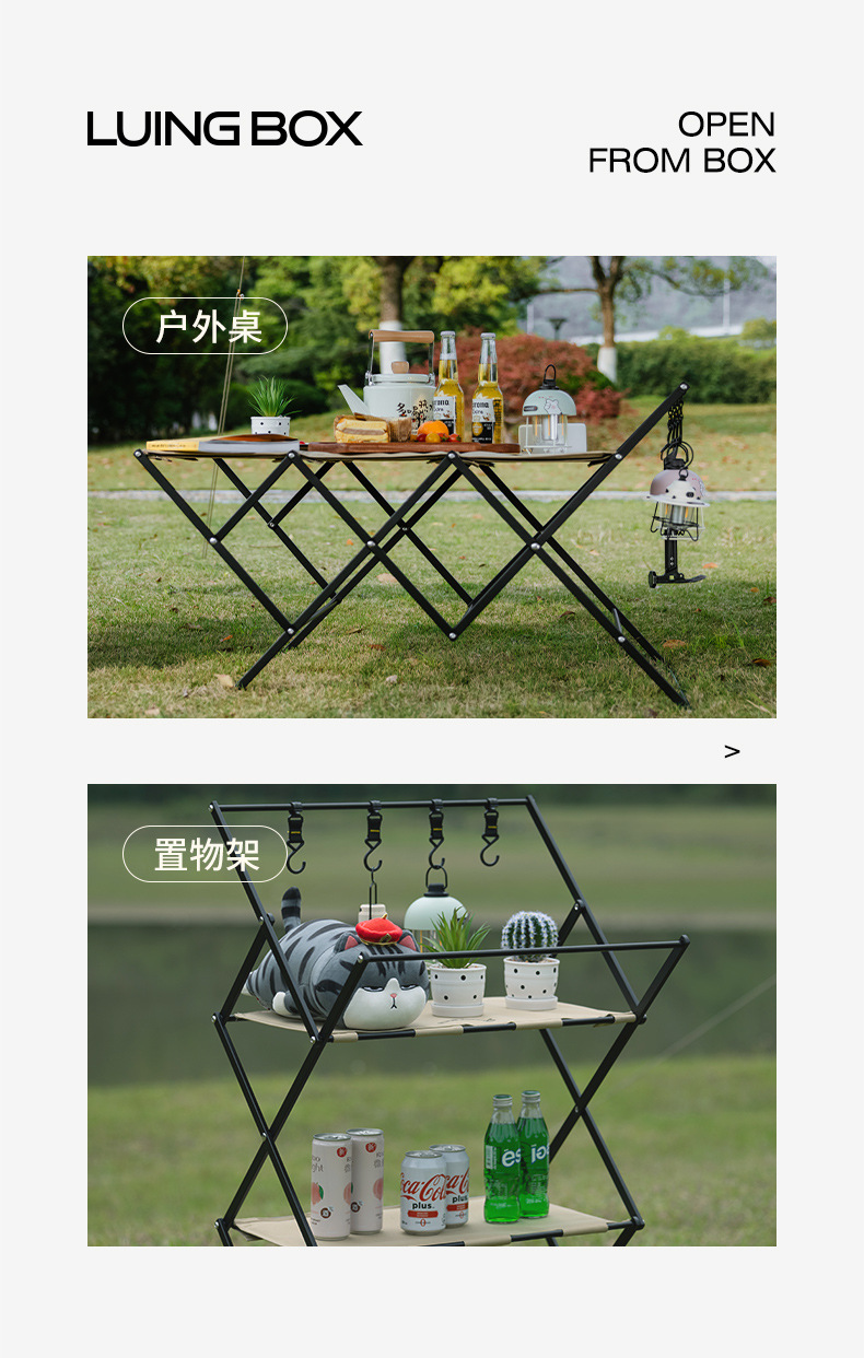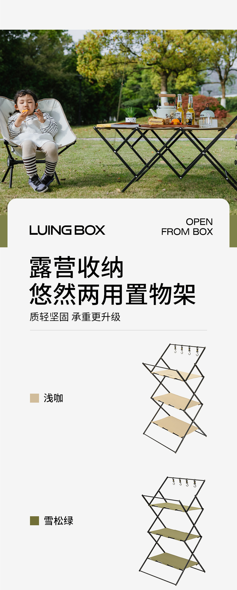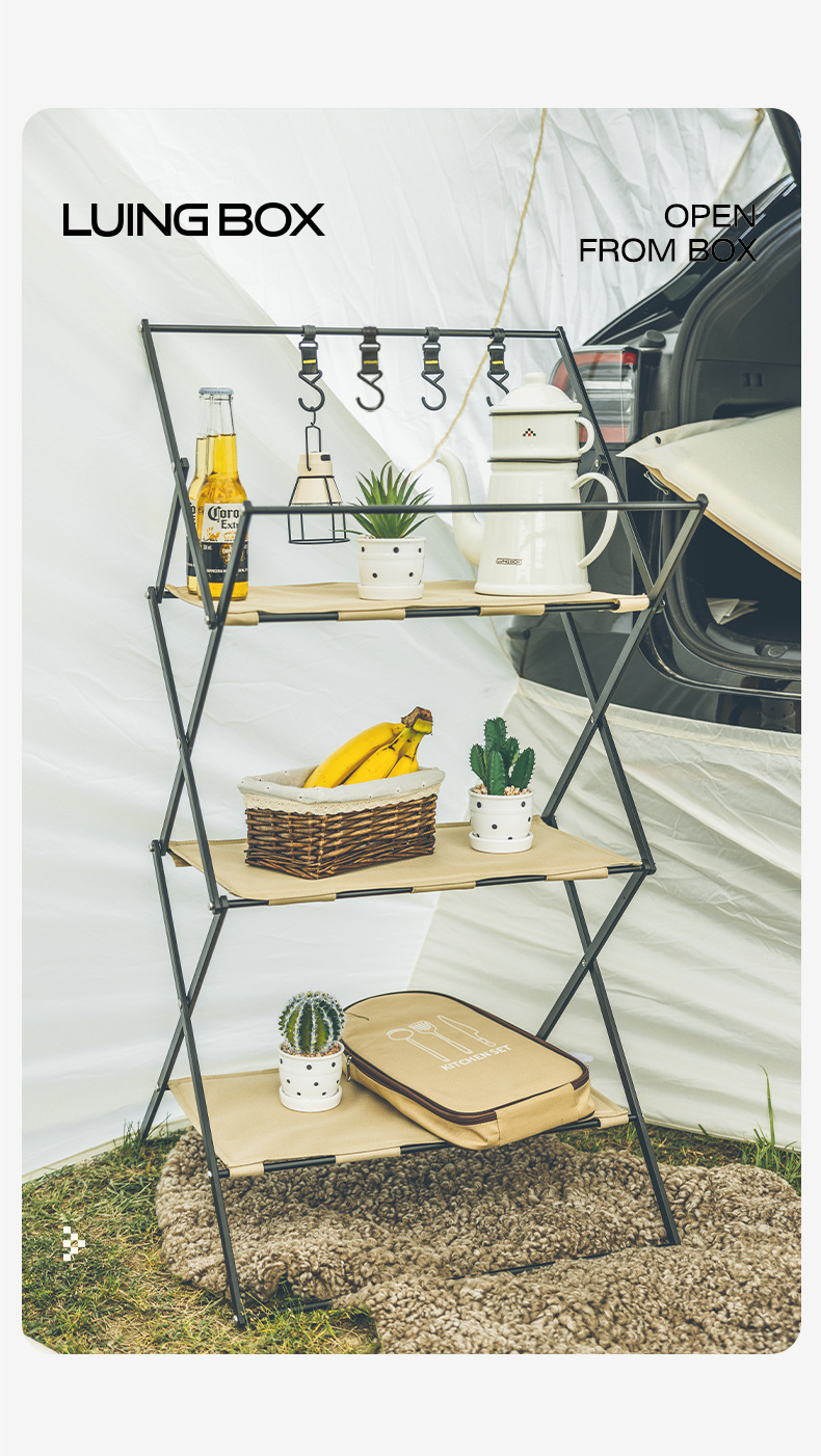 LUINGBOX 캠핑 박스 여유로운 이중 목적 스토리지 랙 야외 캠핑 알루미늄 합금 휴대용 다기능 스토리지 랙
