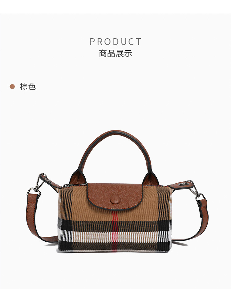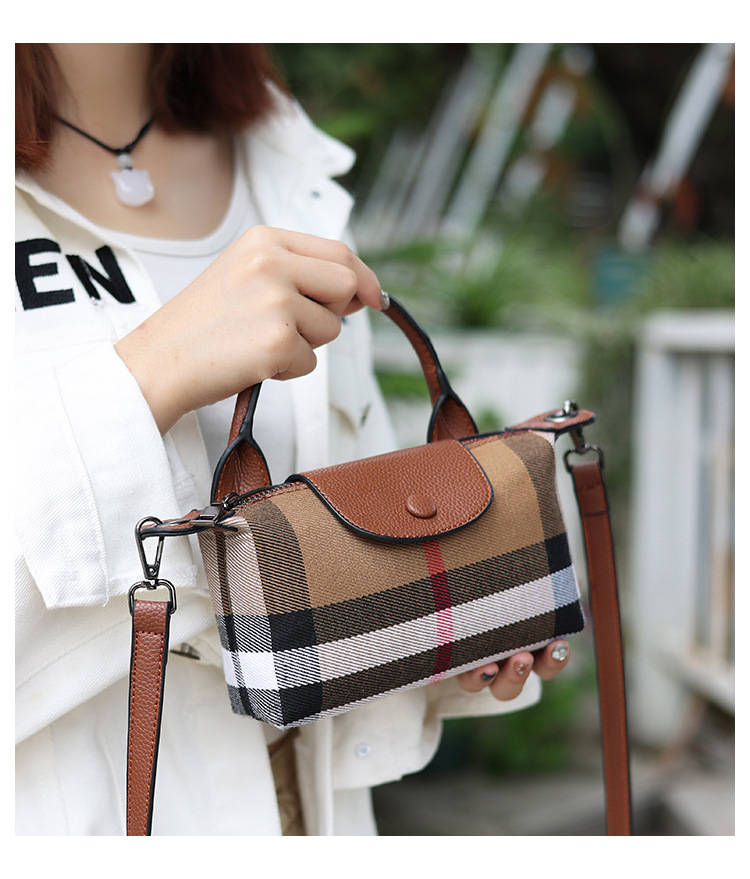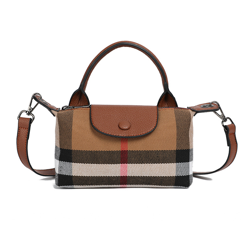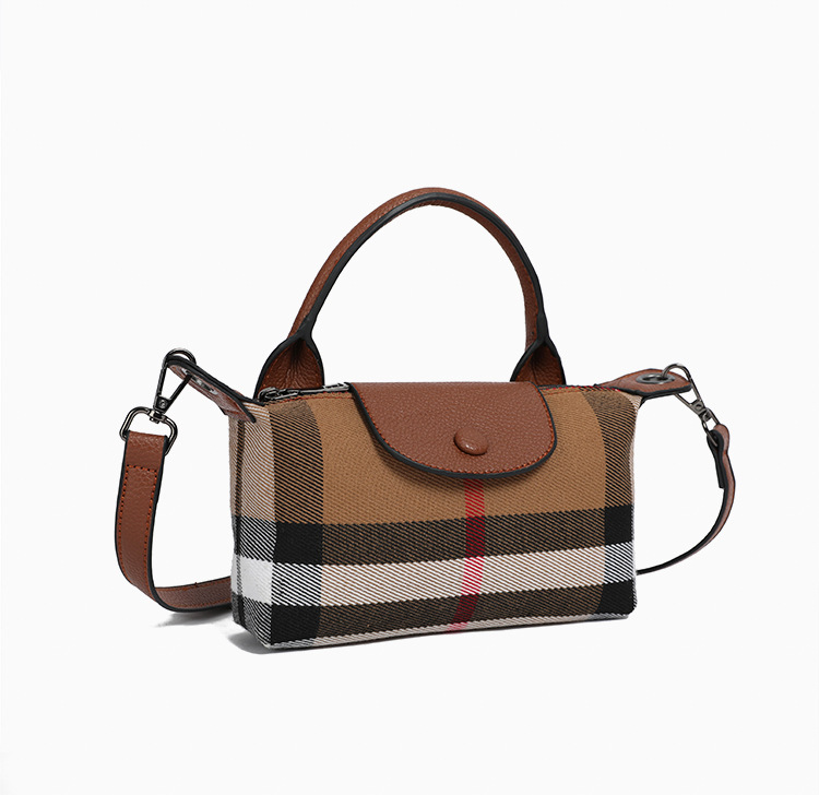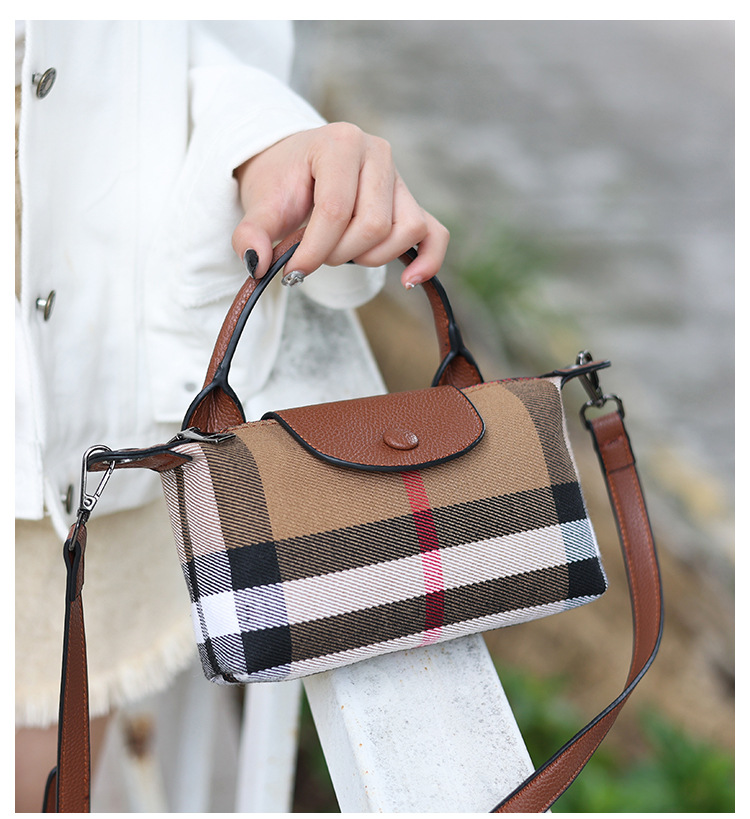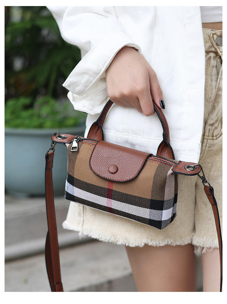 2025 새로운 캔버스 격자 무늬 가방 정품 가죽 핸드백 어깨 크로스 바디 가방 하이 엔드 여성 가방 패션 만두 가방