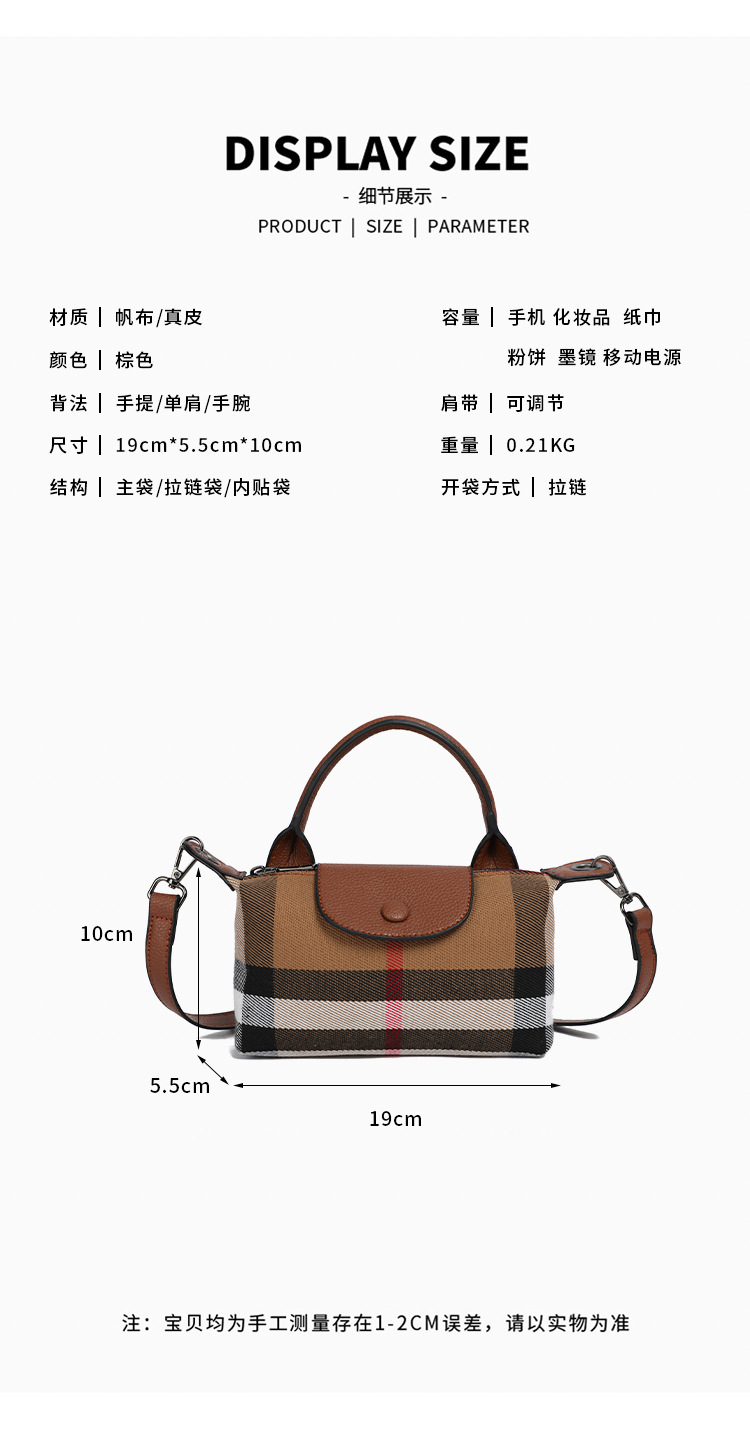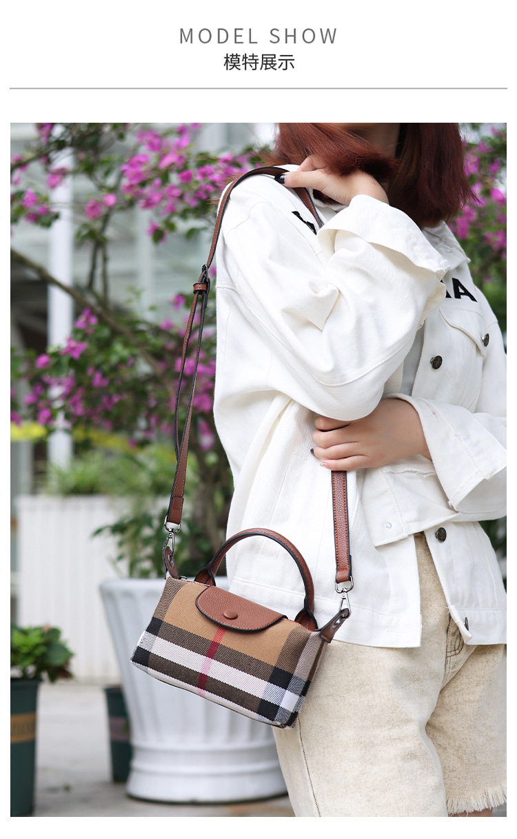 2025 새로운 캔버스 격자 무늬 가방 정품 가죽 핸드백 어깨 크로스 바디 가방 하이 엔드 여성 가방 패션 만두 가방스토어 가기