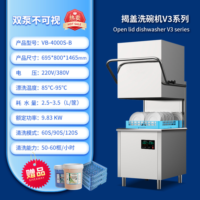 새로운 업그레이드된 호텔 매점 레스토랑 식기 세척기 풀업 소독 청소 기계를 갖춘 뚜껑이 있는 상업용 식기 세척기스토어 가기