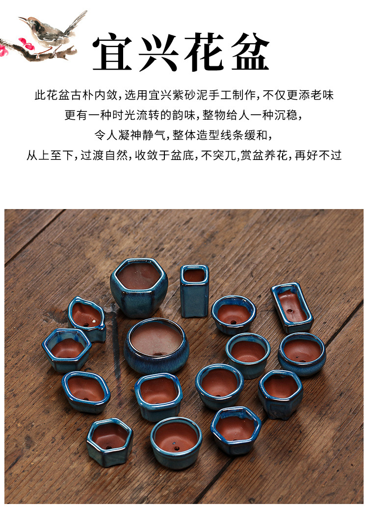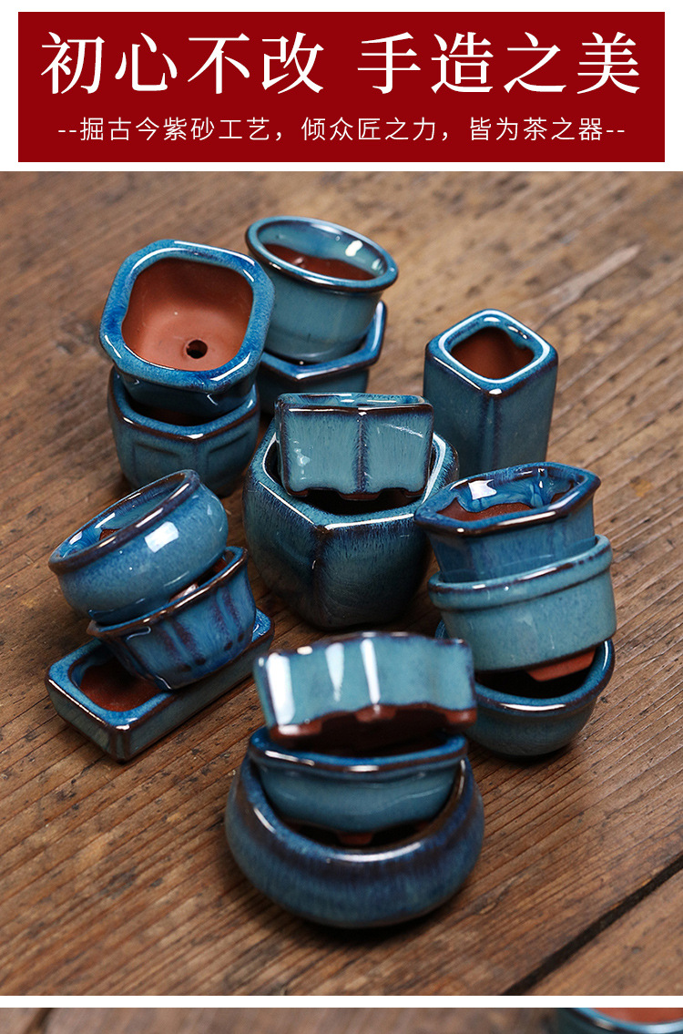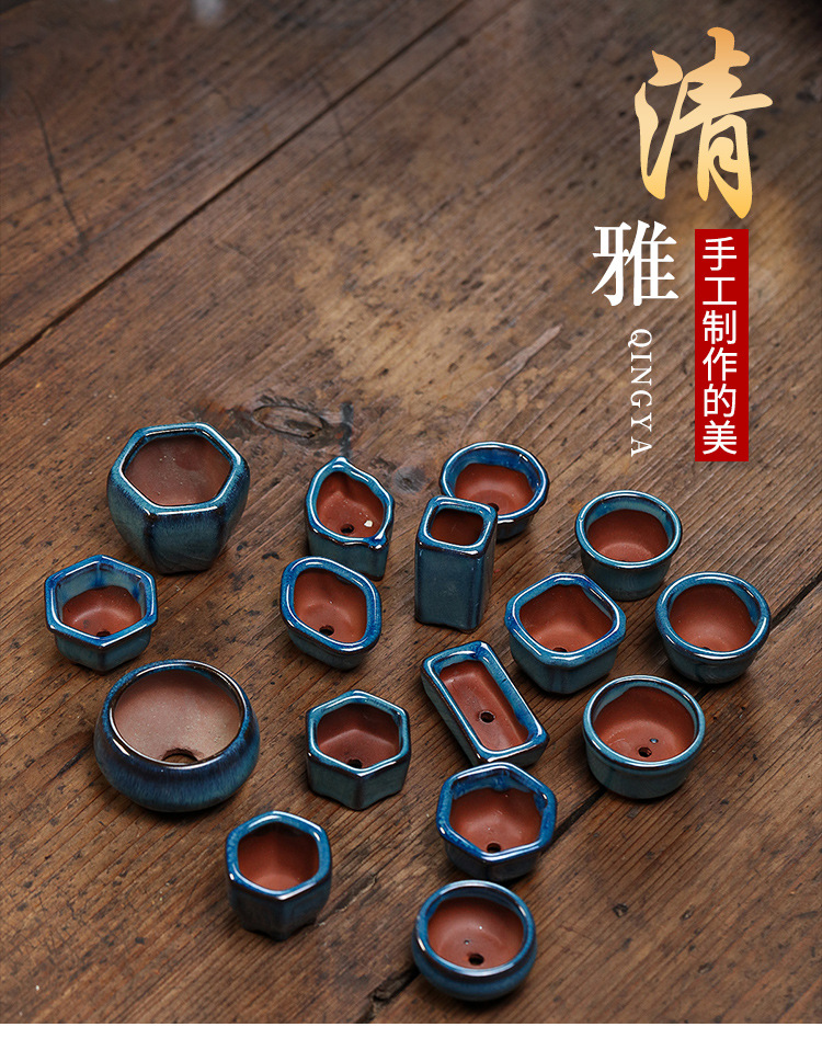다육식물 엄지화분 자주색 점토 화분 세라믹 화분 귀여운 만화 창의적 심플 블루 제조업체 도매