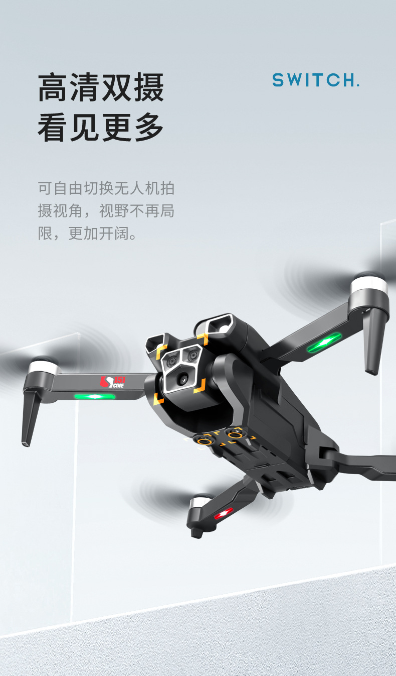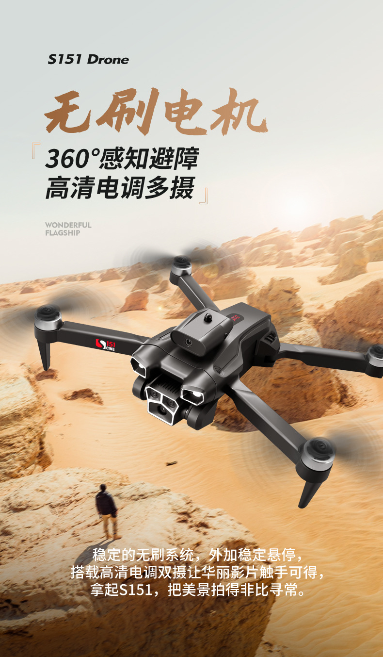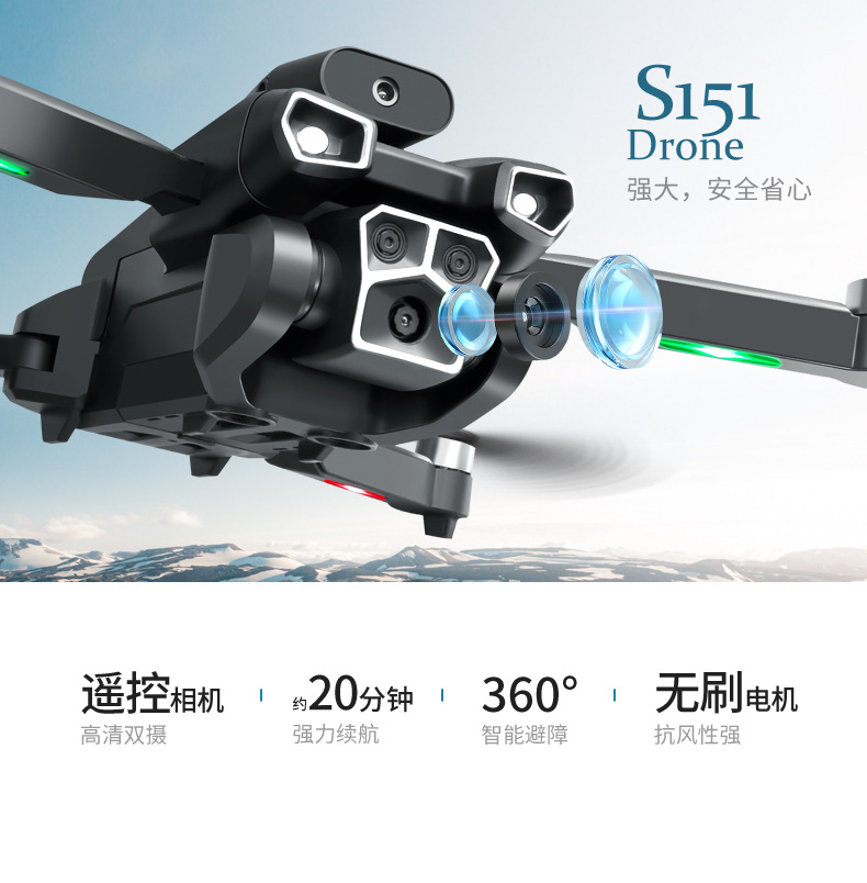 S151 항공 사진 드론 3 카메라 4 축 접이식 원격 제어 항공기 브러시리스 파워 항공기 어린이 장난감스토어 가기