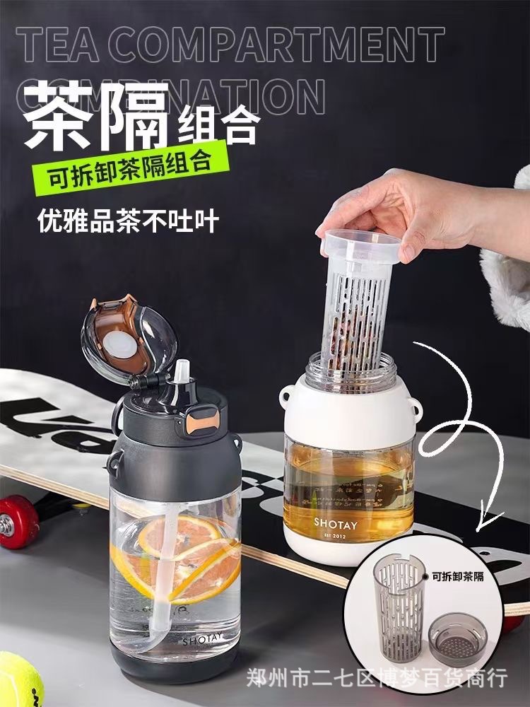 상하이 대용량 향이 나는 차 주전자 차 컵 휴대용 야외 스포츠 피트니스 학생 물 컵 통합 핸들