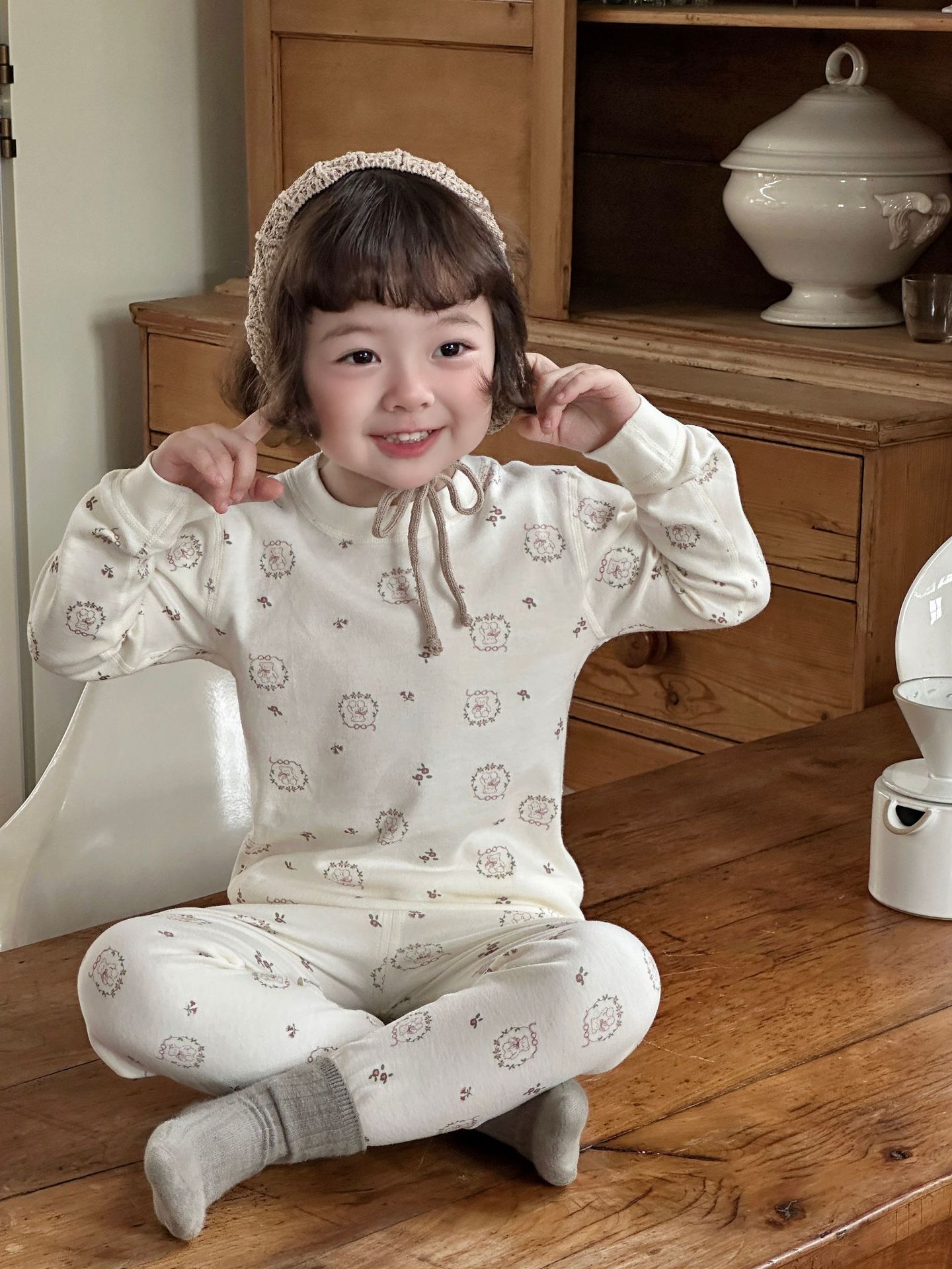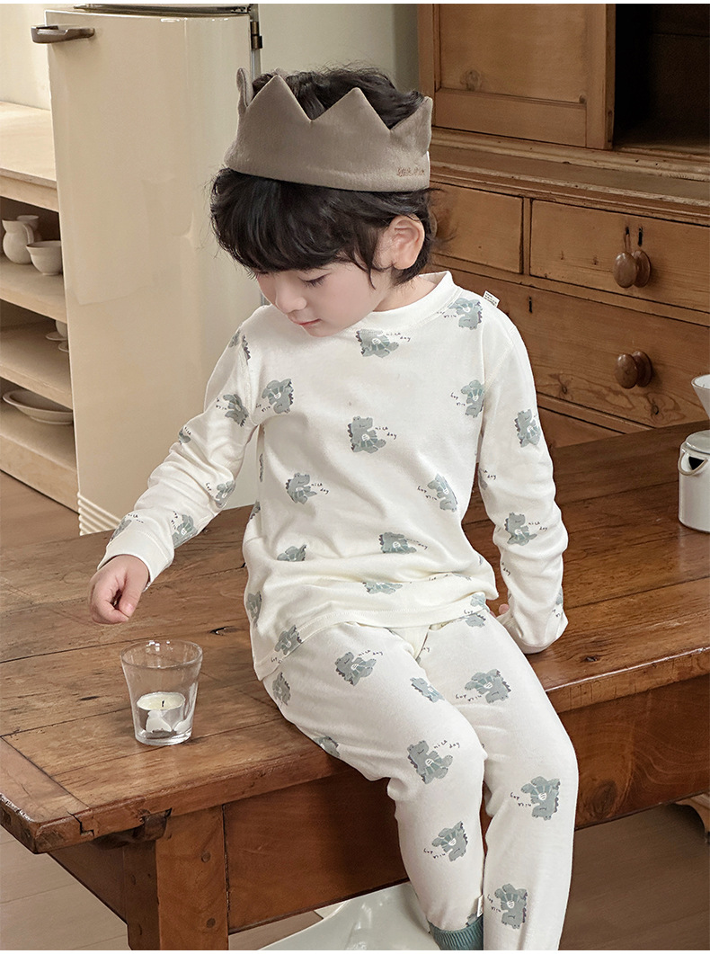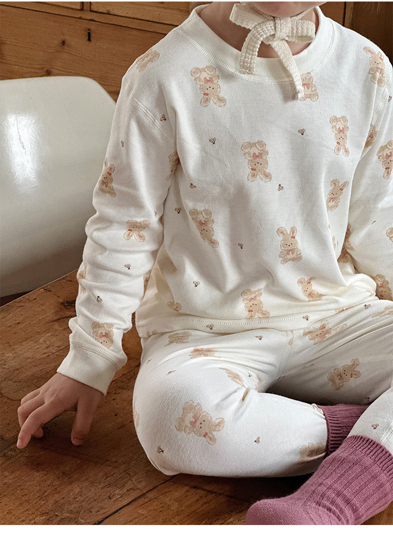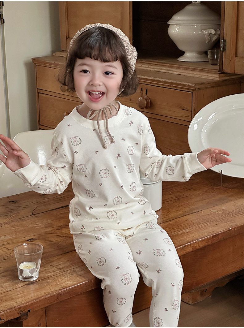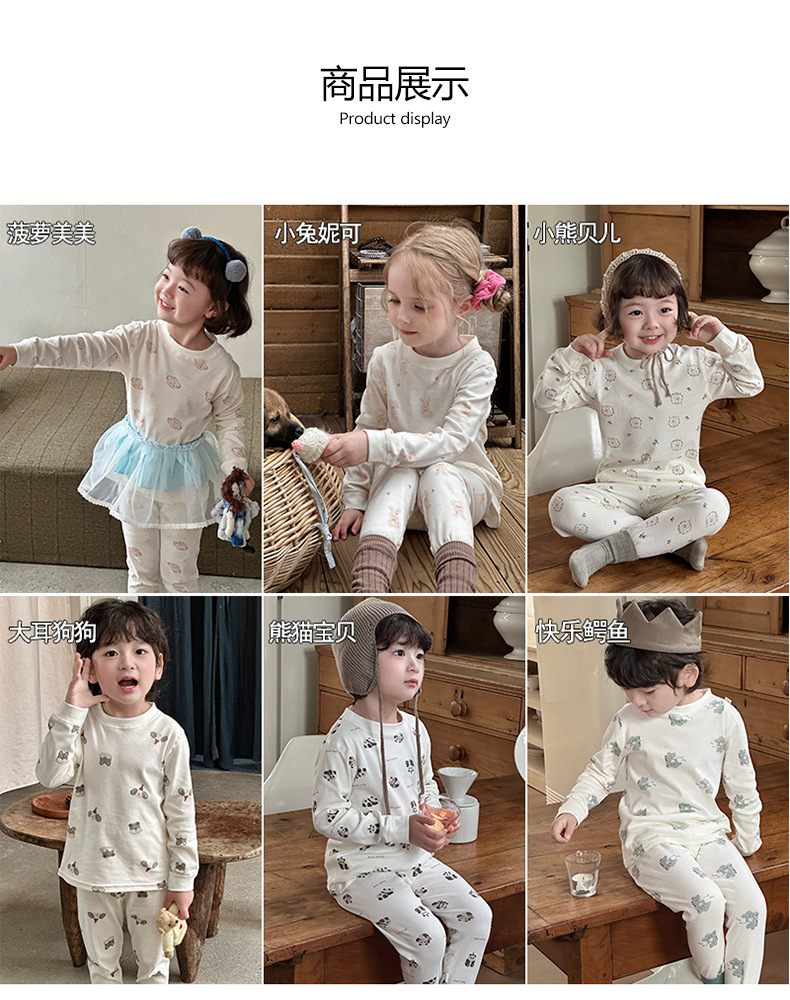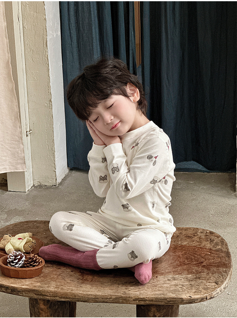 Anmeiya 아동용 유기농 면 속옷 세트, 가을 옷 세트, 한국식 남녀 기모 가을 옷 및 긴 바지 제조업체 도매스토어 가기