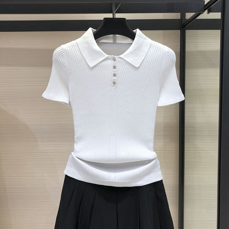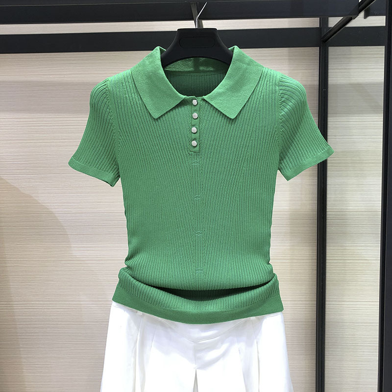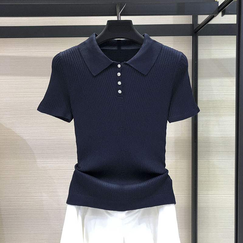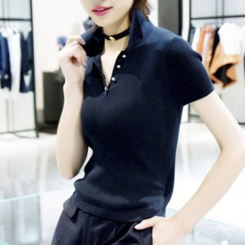형제의 새로운 여성 의류 2023 여름 새로운 옷깃 아이스 실크 니트 폴로 셔츠 반팔 티셔츠 여성 탑